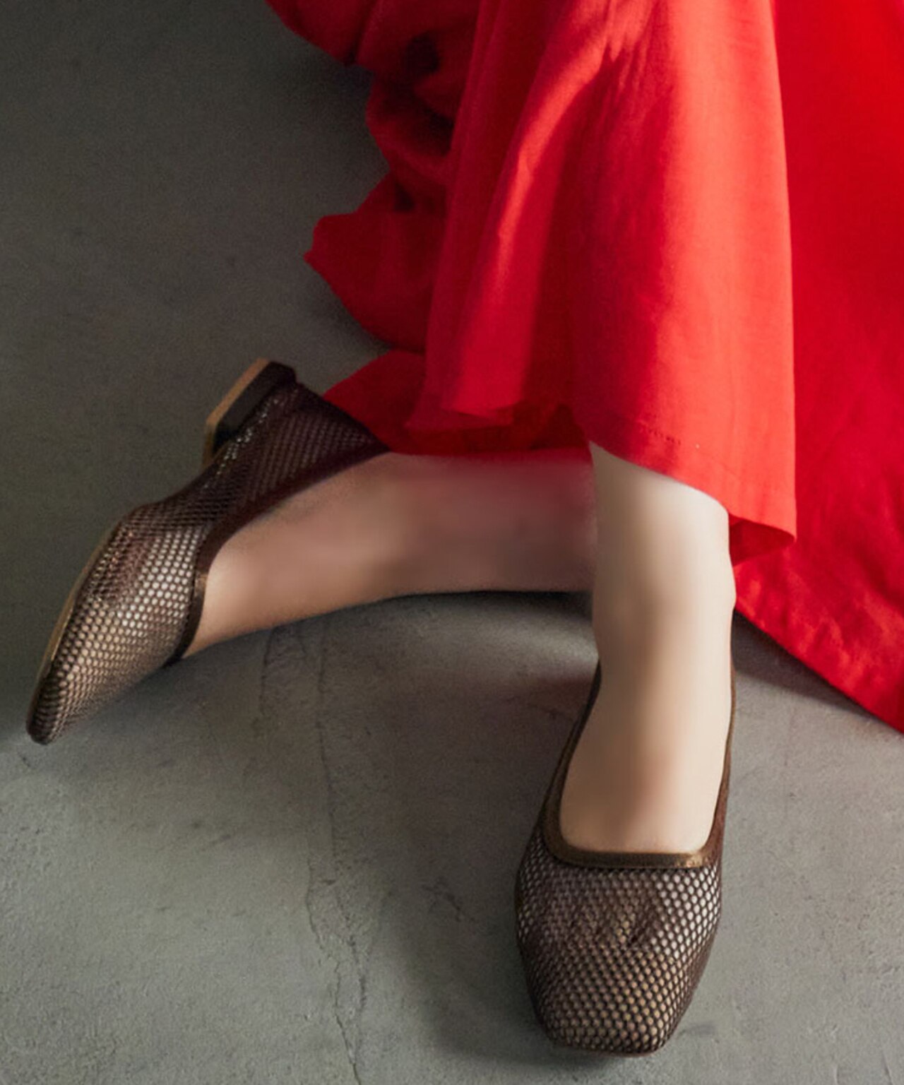 フェミニンなスタイリングにはもちろん、デニムなどのカジュアルコーデの外しにも◎メッシュスクエアトゥバレエシューズ メッシュスクエアトゥバレエシューズ MODE ET JACOMO¥11,990(税込)→¥5,940(税込) -