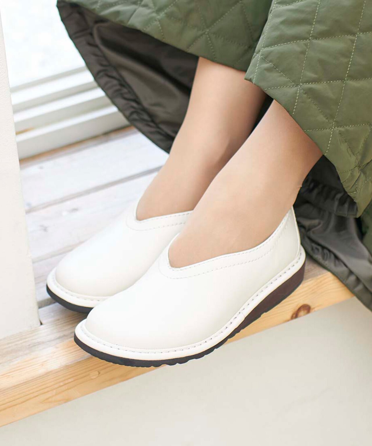 爪先ゆったりの足入れながら、カットラインを深めに取り、しっかりと足を抑えてくれるデザイン。