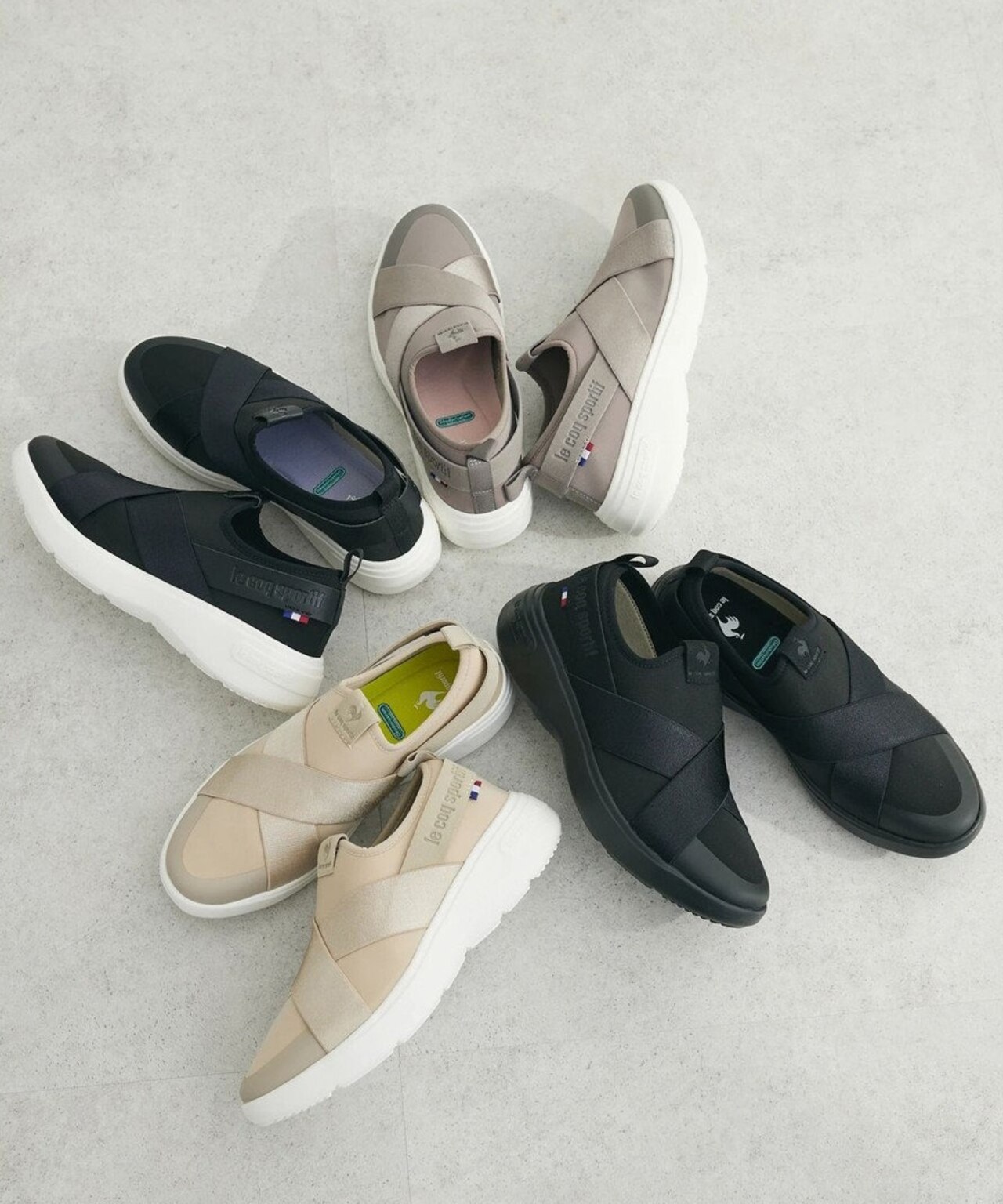 スニーカーブランドle coq sportifとコラボデザインのRiz raffineeスニーカー。上品な素材使いで、スポーツブランドとは一線を画す、キチンと感もあるスニーカー。【le coq sportif×Riz raffinee】ヒールアップ厚底スニーカー 【le coq sportif×Riz raffinee】ヒールアップ厚底スニーカー Riz raffinee¥13,200(税込)→¥11,000(税込) -