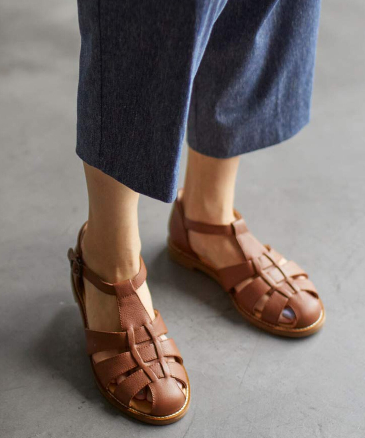 ソフトな足入れはストレスフリーな履き心地。編み目が深く肌の露出感が少ないので、タウン使いしやすくシーズンも長く着用可能。【サスティナブル】レザーグルカサンダル【サスティナブル】レザーグルカサンダルing¥17,050(税込)→¥8,470(税込) -