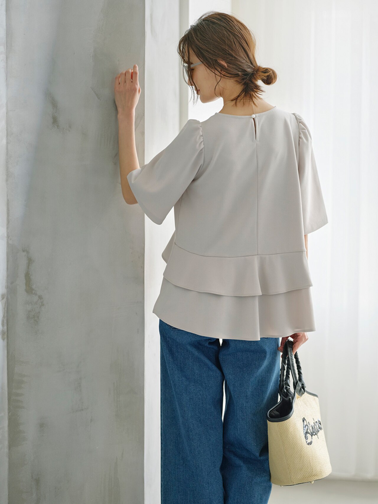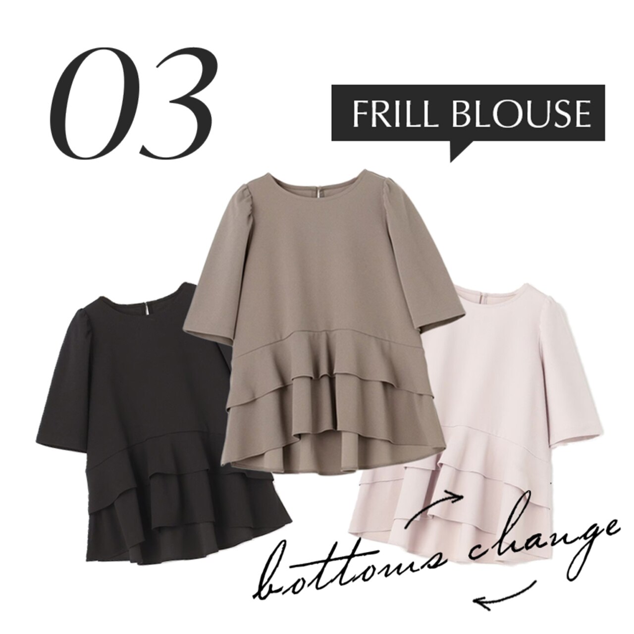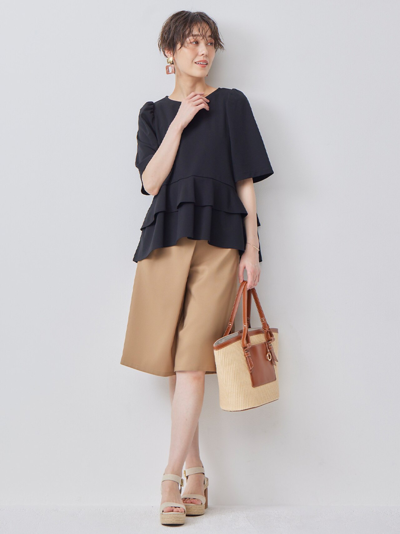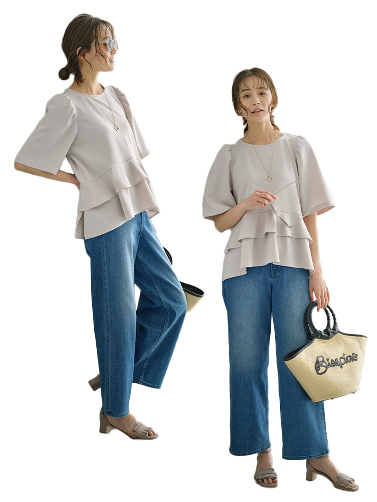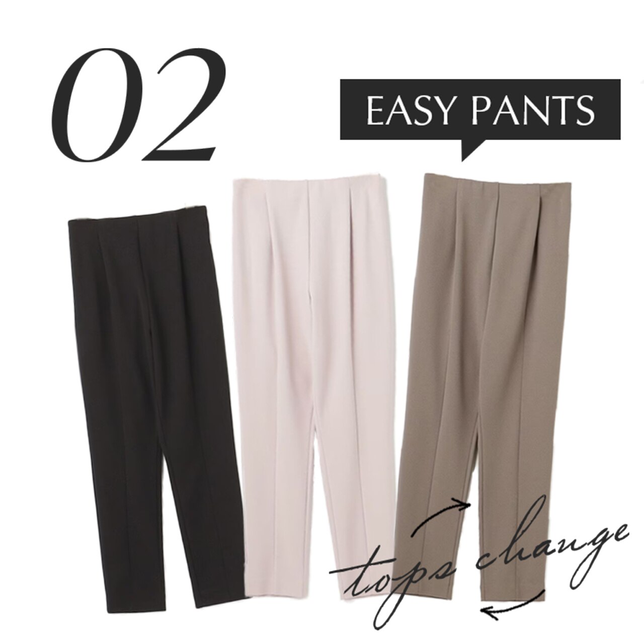 さらさらとした肌離れの良い風合いで、伸縮性があり動きやすく、ほどよい肉感で体のラインを拾いにくい素材。リラクシーな着心地ながらもきちんと見えが叶います!