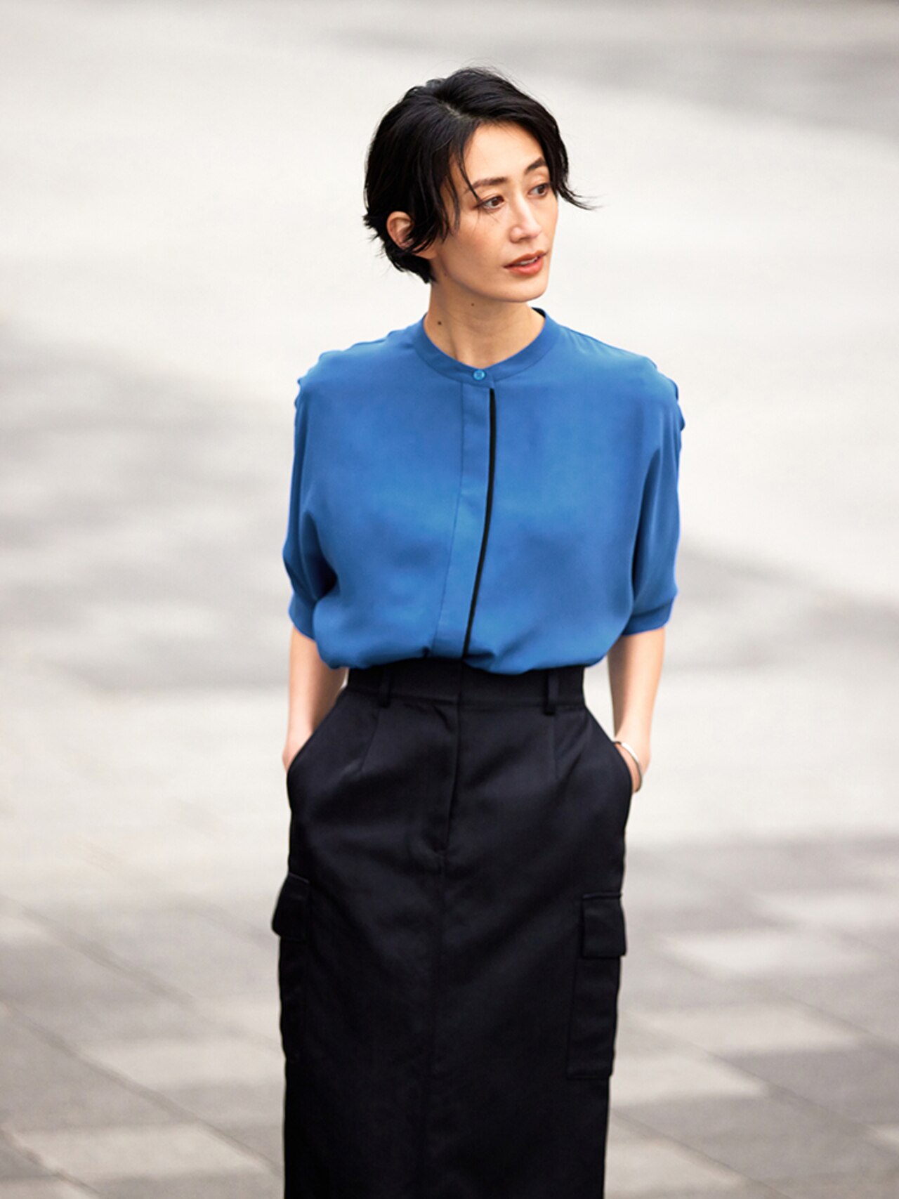 きちんと見えも機能性も兼ね備えたブラウスは、オフィスシーンで大活躍間違いなし!