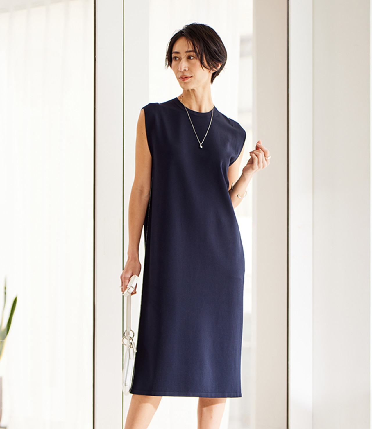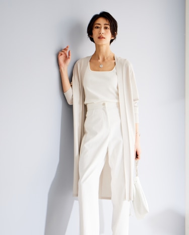 長袖Vネック、五分袖プルオーバー、ロングカーディガン、ワンピースとアイテムバリエーション豊富に展開。