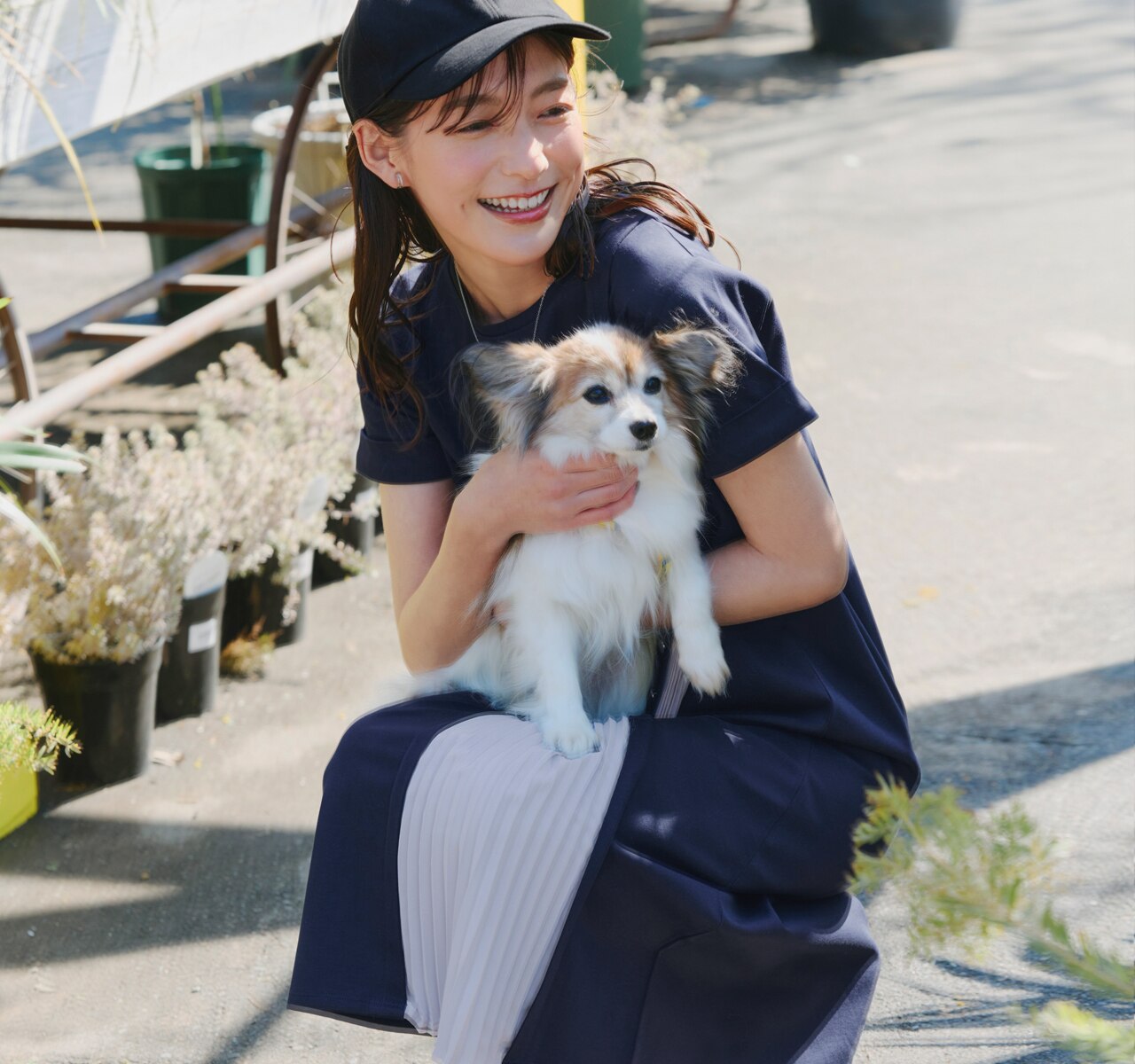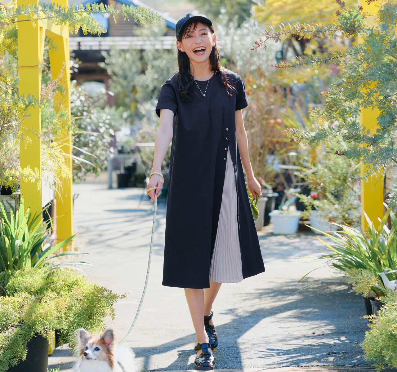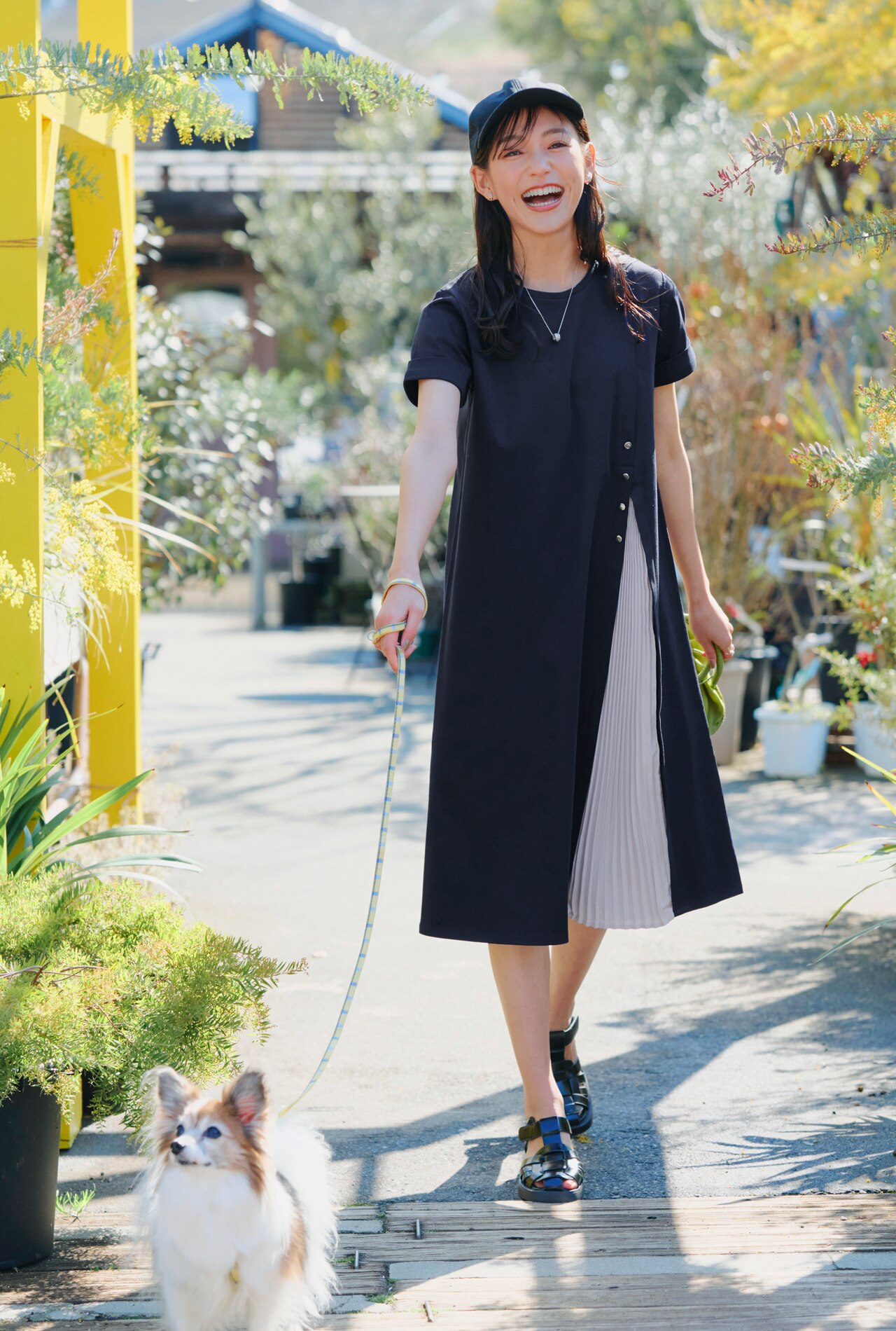 家のお庭のガーデニングにお迎えする植物を探しにお花屋さんへ。いいお天気だったからワンちゃんも一緒に散歩がてら来ちゃった。ゆるすぎないシルエットときれい見えのプリーツが楽ちんさを隠しておしゃれに見せてくれる大好きなワンピース。
