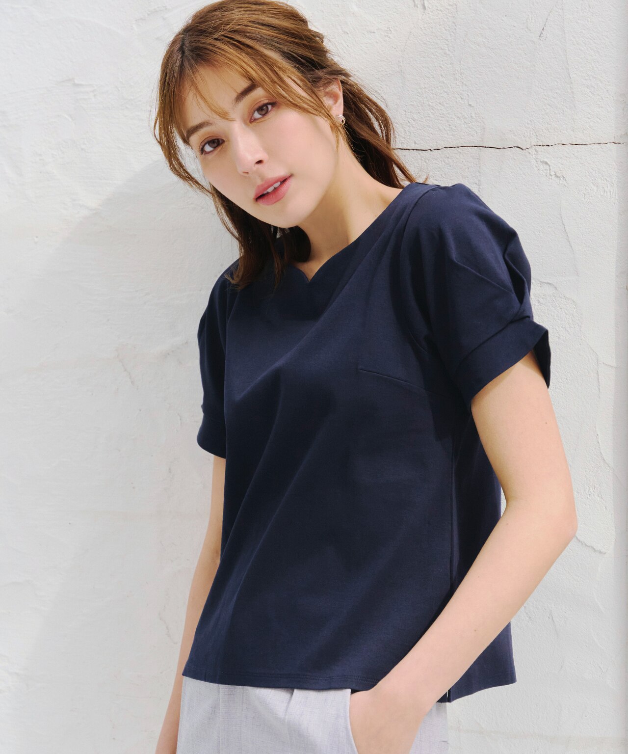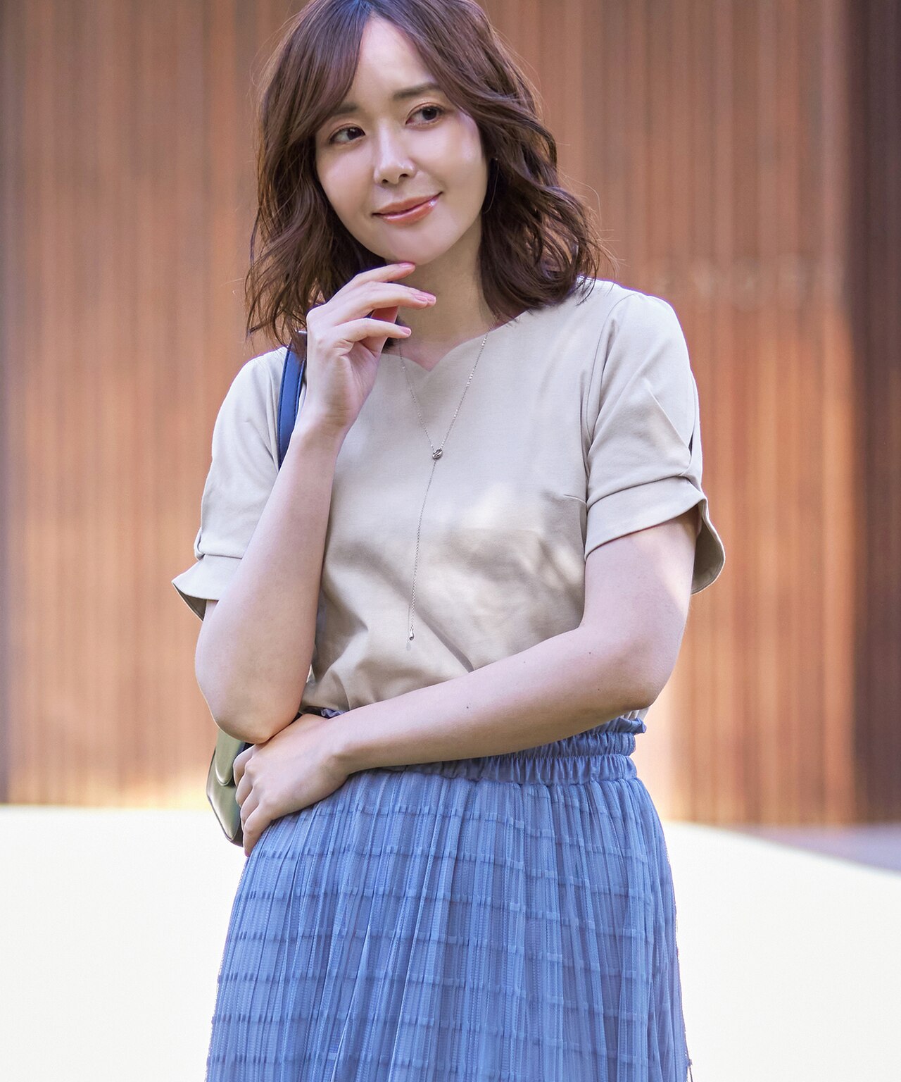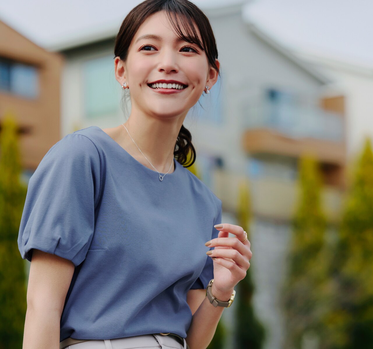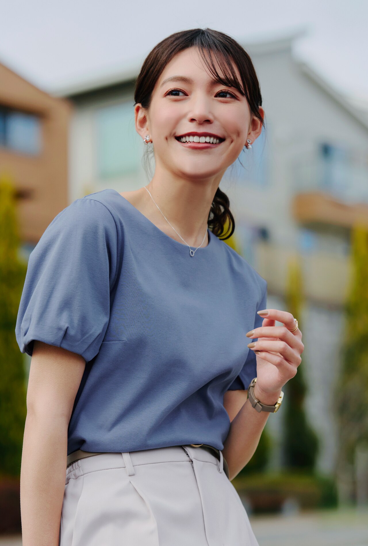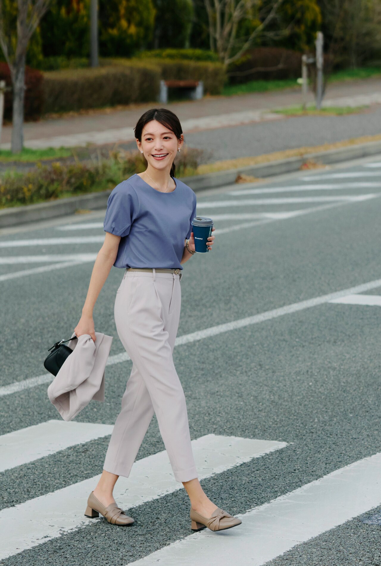 今日は急な商談が入って外回りに行くことになったんだけど、気持ちいい天気だし一駅歩こうかな。オフィスでも違和感なしのカットソーで、きれい見えするこのトップスは私のお気に入り。