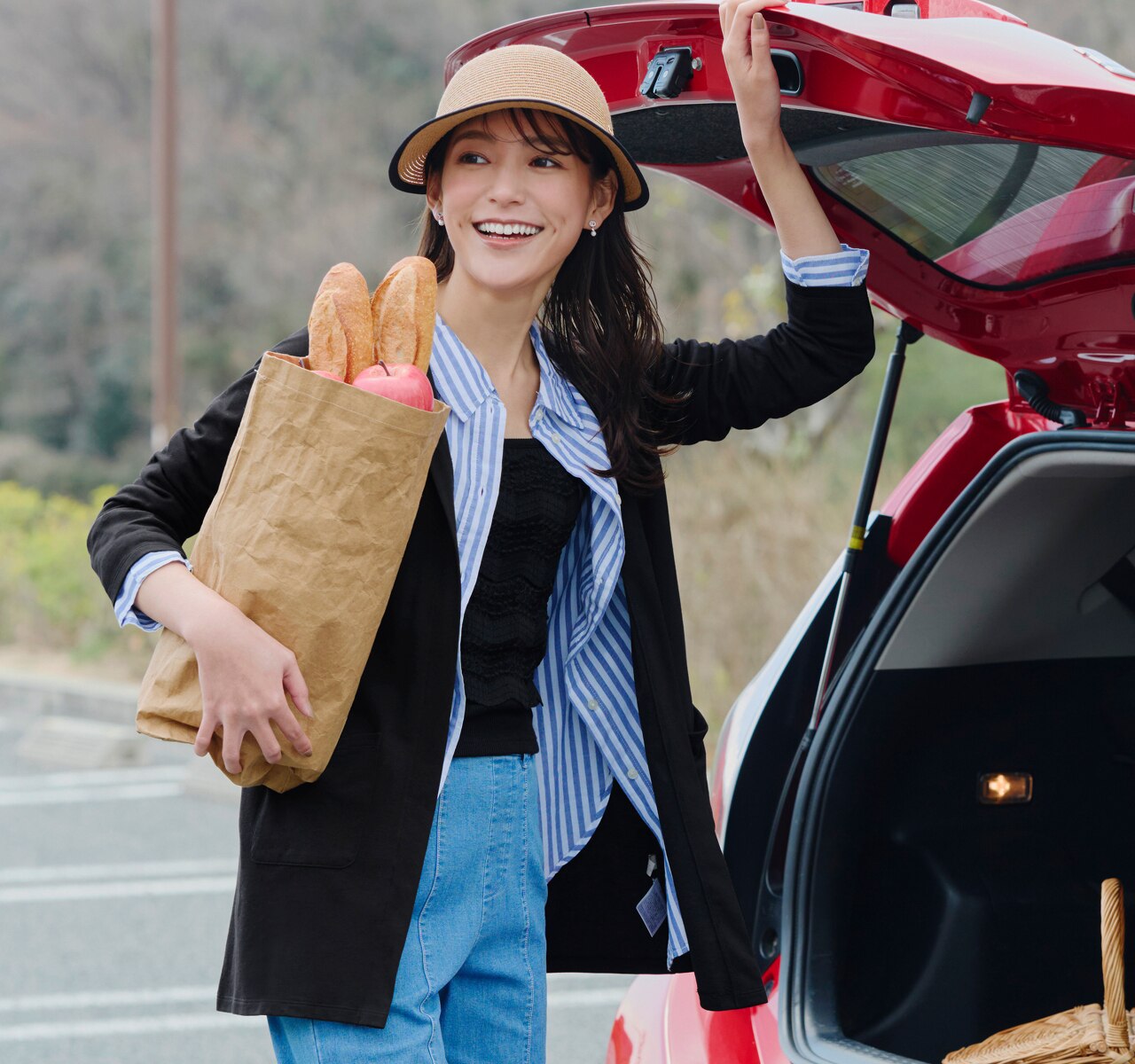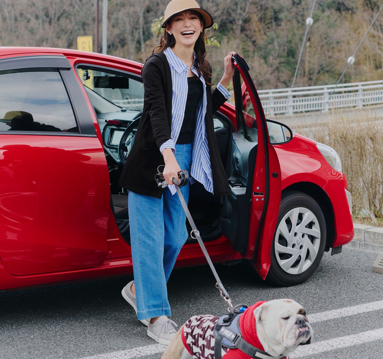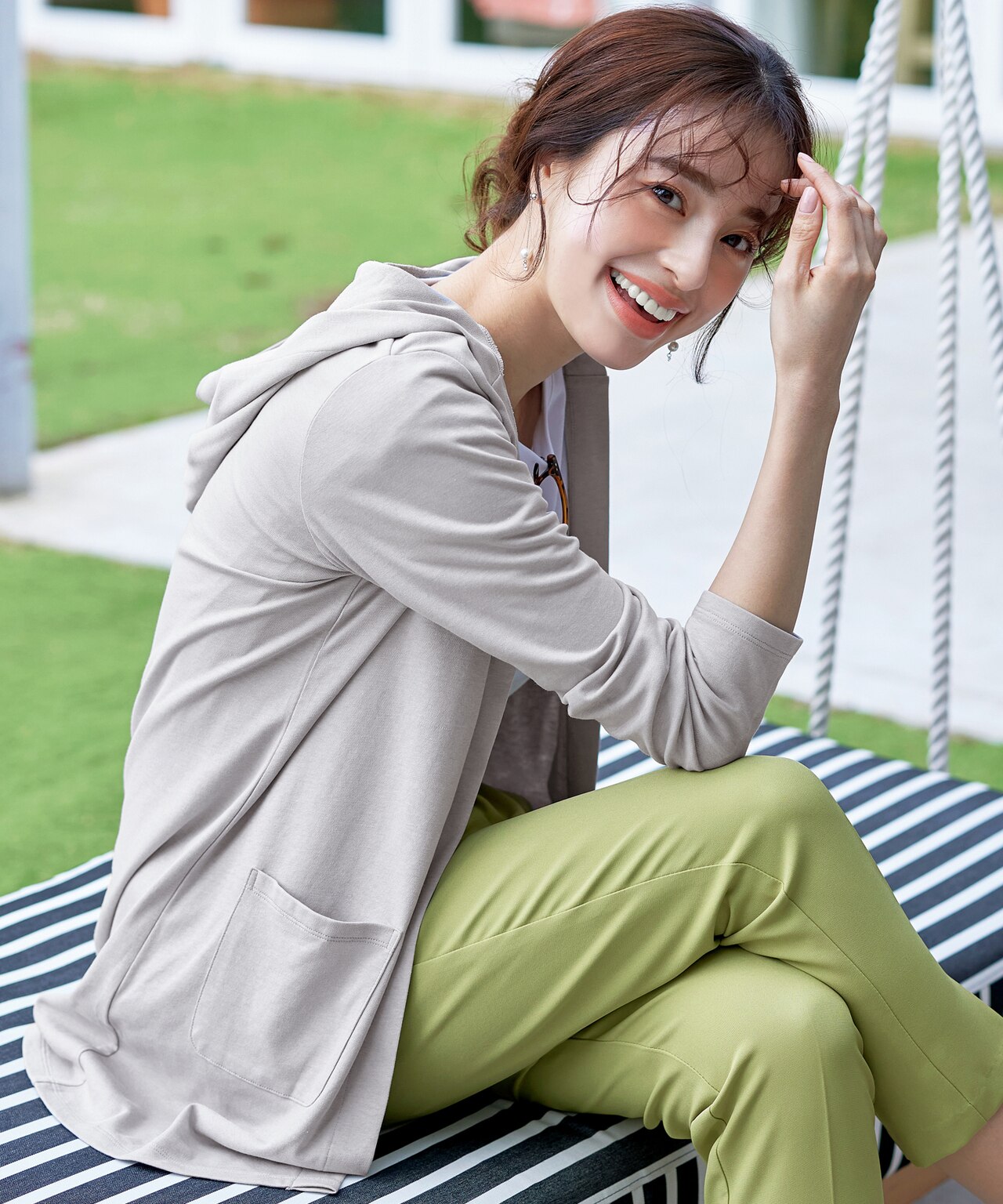赤い車で気ままにおでかけ。気になるあのお店で美味しいパンを買って、愛犬とドライブ。公園で寄り道してのんびりお散歩。UVケアと接触冷感のパーカーカーデで夏の日差しも平気なの。