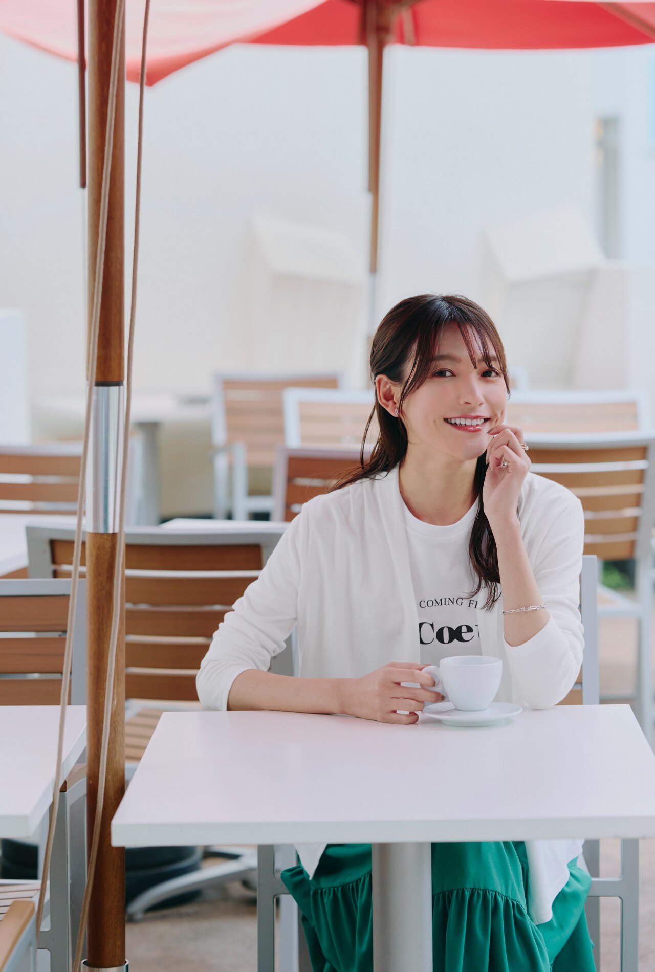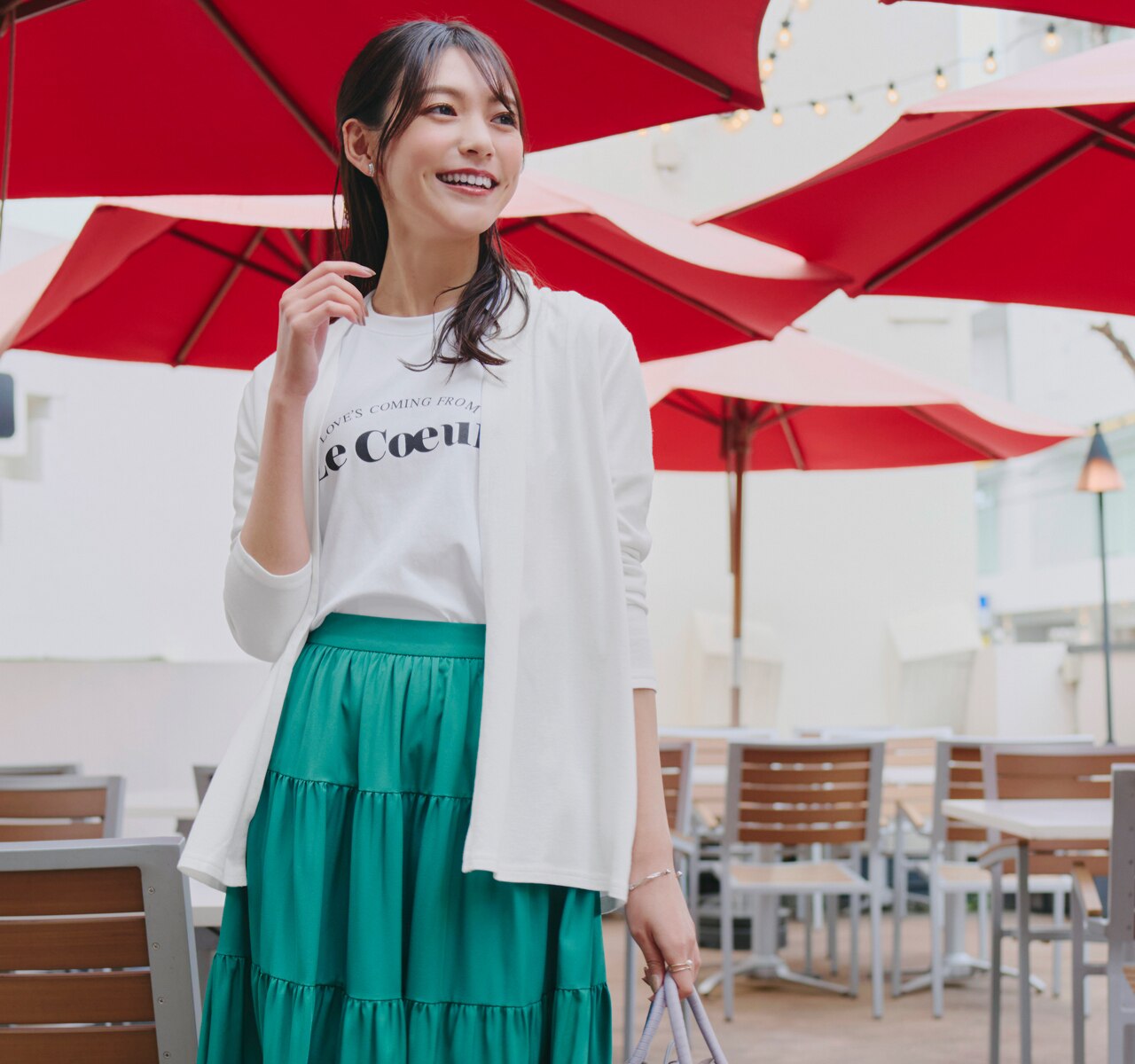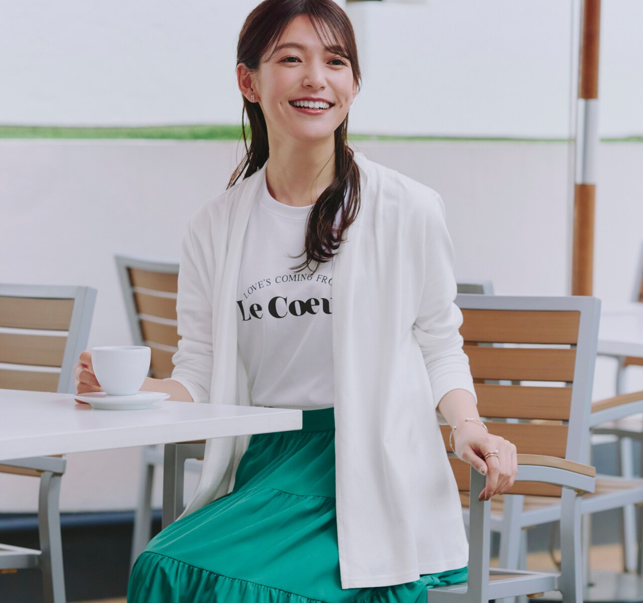 今日は晴れてるから、行きたかったテラスカフェに足を運んで。パラソルから漏れる日差しが心地よい昼下がり。香り高いコーヒーが私の幸福度を上げてくれるの。軽くて優しい肌触りのカーディガンを羽織って、空調も日差しも怖くない。
