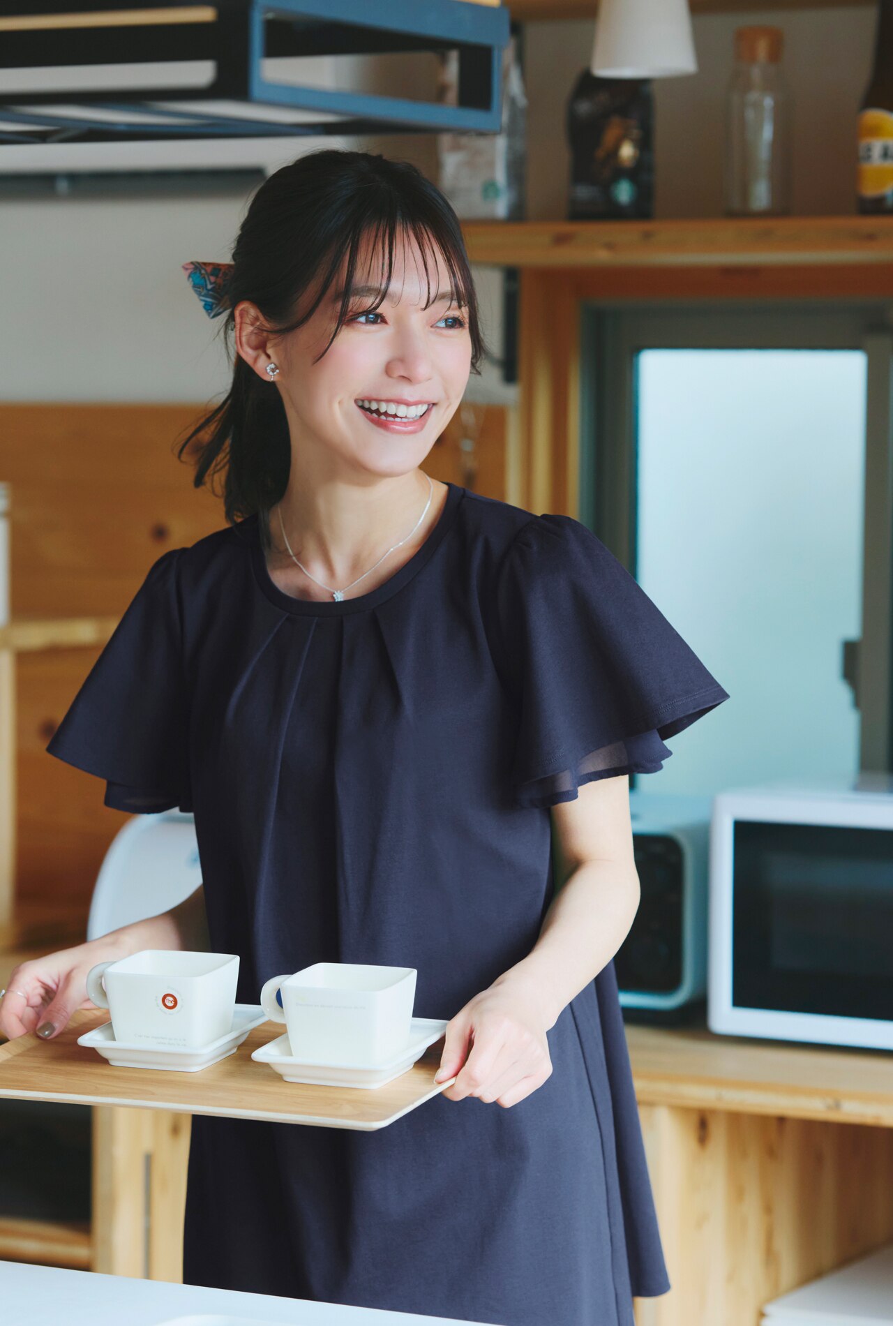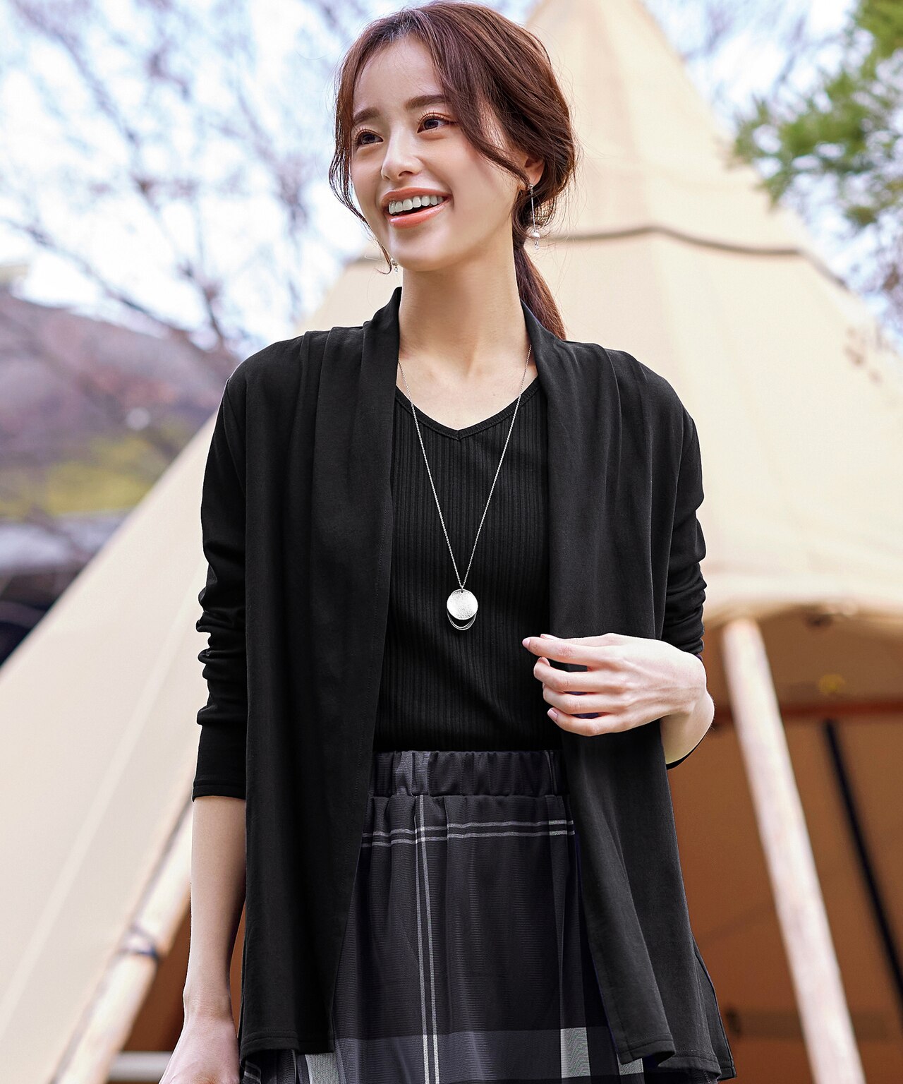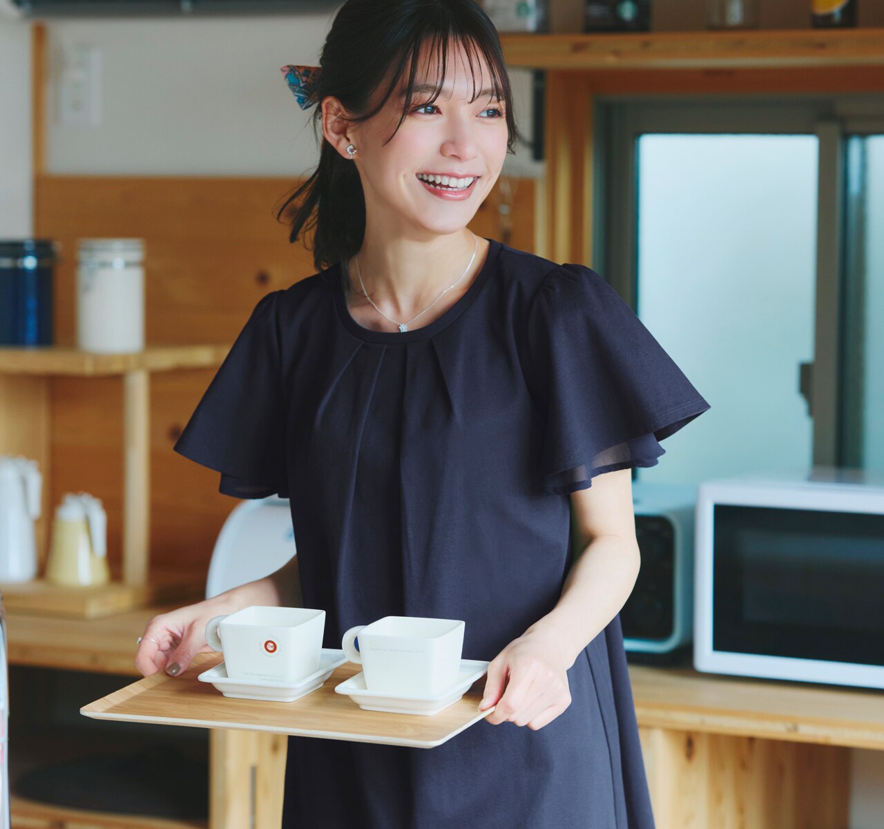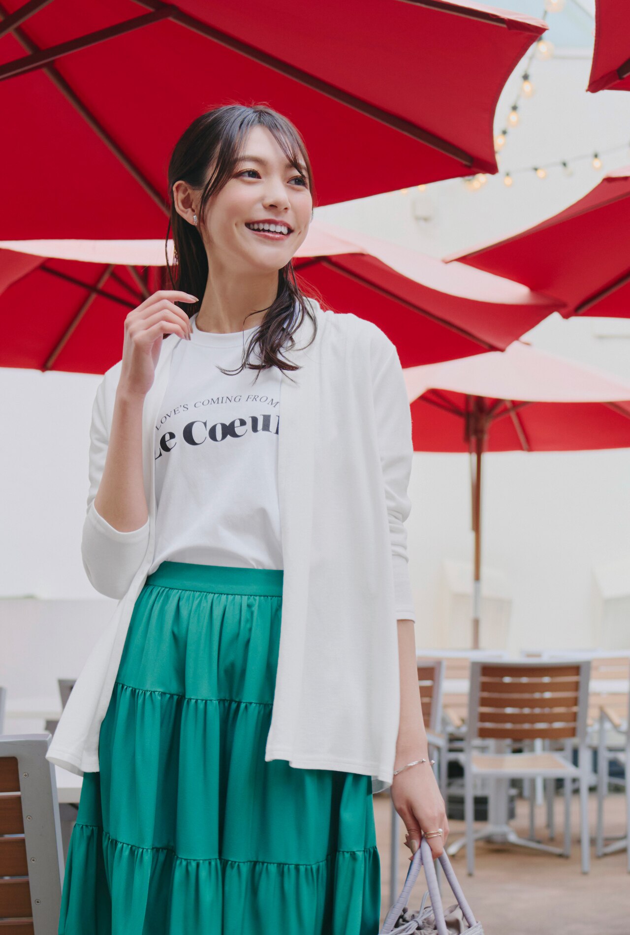 今日は晴れてるから、行きたかったテラスカフェに足を運んで。パラソルから漏れる日差しが心地よい昼下がり。香り高いコーヒーが私の幸福度を上げてくれるの。軽くて優しい肌触りのカーディガンを羽織って、空調も日差しも怖くない。