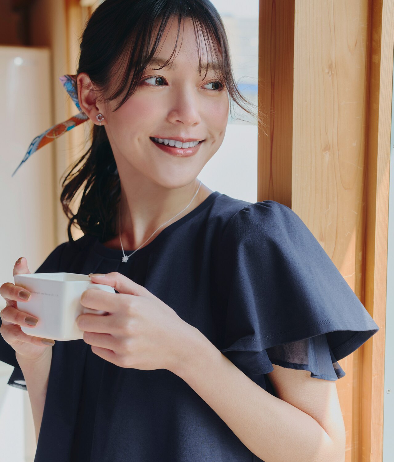 楽しい話にいつも時間がすぐに過ぎてしまう、仲良し友達と今日は女子会。美味しいランチと尽きない話題で今日も長くなりそうな予感。だけど大人の可愛さを演出してくれるこのトップス、実はストレッチが効いてる楽チンアイテムなんだよね。そうは見えないから気合い入れてきたねって言われちゃった。
