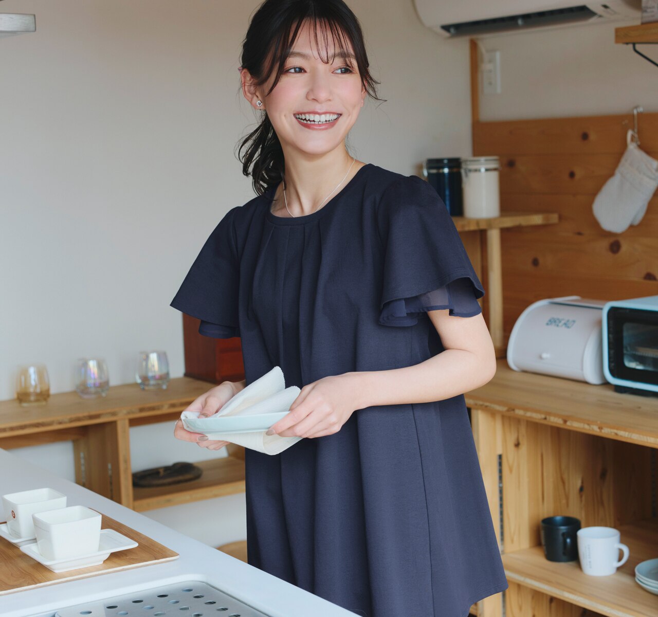 休日もたまにはおうちでのんびり過ごしちゃおう。ずっと取っておいたあのレシピに挑戦。見栄えがちょっと悪くても味はバッチリ!お気に入りのこのフレア袖チュニックにソースがとんでもおうちで洗えるから安心なんだ。