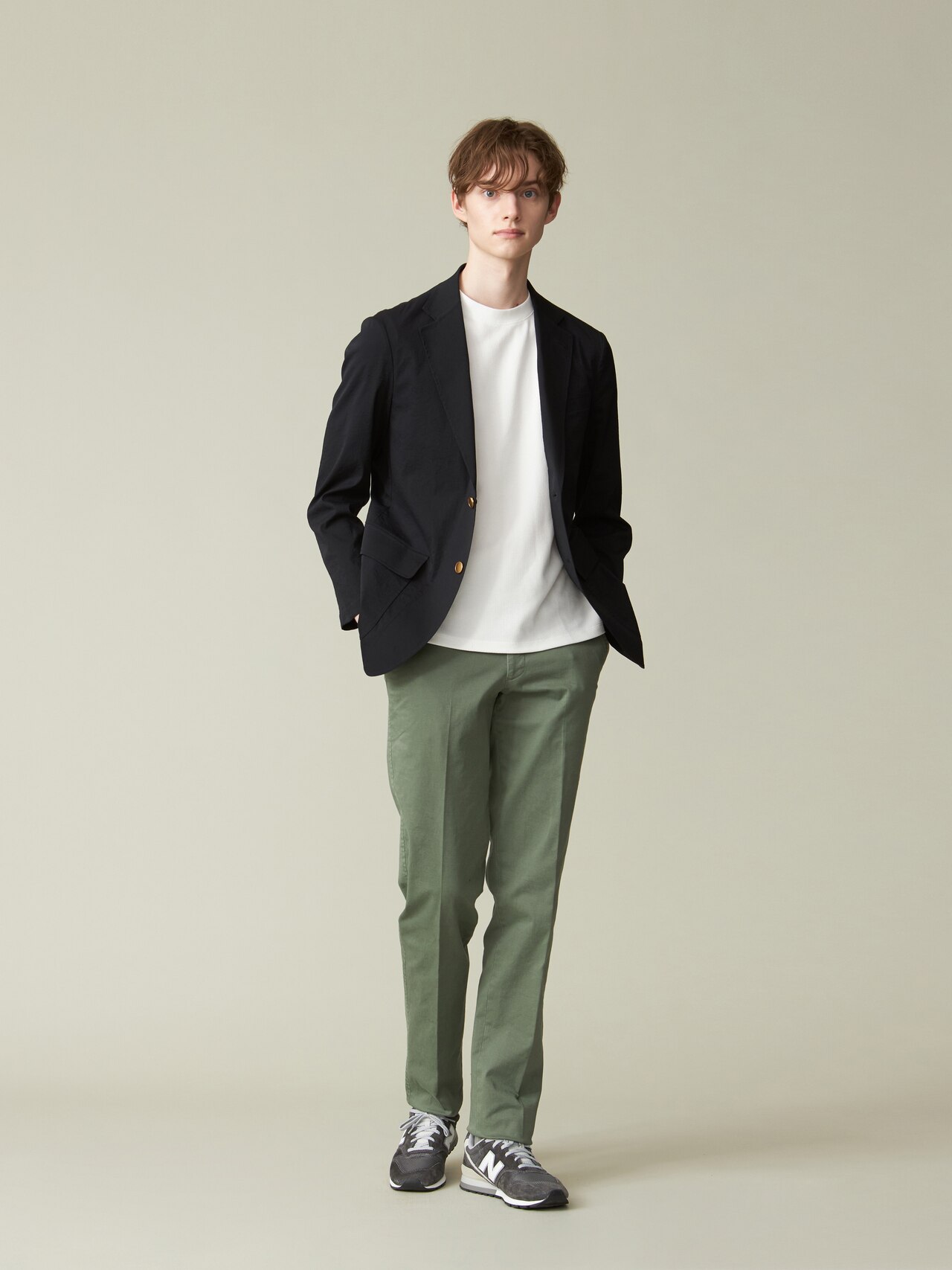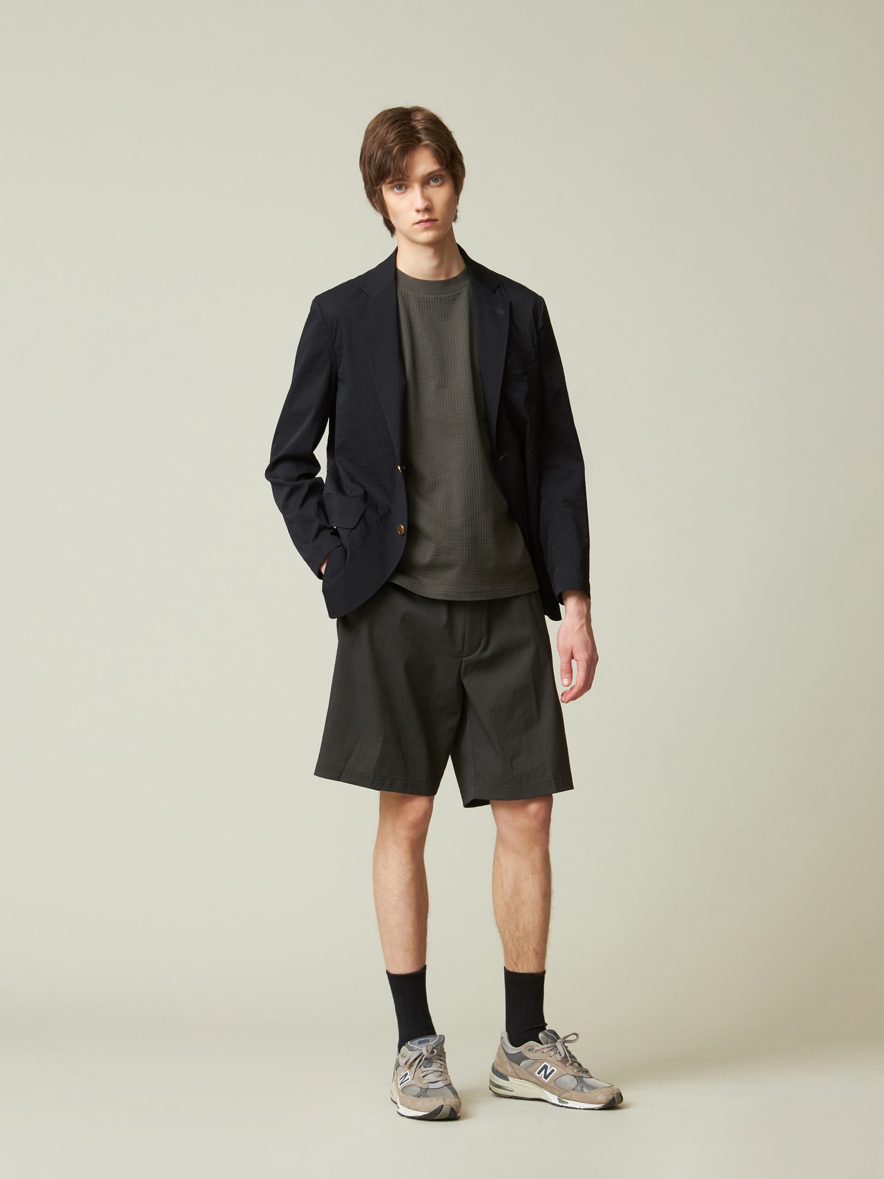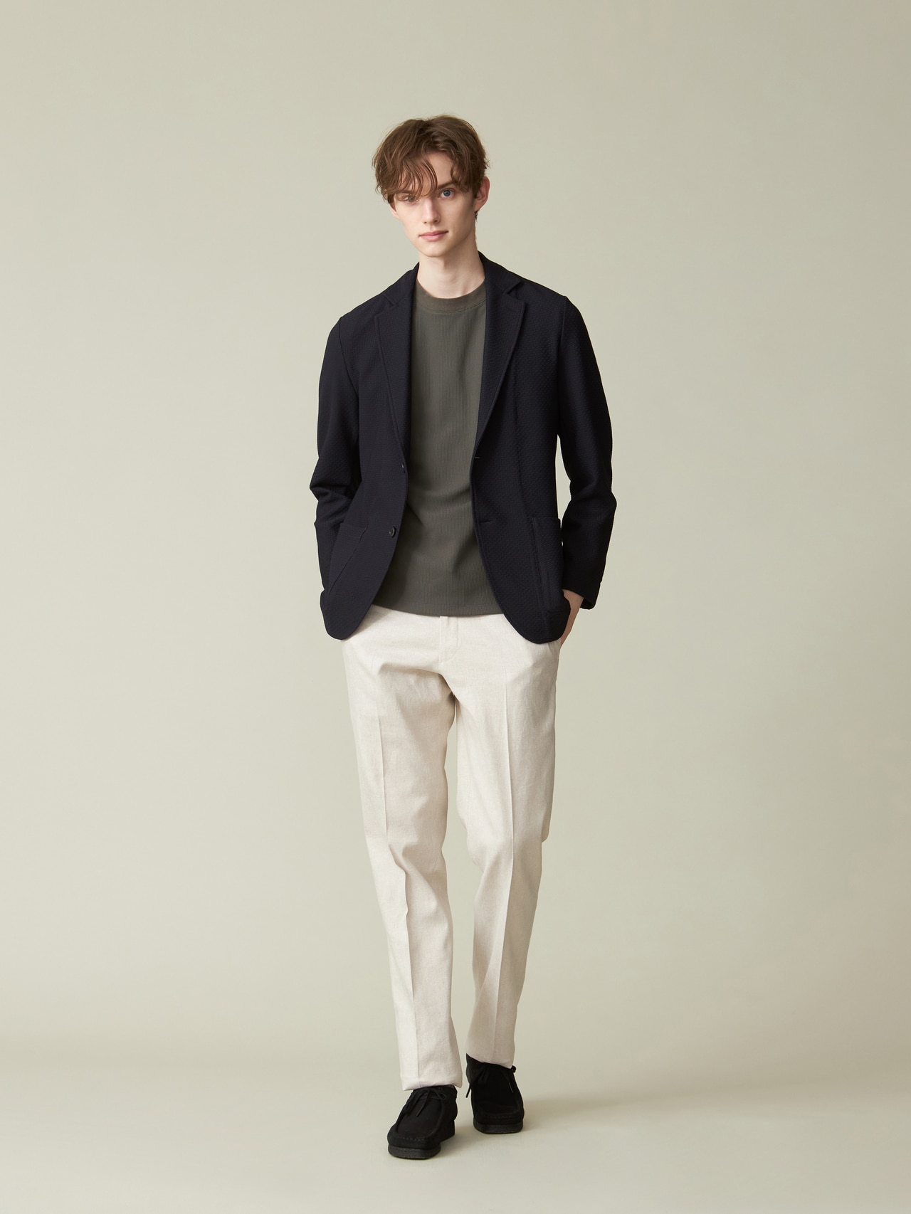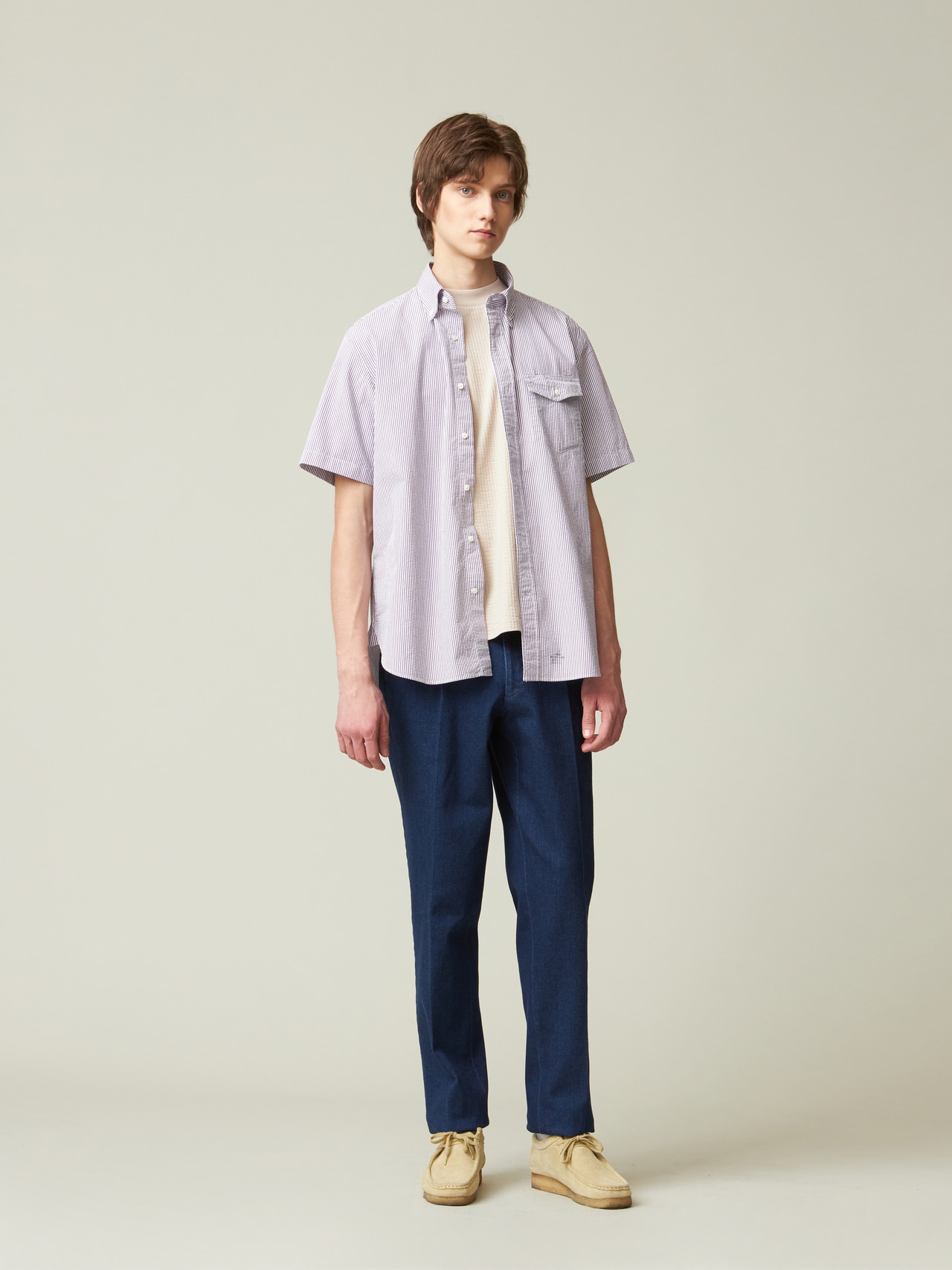 トラッド感のあるシアサッカーの生地を使用することで、洗練された雰囲気を演出。
