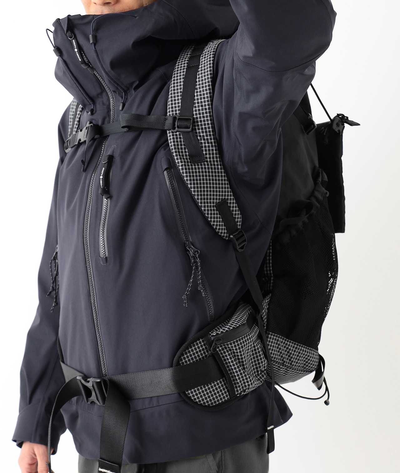 重量があるリュックを⾧時間背負いながら登山をすると、肩線の縫い代が当たり、不快感を感じたり、縫い目にショルダーハーネスが触れていると雨の漏水の可能性が生じることがあります。袖のパターンはそう言った現象を極力抑えるように設計しています。
