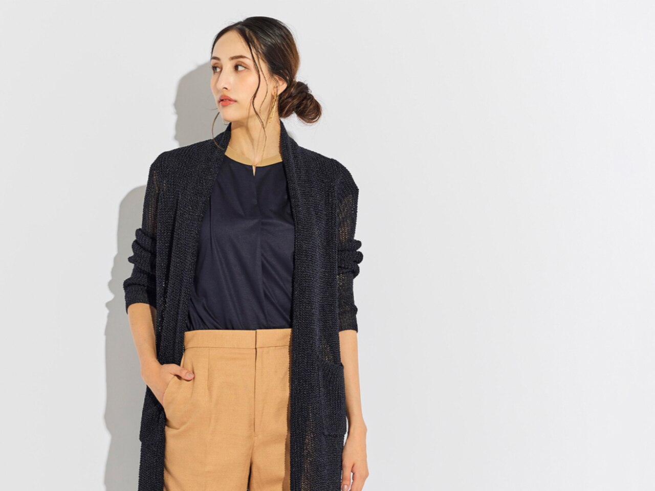 環境に優しいサスティナブル素材の、上品なBEIGE,定番のカーディガンをご紹介します。パーカーとロングカーディガンの2種類、ぜひご覧ください。