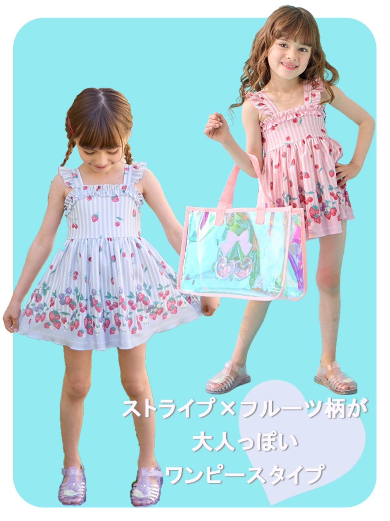 - ストライプ×フルーツ ワンピース 水着/ANY KIDS