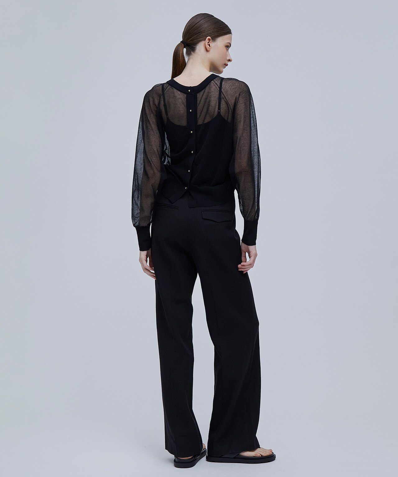 柔らかな透け感が女性らしいプルオーバーとカーディガン、リブトップスの3種類をご紹介します。