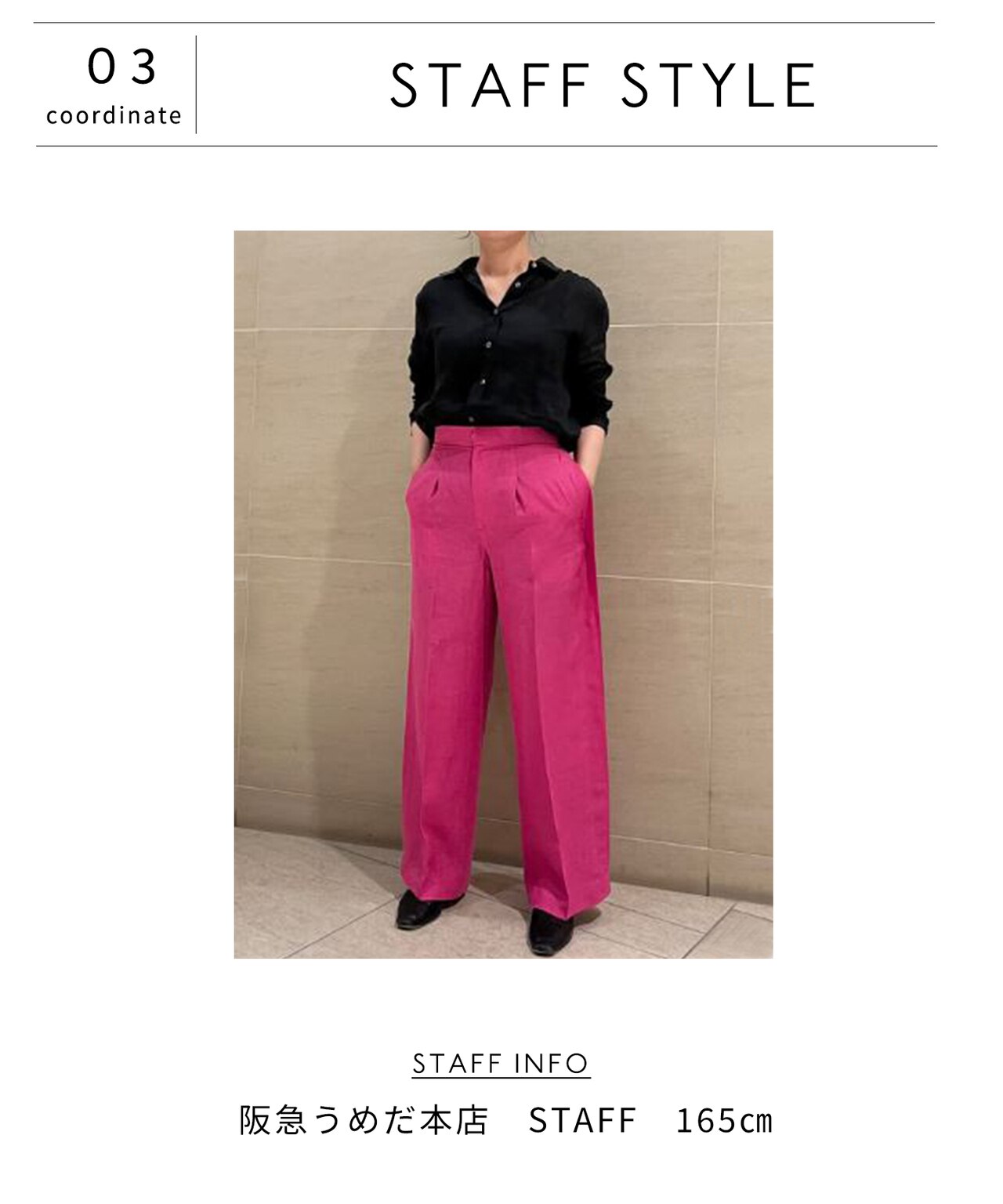 リネンの涼やかさと、夏に映える華やかな色合いを楽しめる、ブラウスとパンツ、ワンピースをご紹介します。
