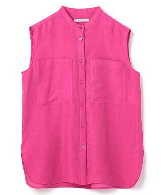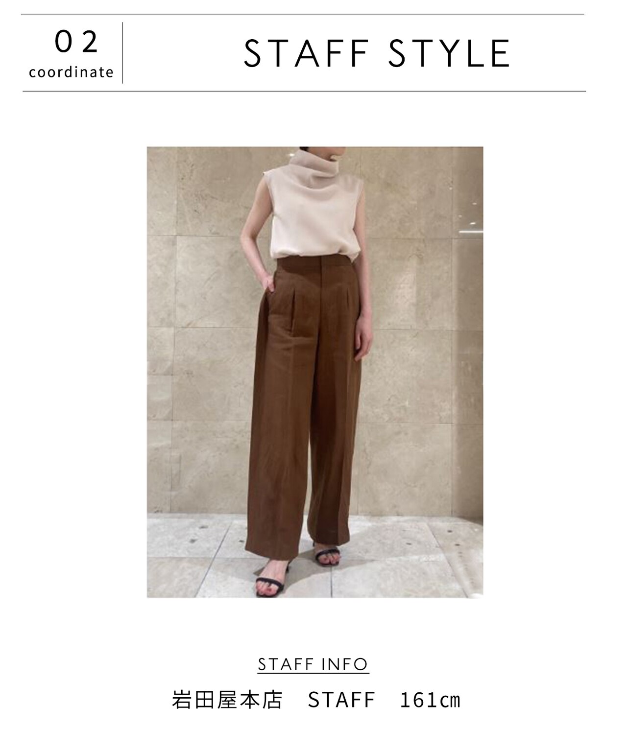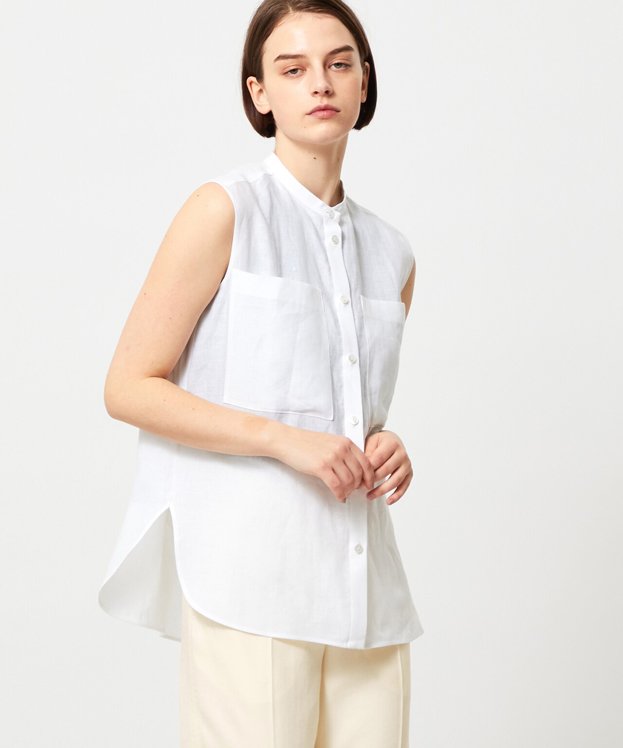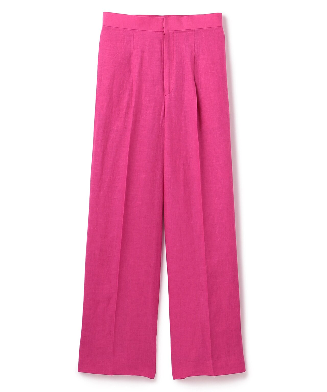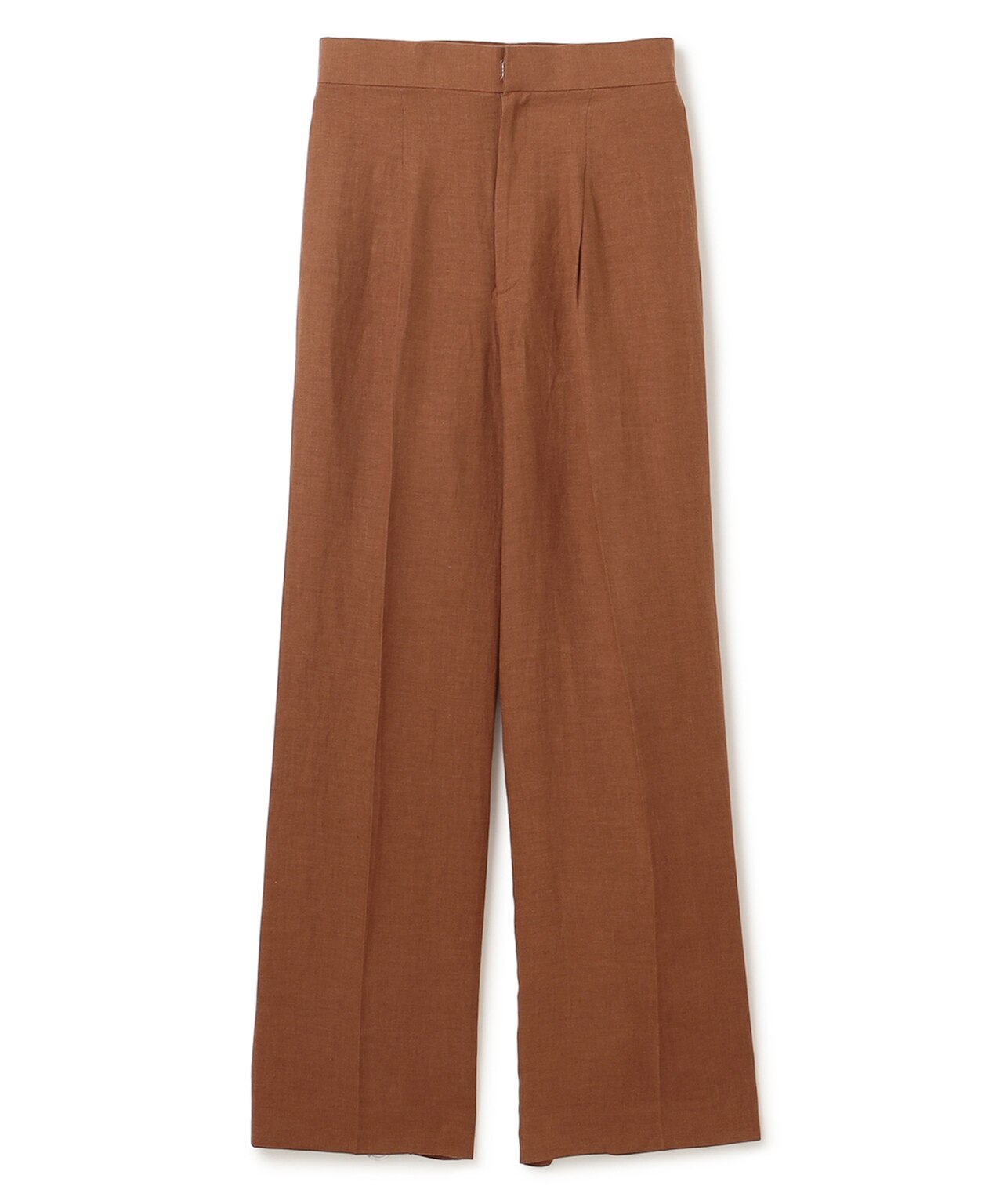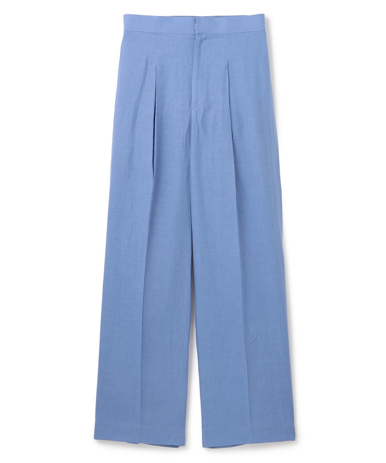 フロントタックとサイドの重ねデザインがポイント。カジュアルながらマニッシュな雰囲気を併せ持ち、リネンのシャリ感と上品な色味がスタイリングに華やかさをプラス。