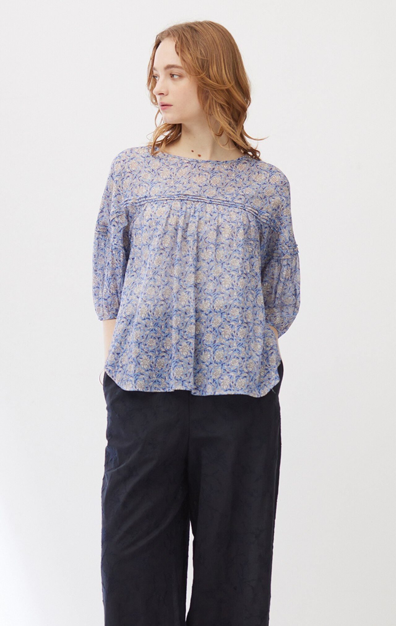 ■ Indian Factory Collection / インド生産に精通する外部デザイナーを迎え、新たな生産背景で今までの23区lab.にはない特徴的なコレクション。暑い国で知られるインド産の天然素材は、通気性が良く、猛暑が長引く現在の日本の気候にもマッチ。インドならではの伝統的な刺繍やプリントなど華やかな装飾性を取り入れた、夏に使いやすいトップスやワンピースをメインにしたコレクションです。