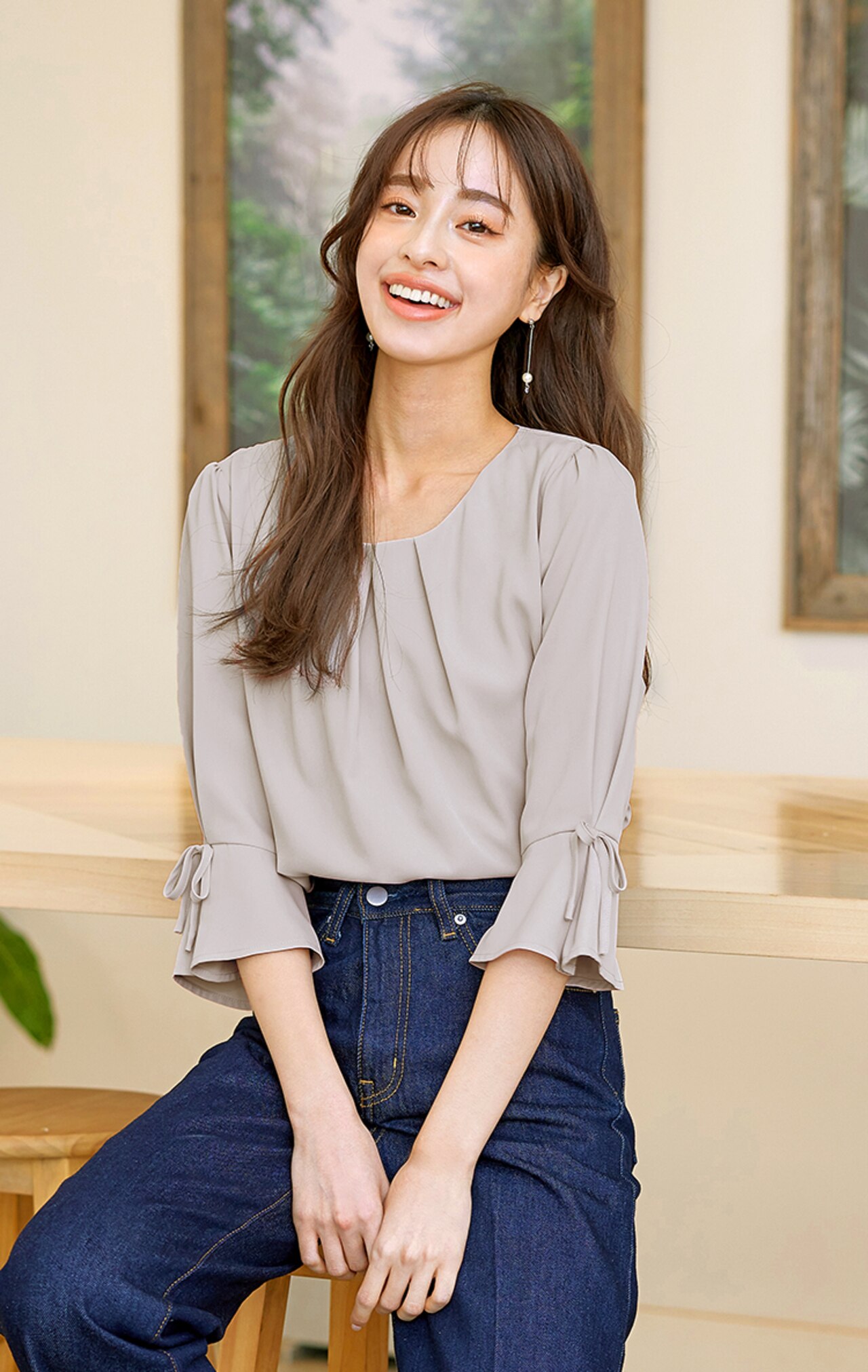 ジャケットなどのインにするとスタンダードなブラウスの印象ですが、1枚で着ると袖のフレアーとリボンがポイントになり素敵です。家で洗えるし、心おきなく日常遣いできると思うので楽しんでたくさん着ようと思います。