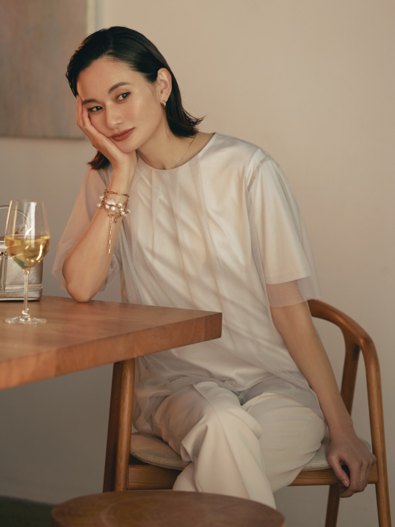 - 【アンサンブル対応・洗える】ハイツイストコットンアセテートフレンチスリーブ ニット/自由区