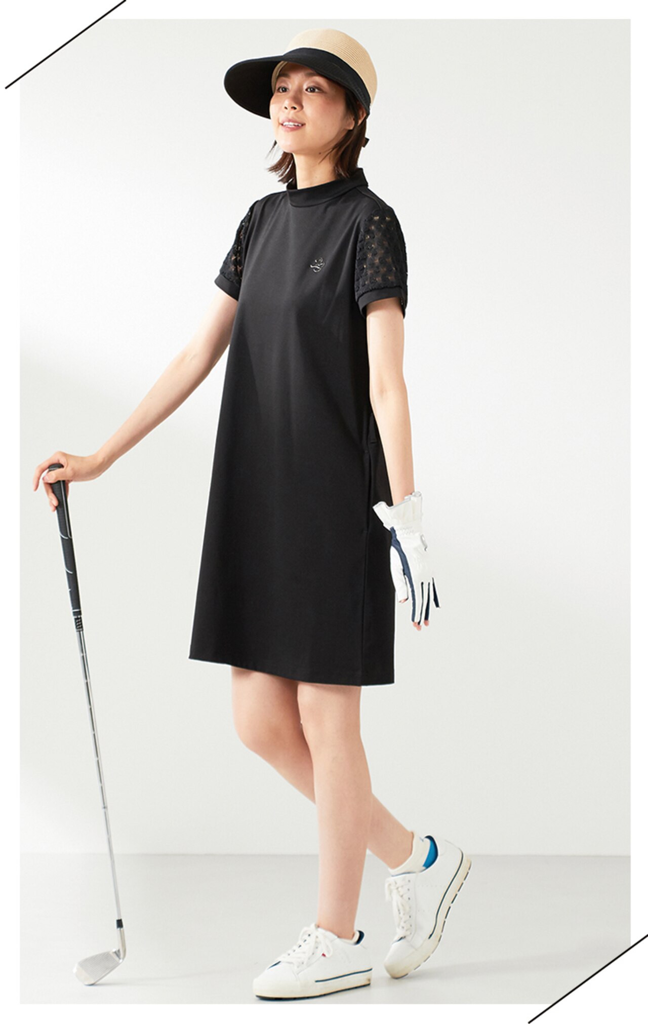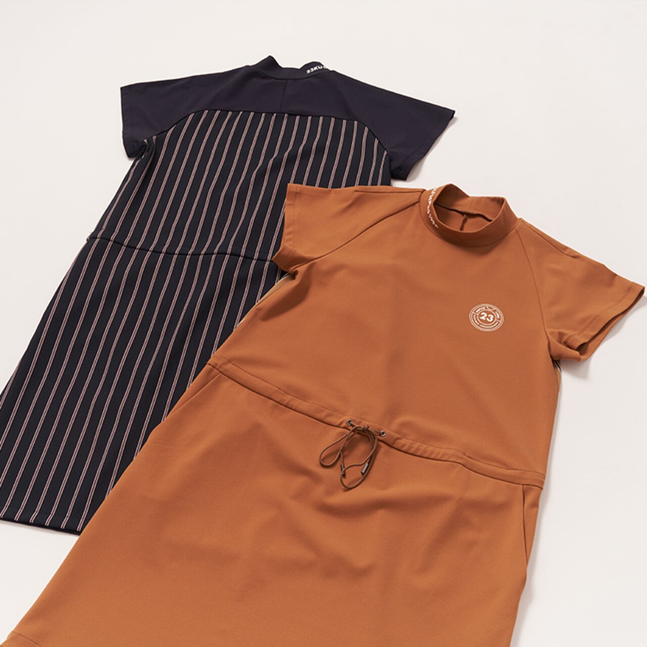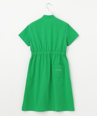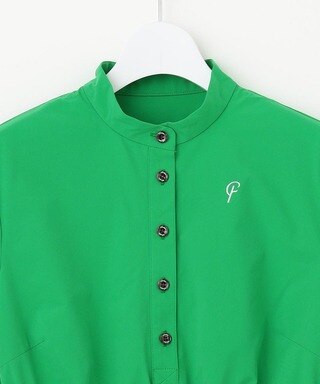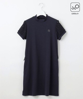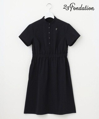 23Fondationらしい洗練されたミニマルデザインが魅力のノーカラーワンピース。ナチュラルにブラウジングしたようなウェストギャザーで、シルエットもキレイ見え!シワになりにくく、360度のストレッチ性もあるTEXBRIDはスポーツシーンに優れた素材でラウンドを快適に。シワや型崩れにも強い素材だから旅行や行楽にもおススメなんです◎【UVカット】レース袖 モックネック ワンピ