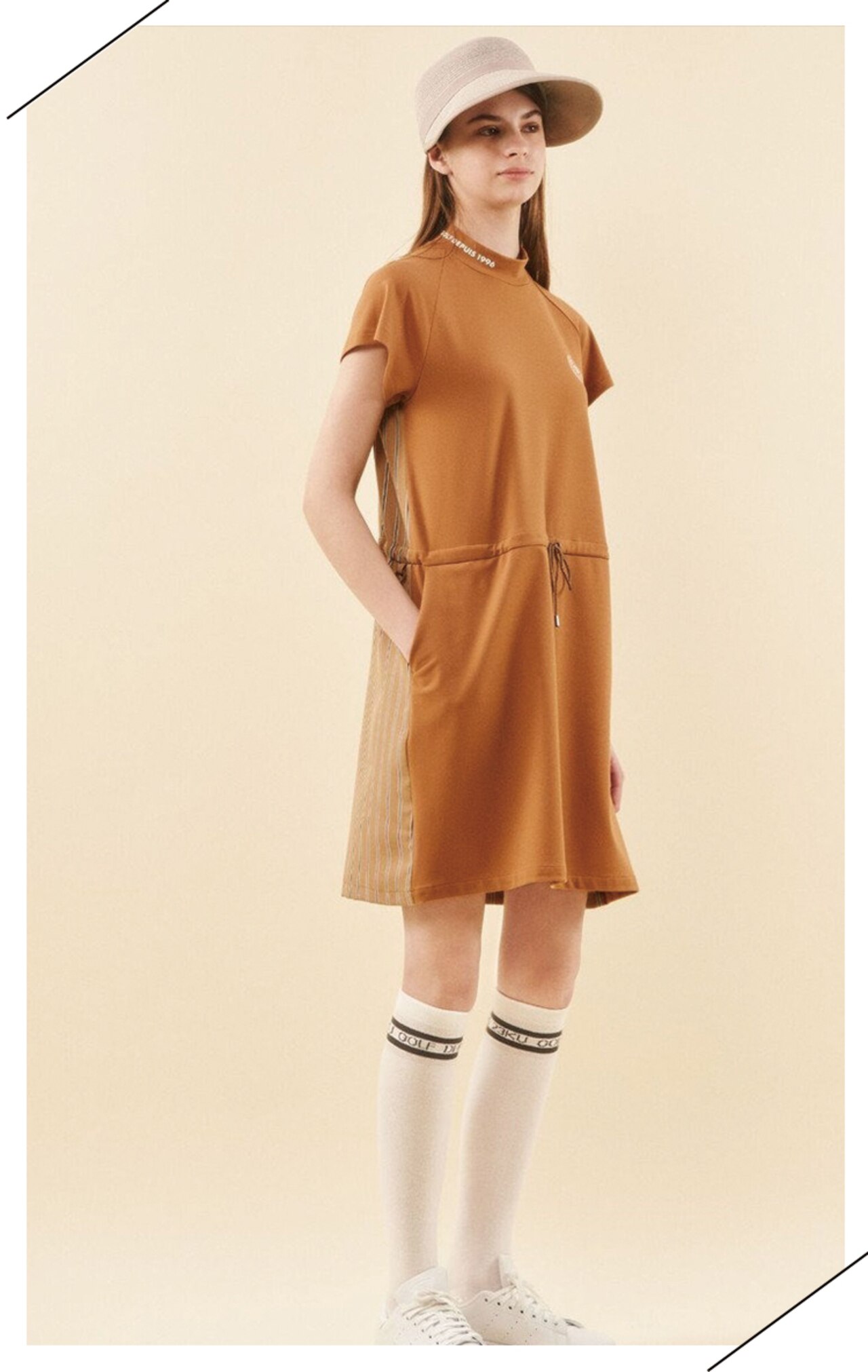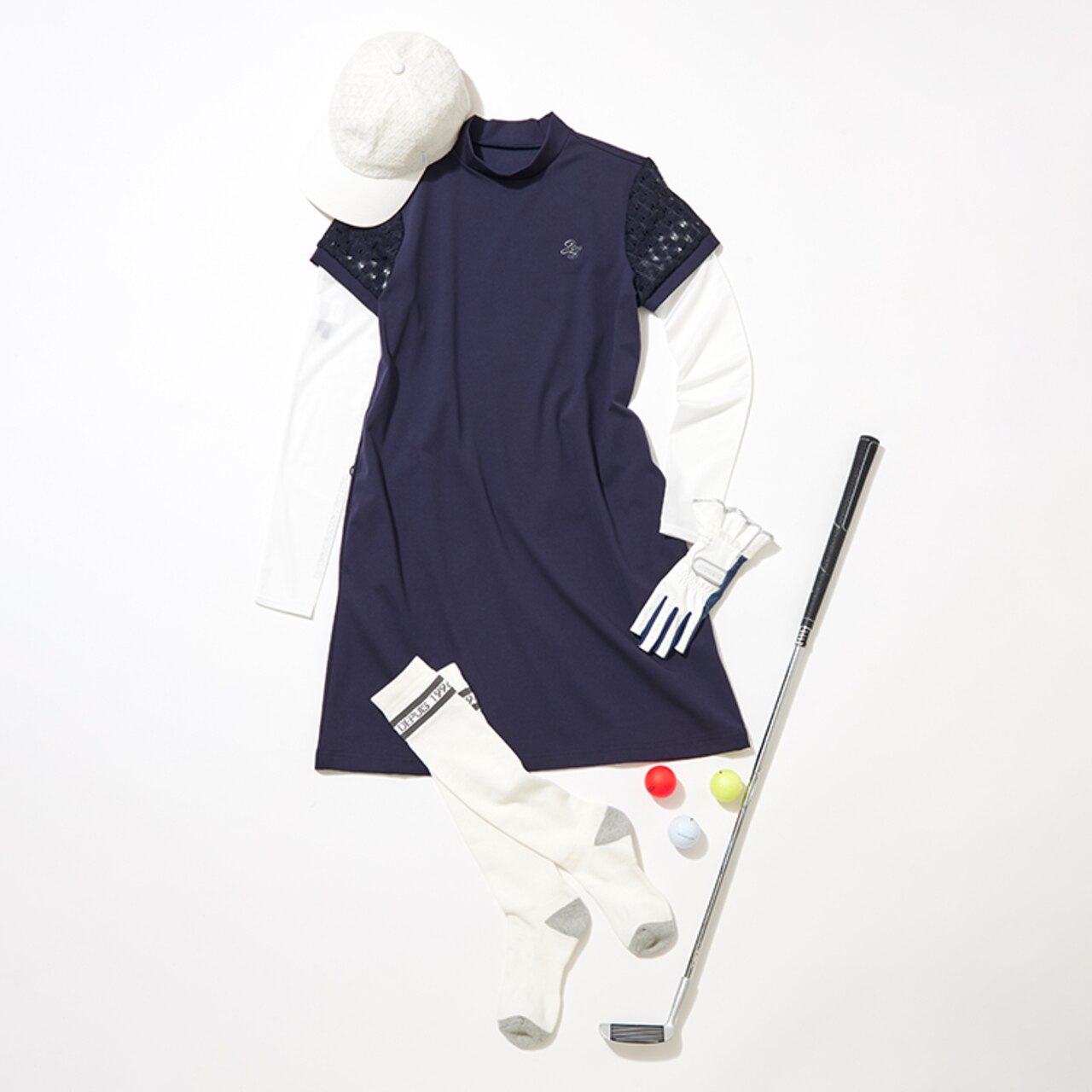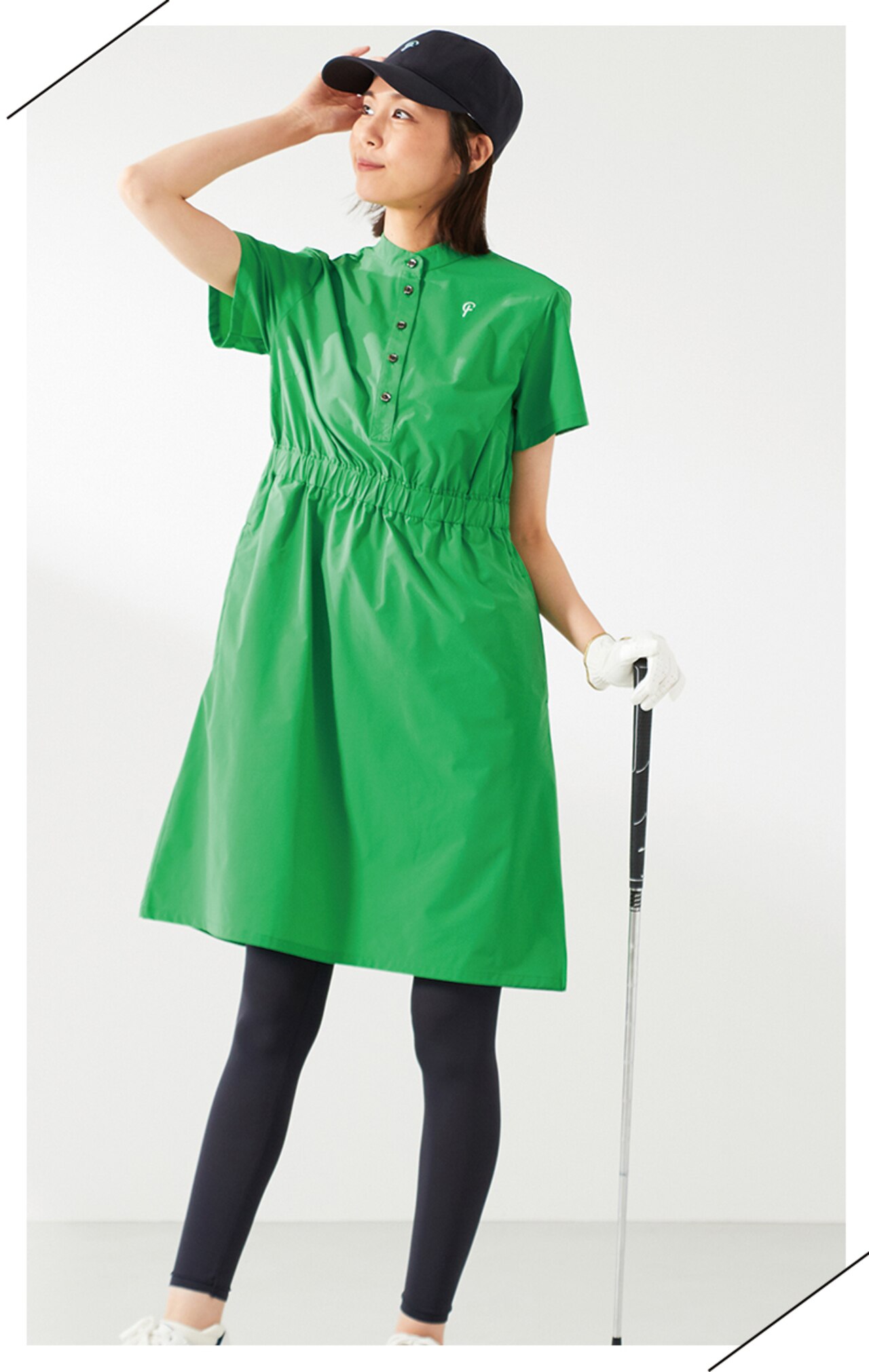 23Fondationらしい洗練されたミニマルデザインが魅力のノーカラーワンピース。ナチュラルにブラウジングしたようなウェストギャザーで、シルエットもキレイ見え!シワになりにくく、360度のストレッチ性もあるTEXBRIDはスポーツシーンに優れた素材でラウンドを快適に。シワや型崩れにも強い素材だから旅行や行楽にもおススメなんです◎【UVカット】レース袖 モックネック ワンピ