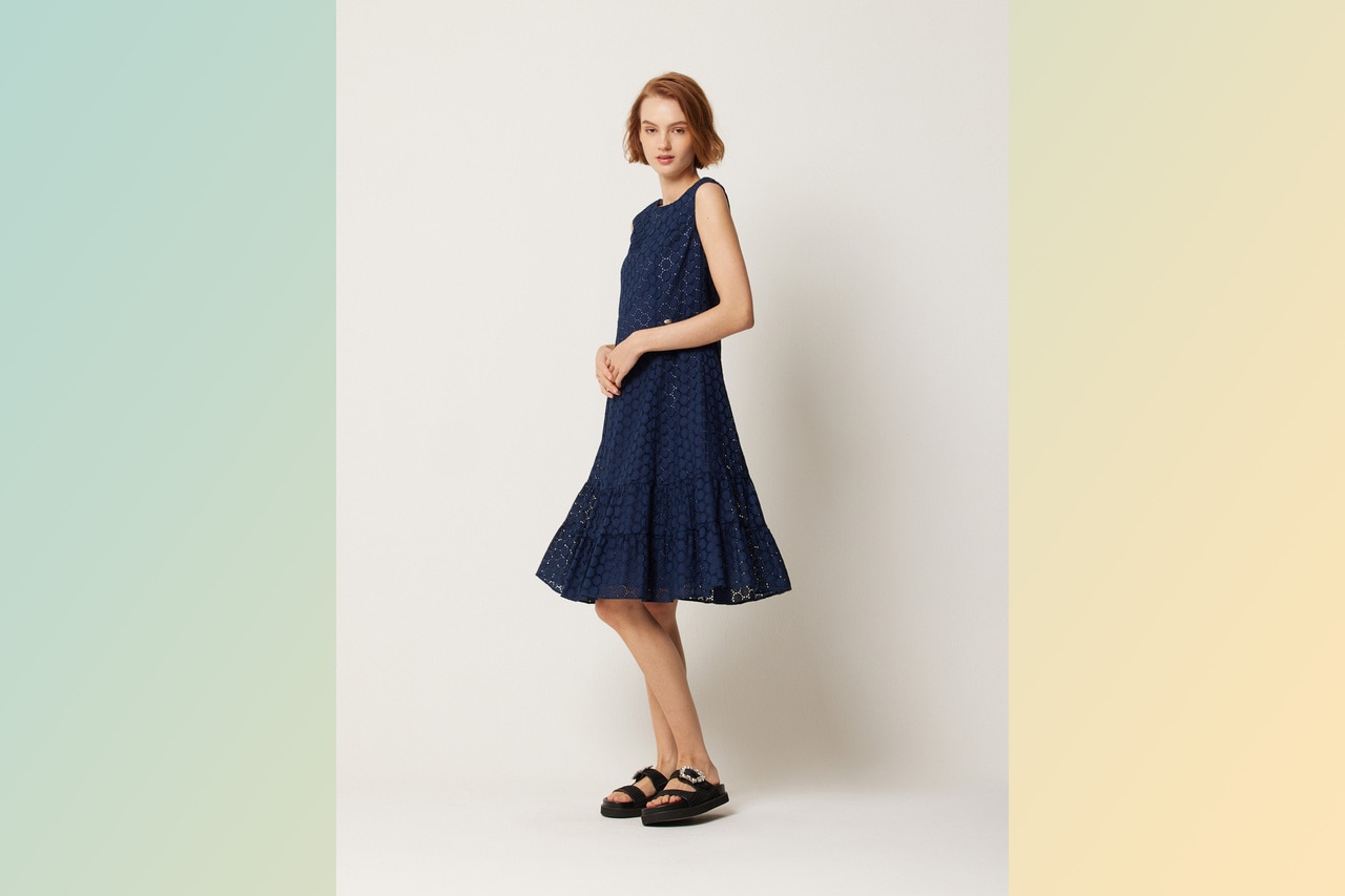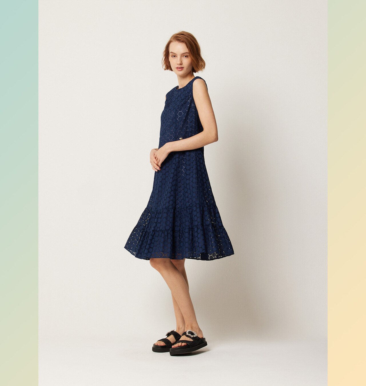 暑い日にも最適なコットン素材に、サークル柄の刺繍を施したサマードレス。