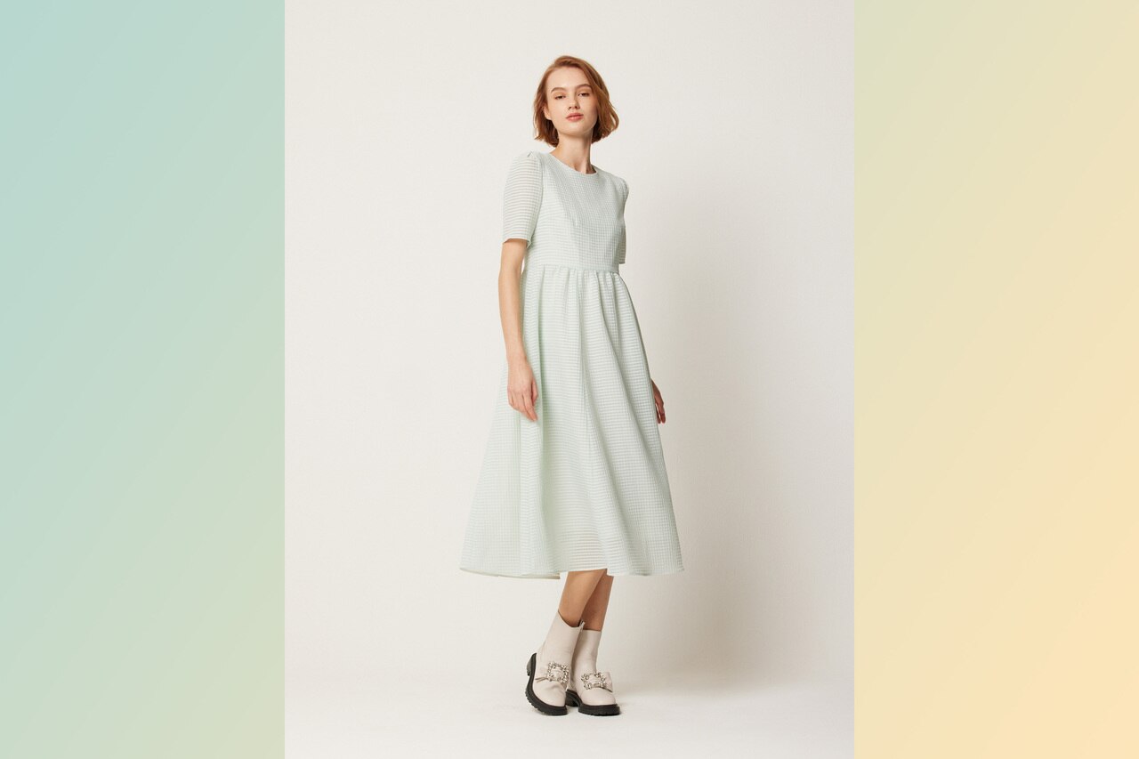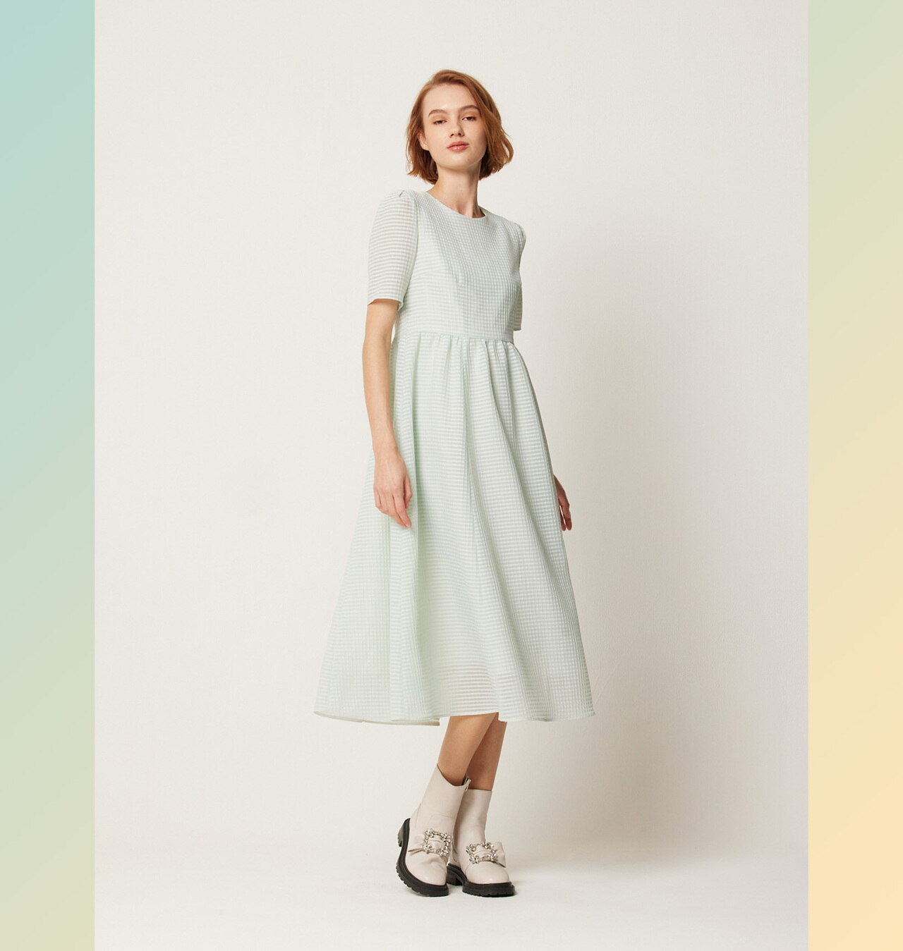 シアーなチェック柄のドレスは、ストレッチも効いていて着心地◎