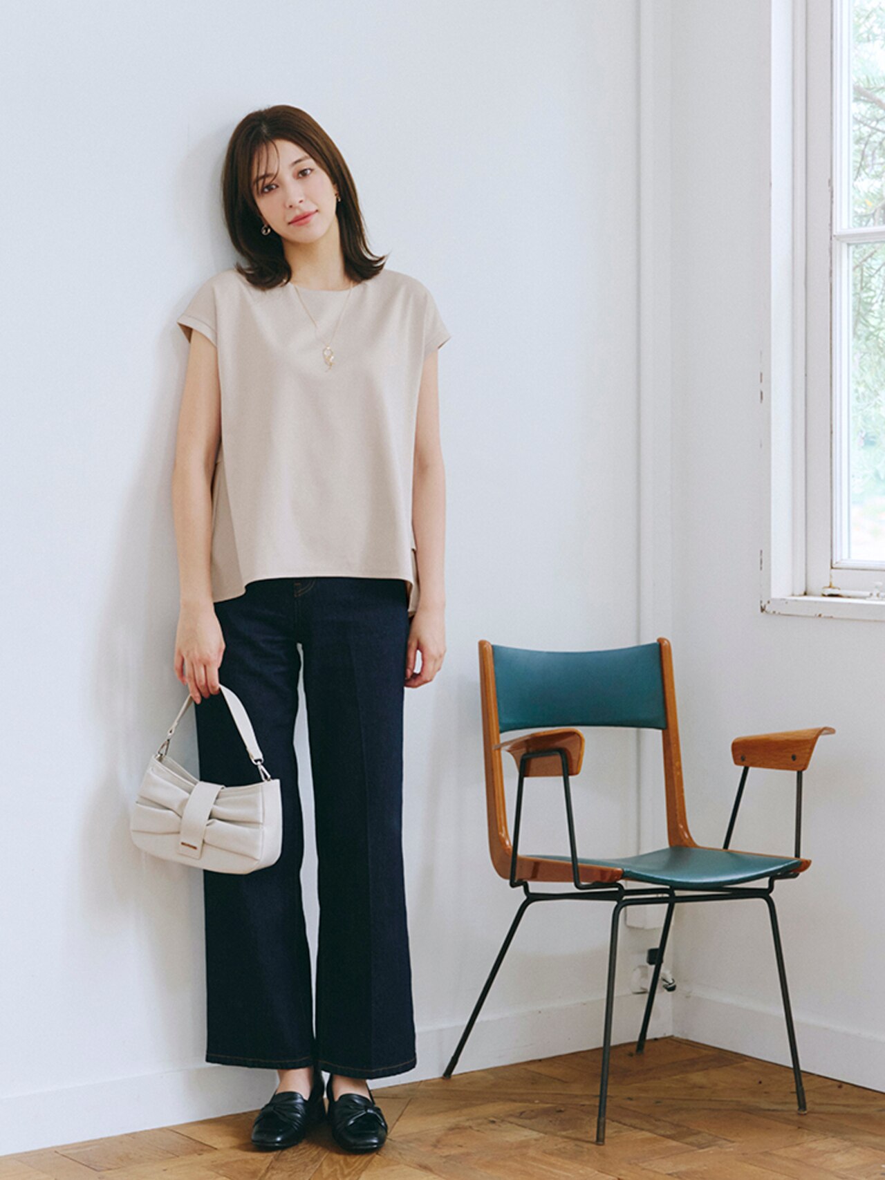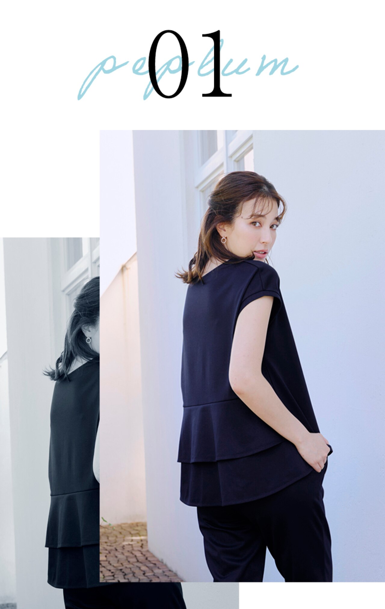 今年大注目のペプラムデザインは、大人上品な雰囲気を残しつつ、可愛くスタイルを「きれい」に見せてくれる優秀トップスです。華奢みえ効果のある程よいフレンチスリーブもうれしいポイント!