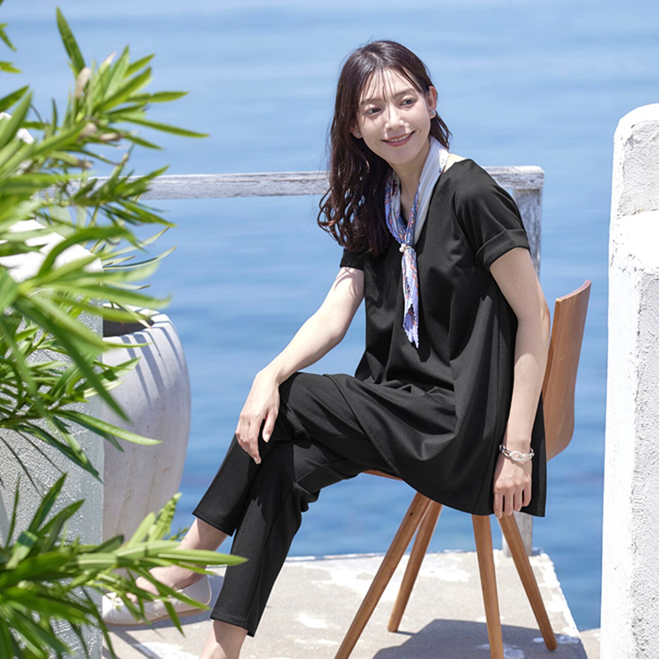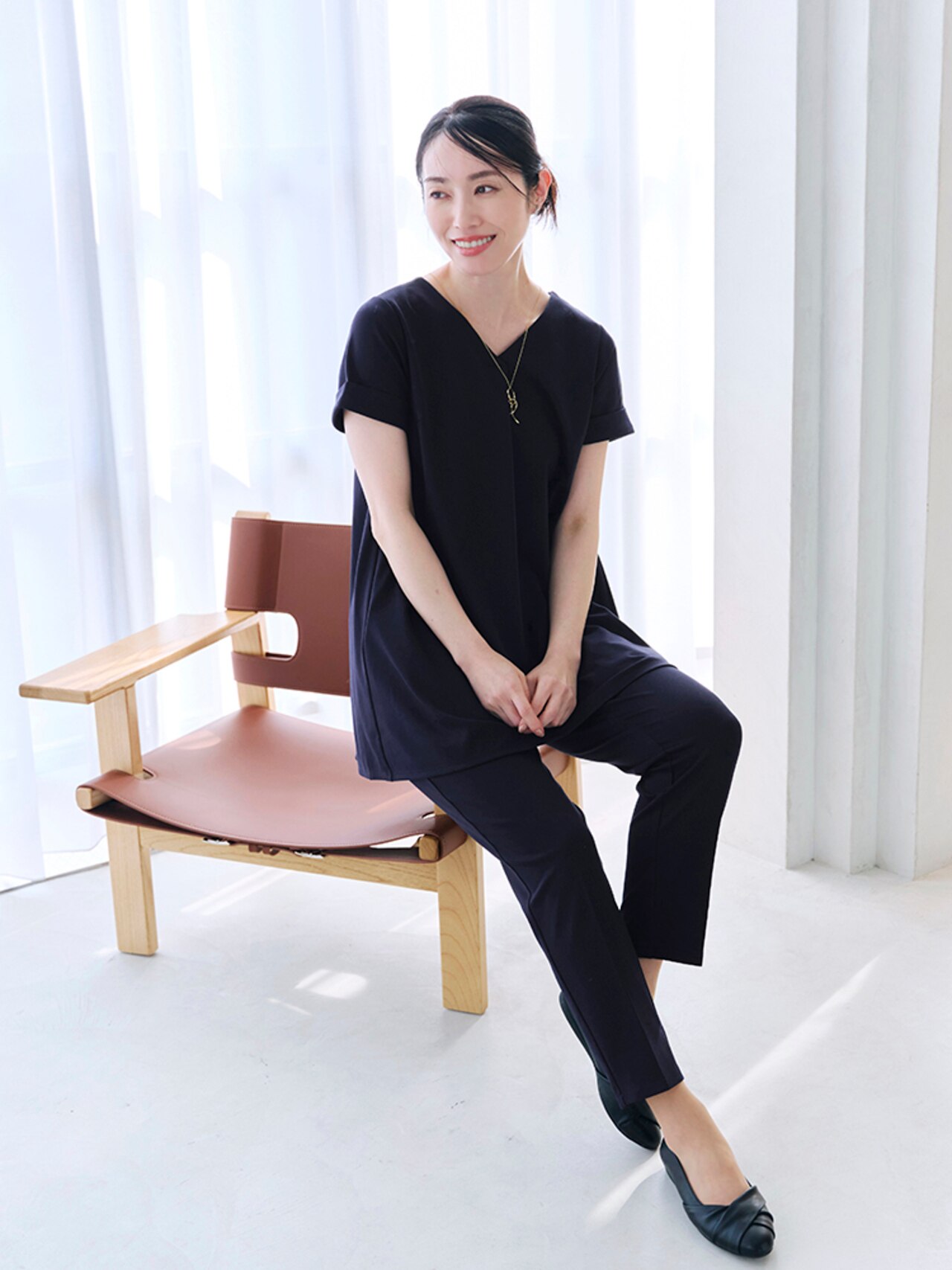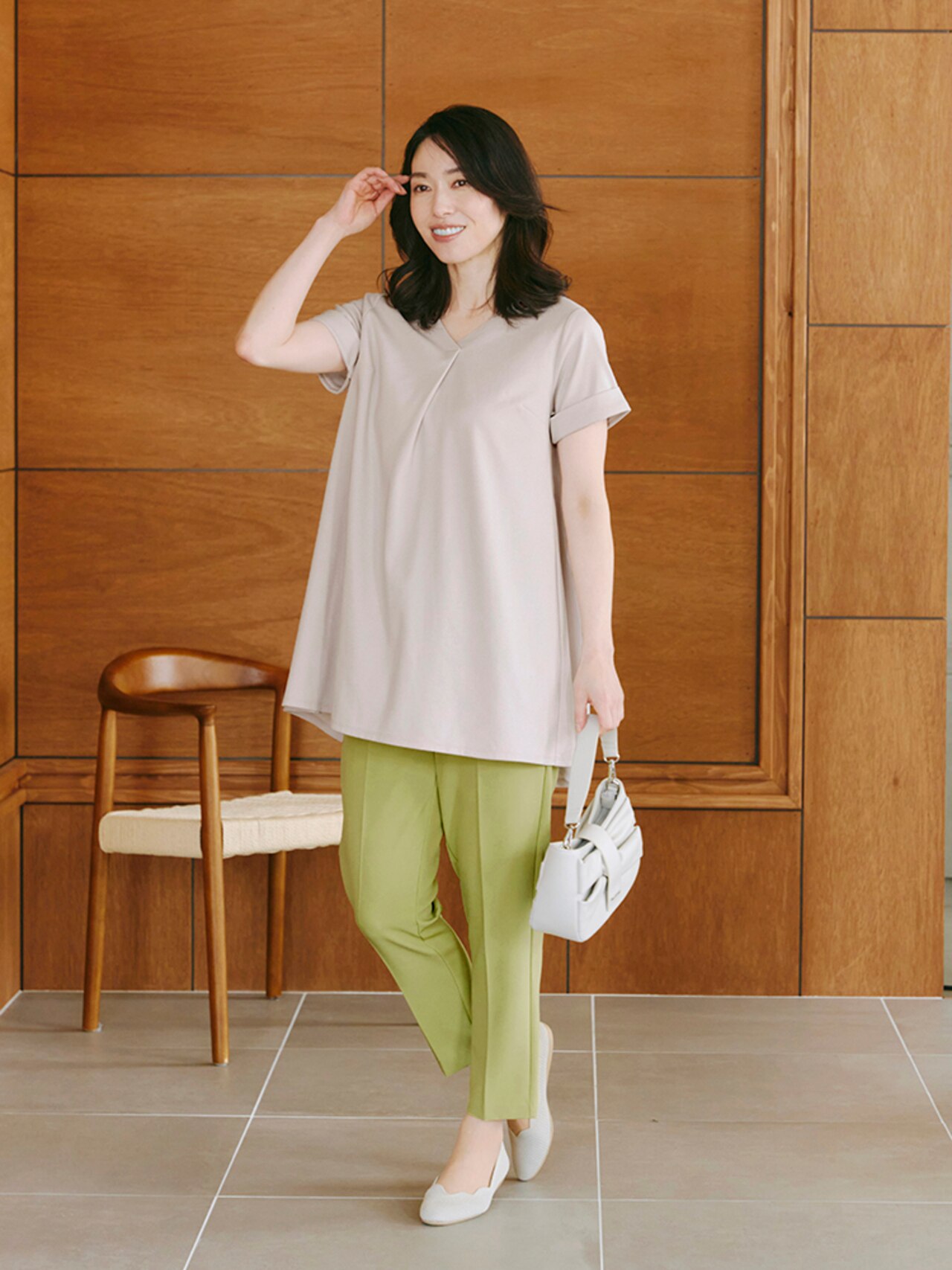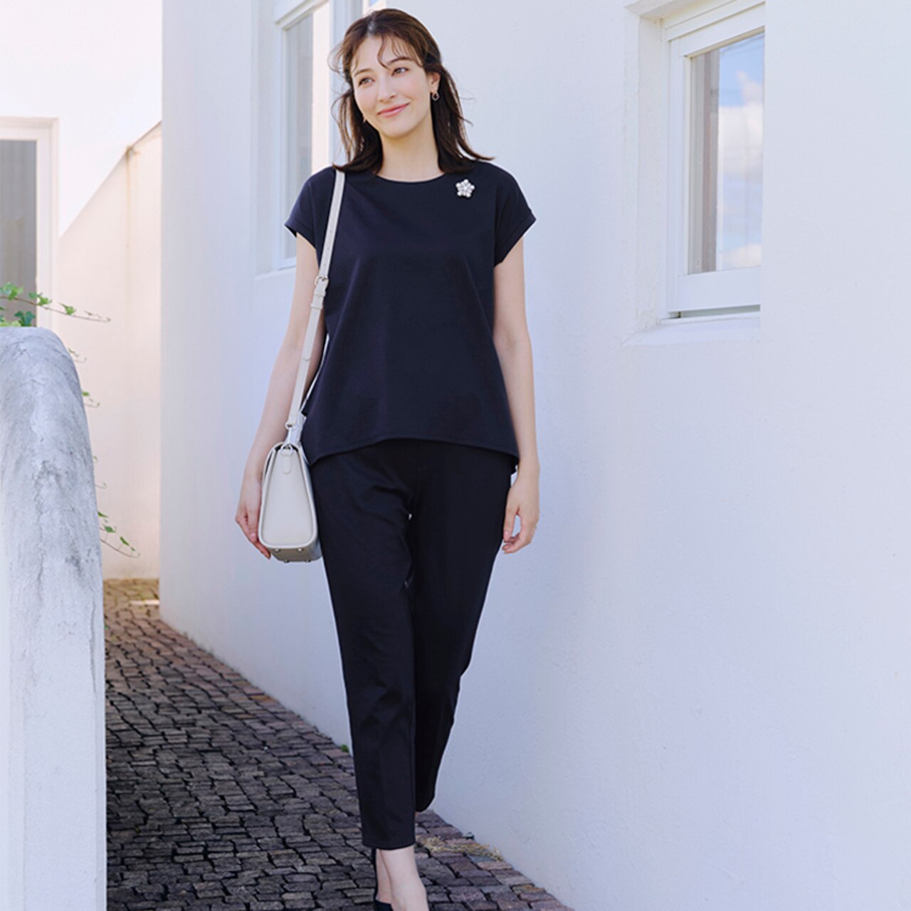 脚を「きれい」に見せてくれるシルエットが魅力のテーパードパンツは、履き心地も注目ポイント。まるでスウェットパンツを履いているかのような感覚でありながら、それでも上品に見えるのは、「きれい見え」にこだわってつけたセンタープレスのおかげ。オン・オフ使える快適パンツをぜひ。