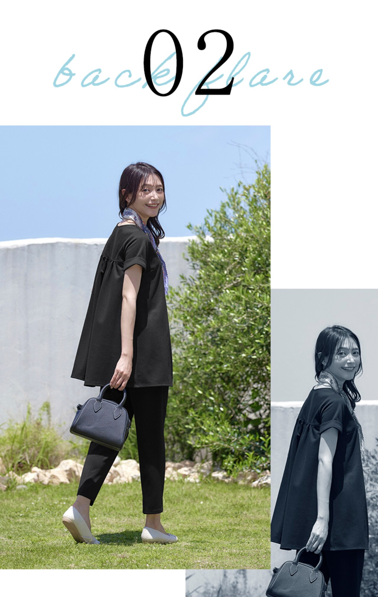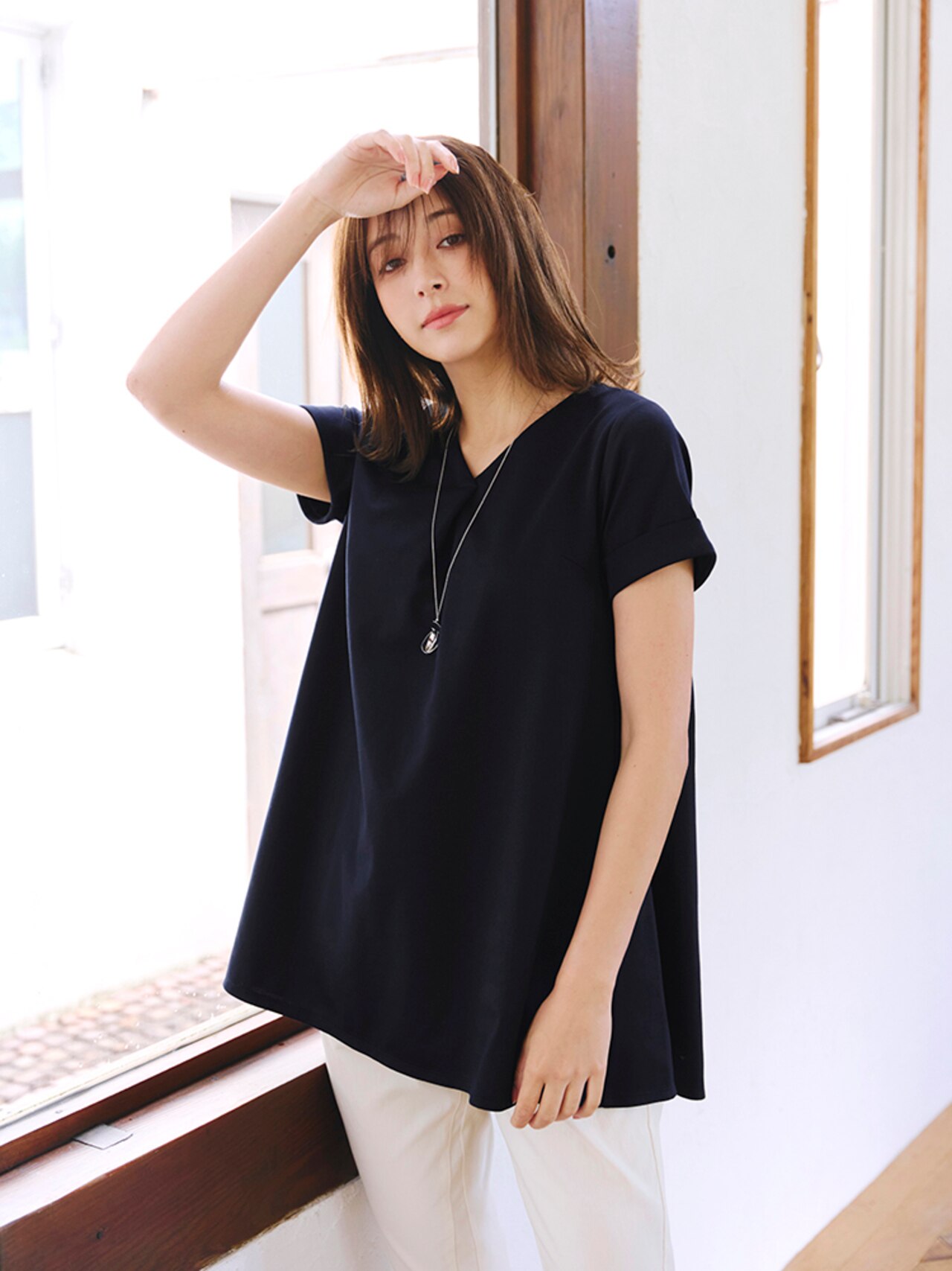 360度かわいいチュニックは、体型の気になる部分を全て「きれい」に見せる優れもの。袖口カフスが二の腕を華奢に。Vネックが小顔効果を。たっぷりのフレアシルエットが体のラインを。細部に行き届いた配慮が大人女子にささるアイテムです。