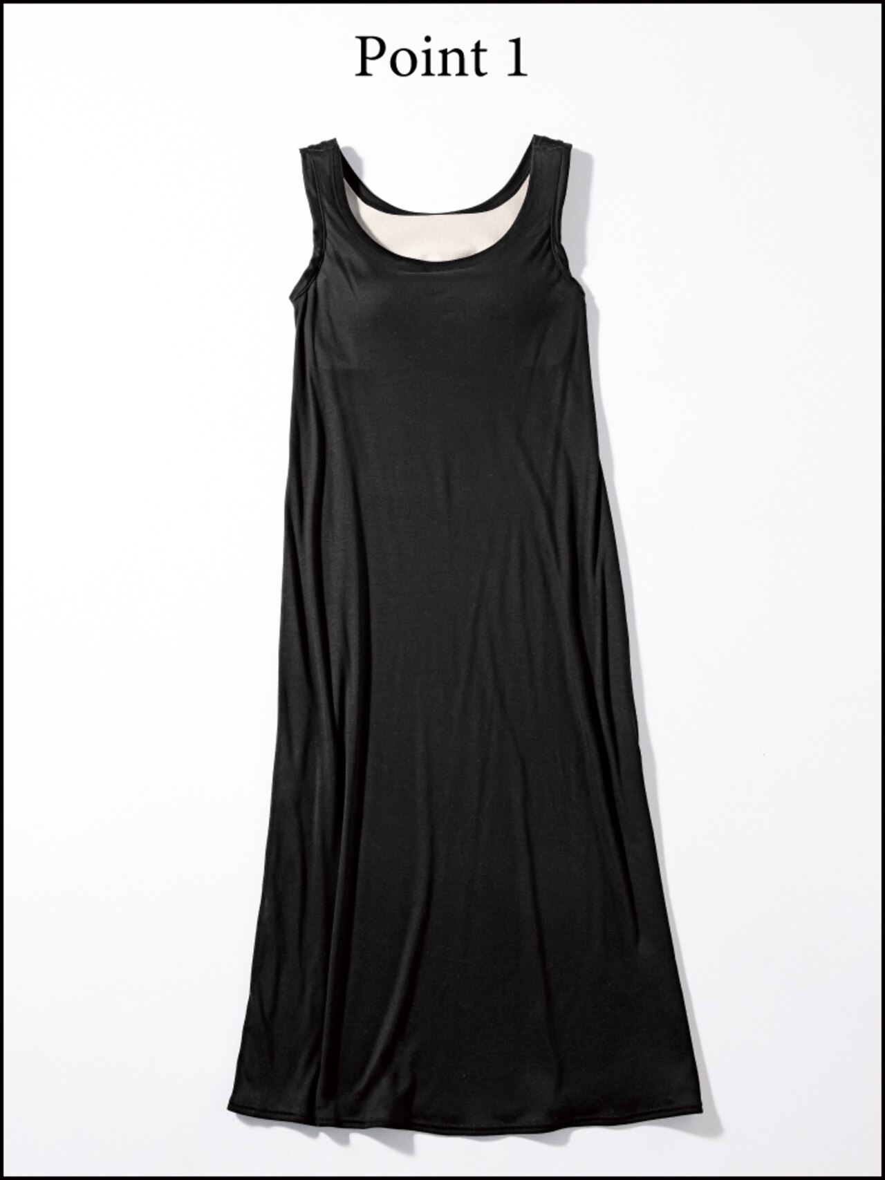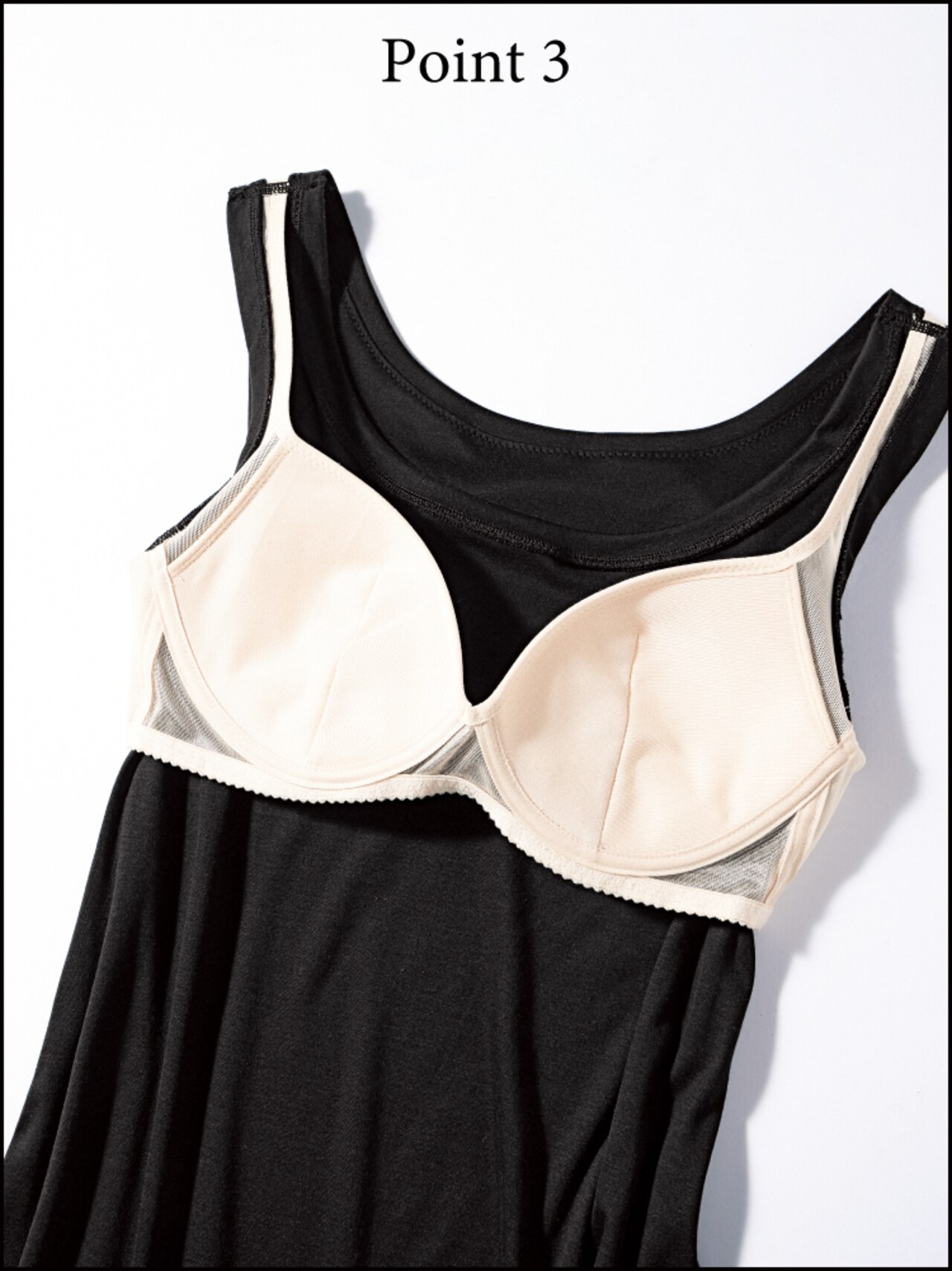 体のラインを美しく見せることを追求した「ワコール」独自開発のカップ付きペチコートと、意匠性の高い涼感あるドレスの理想的なコンビネーション。