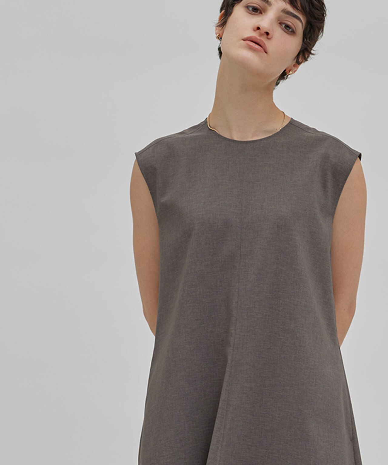 首や足元の抜け感が一枚で着映えるワンピース。程よいカジュアルさとモードさが大人の魅力あふれるデザイン。