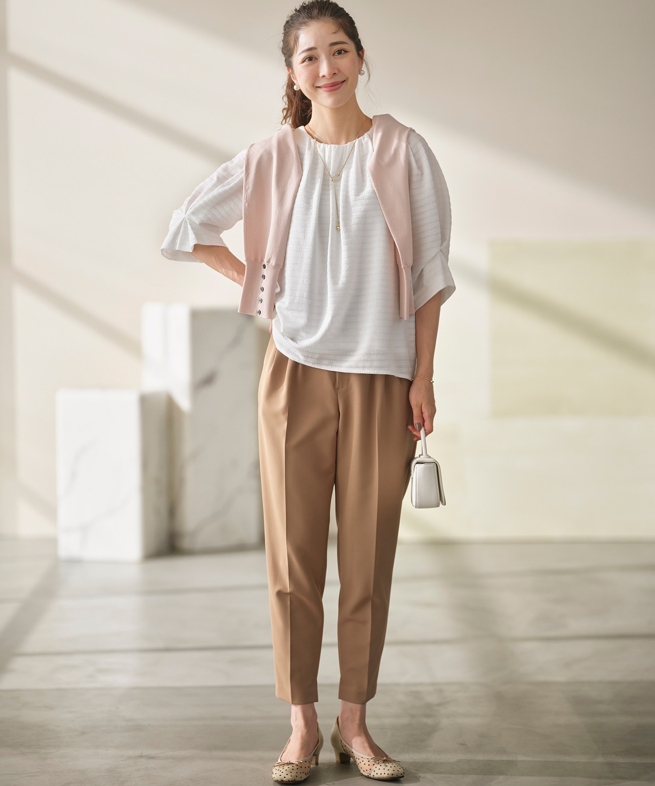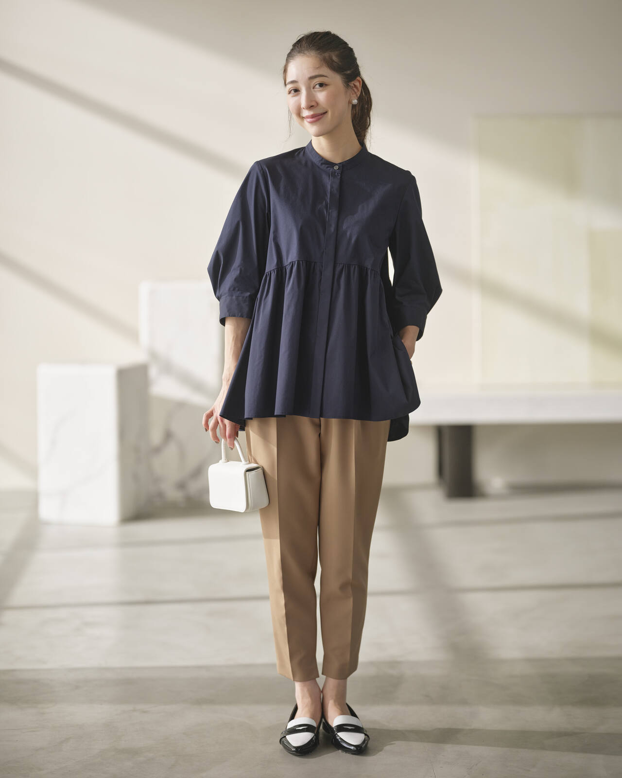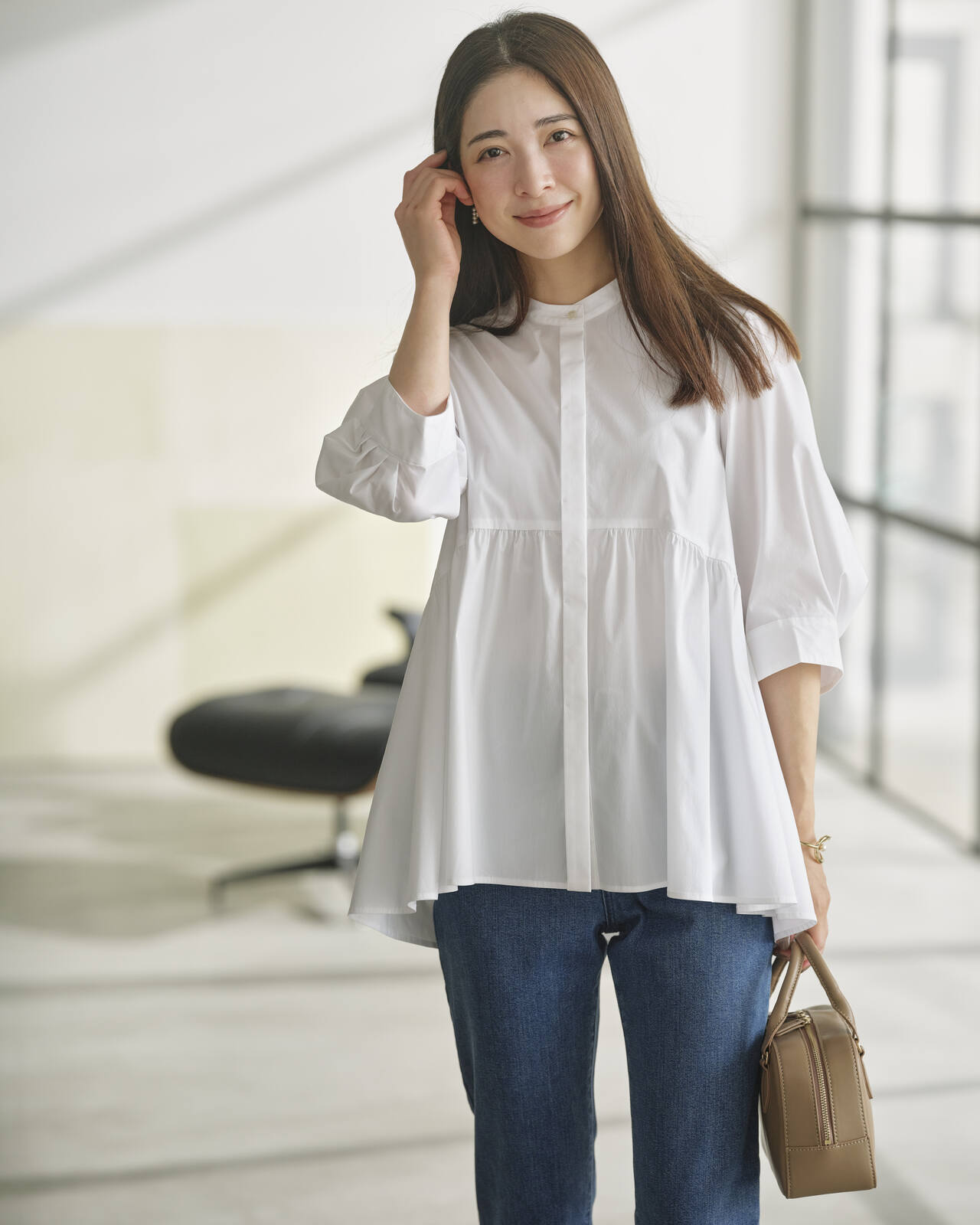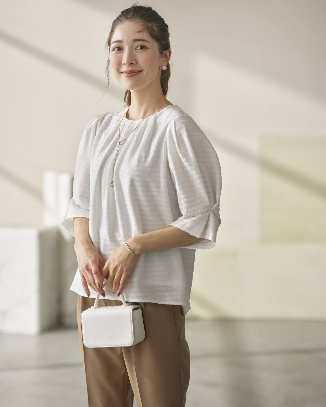 Tシャツの着心地とブラウスの華やかさのいいとこ取りの洗練ブラウス