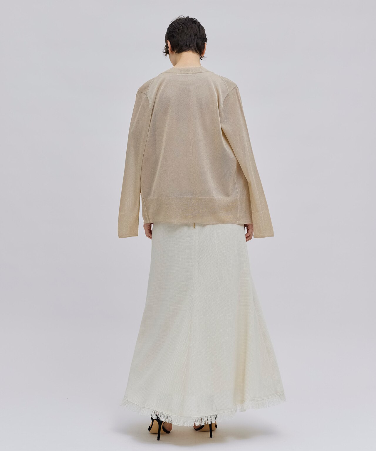 ゆったりとしたシルエットが、カジュアルながら大人の印象。ワンピースやカットソーの羽織りとして、夏に大活躍間違いなしの一枚。