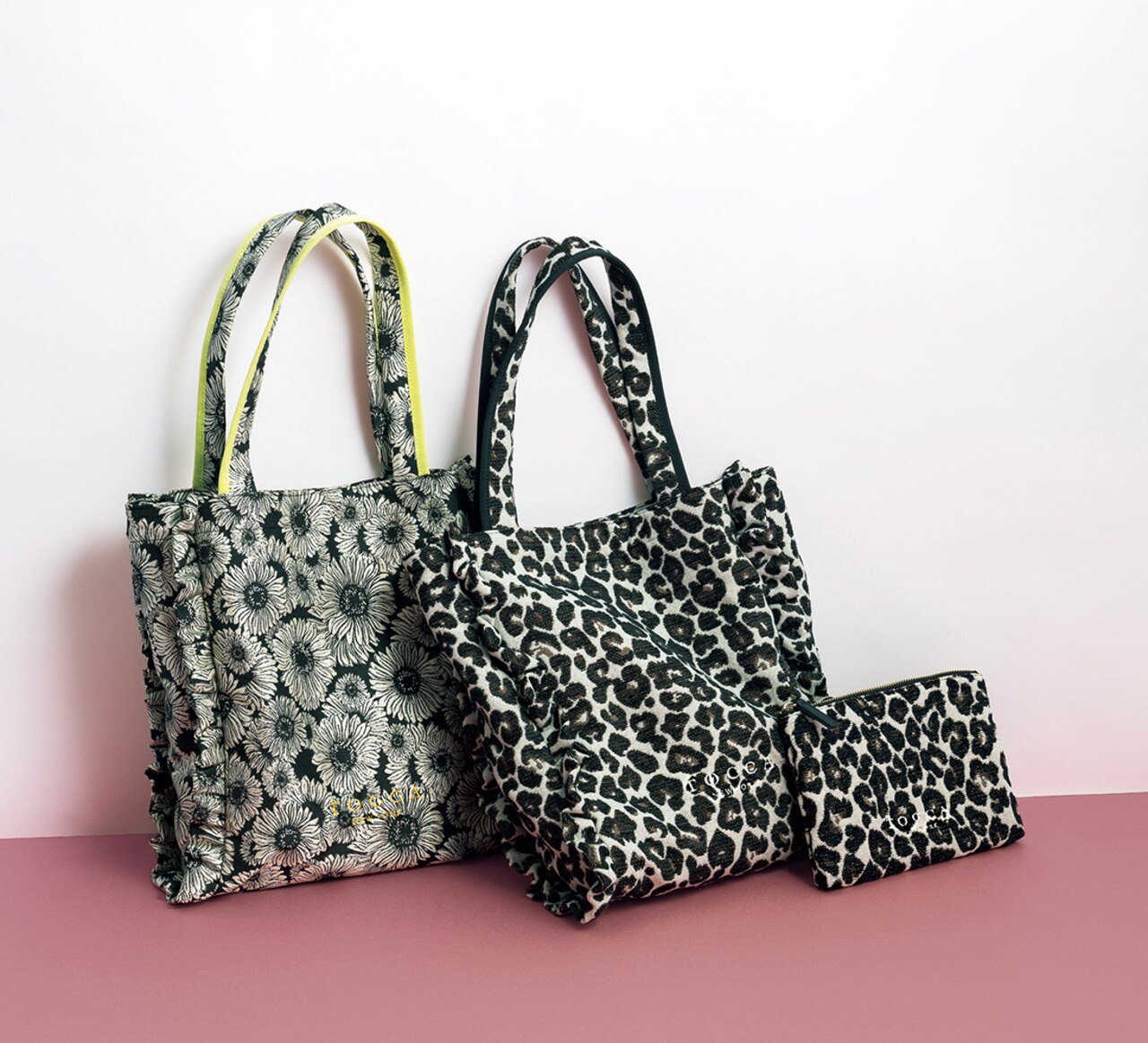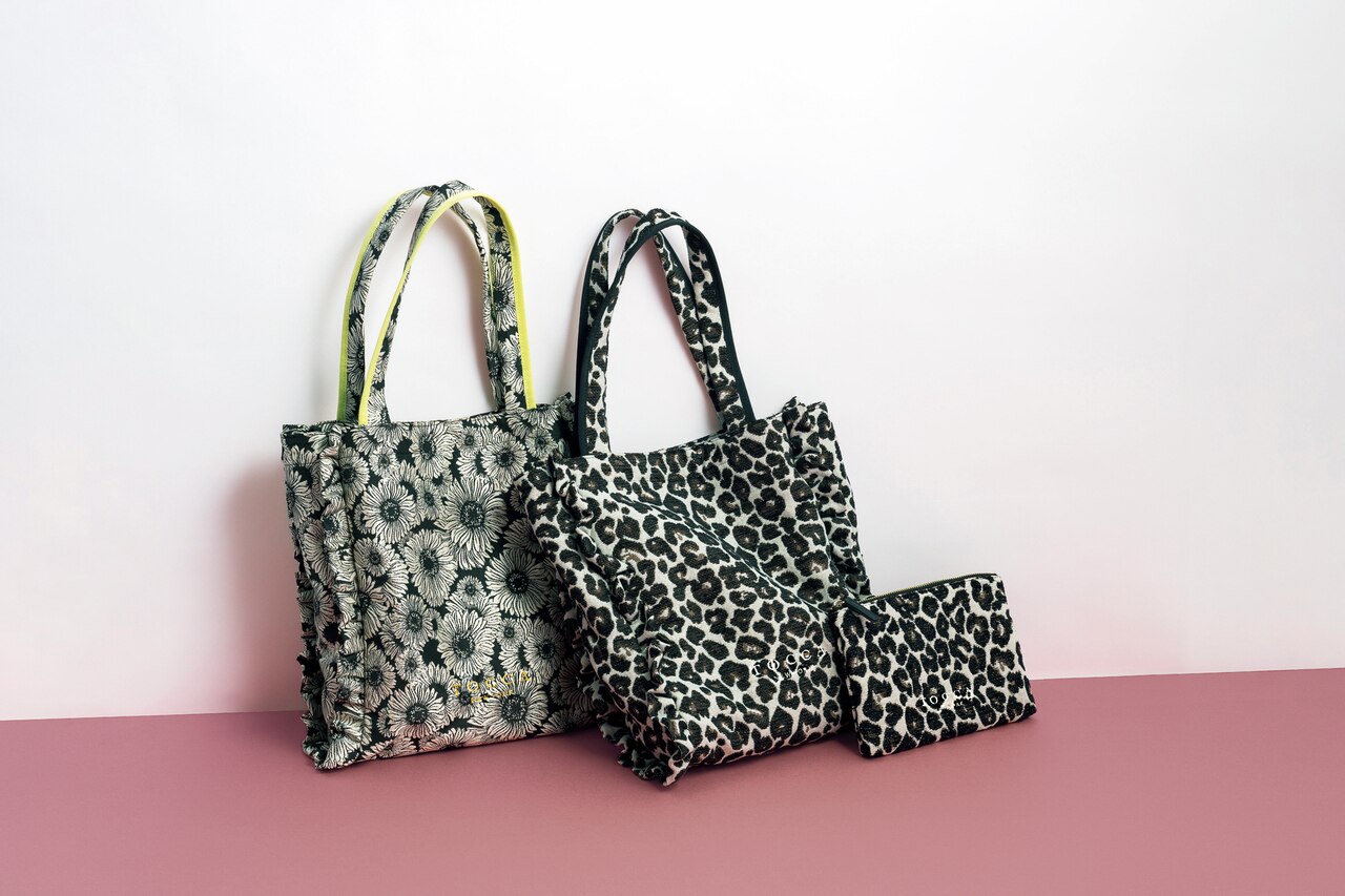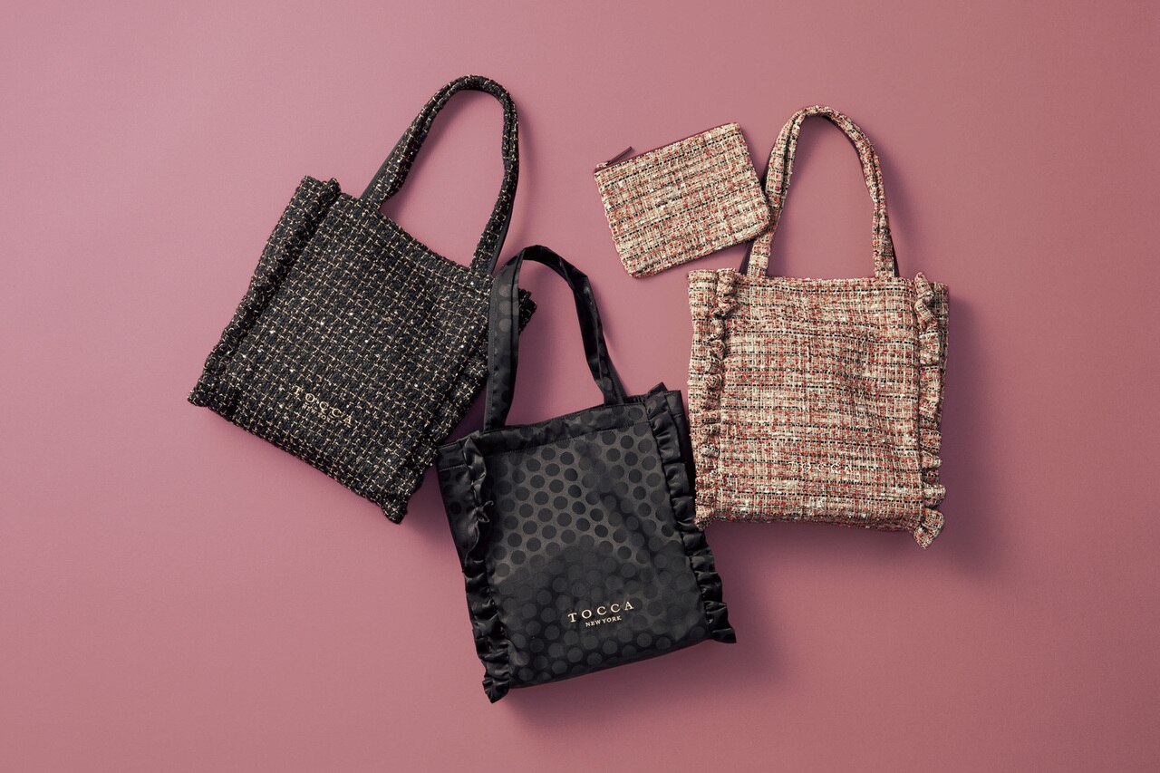 コラボレーションカラー以外にも、ブラックとコーラルのツイード、ドット柄もご用意しております。
