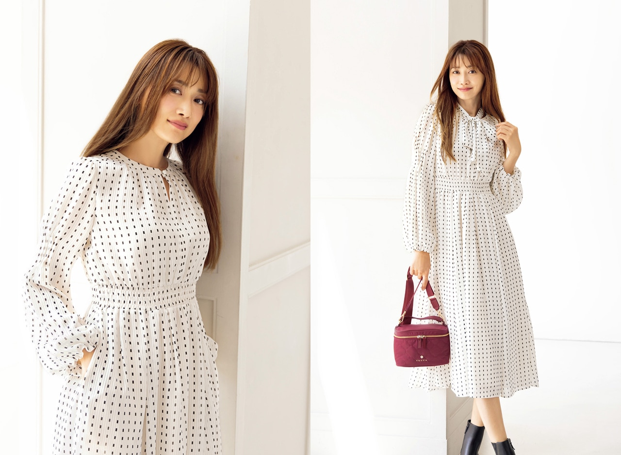 TOCCAの上品な雰囲気はそのままに、デイリーにも着やすいデザインに仕上げています。ちょっとしたおでかけにも、特別感がプラスされるおすすめアイテムをヨンアさんに素敵に着ていただきました。