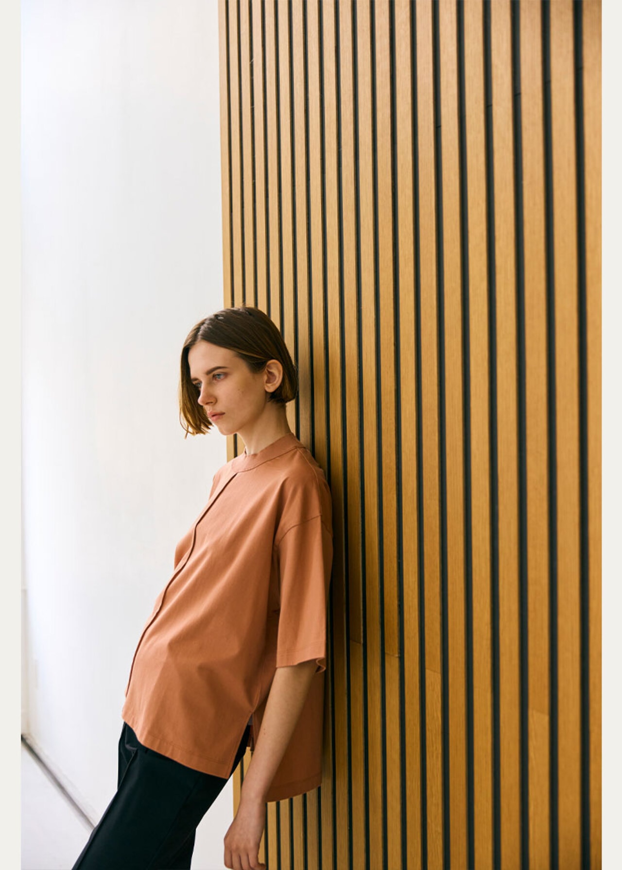 若干度詰めに編み、後染め加工で今までにない柔らかな風合いを出したカットソー。洗濯を繰り返してもふんわりとした肌触りが持続するのも特徴です。そっとやさしさに包み込まれて、触るだけで安心感が得られるような着心地を実現。