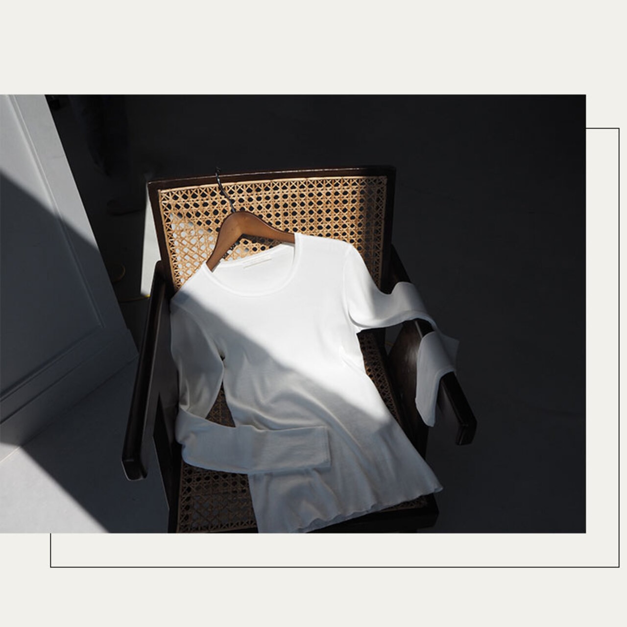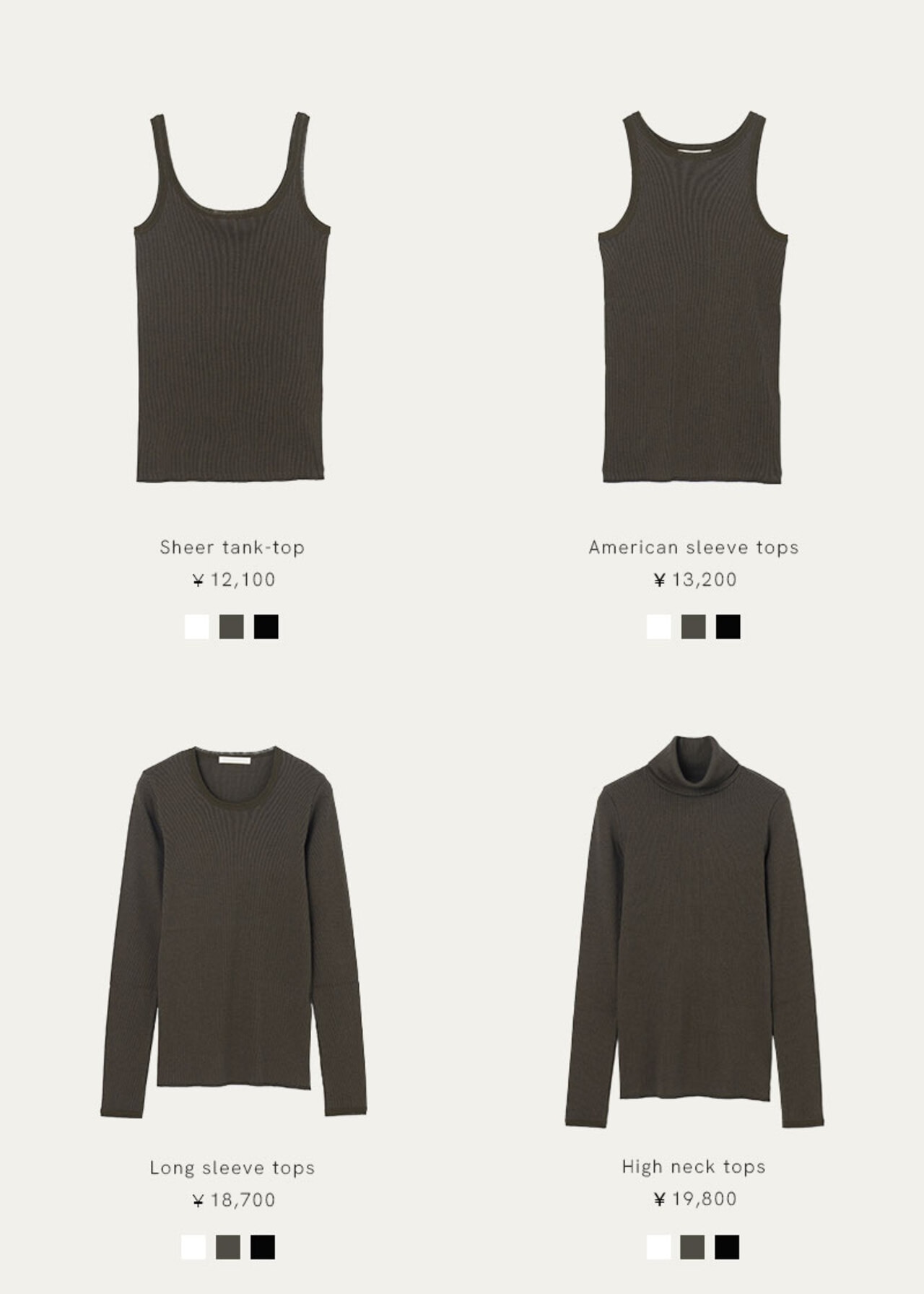 何といっても一番は、シルクを使っているのに洗えること。度目の調整と染色セットの工夫で、ふんわりとしたテンションの良いリブを探求。健康的なスーピマ綿の風合いと、シルクのしなやかさを合わせ持つ極上のカジュアルインナー素材。
