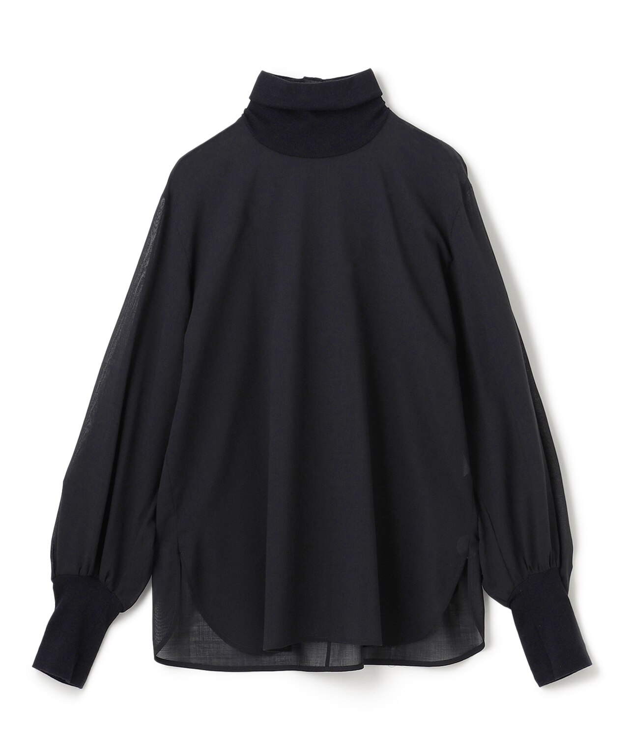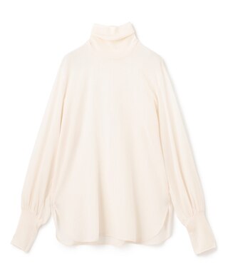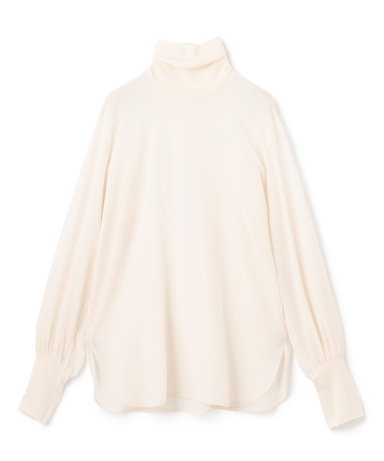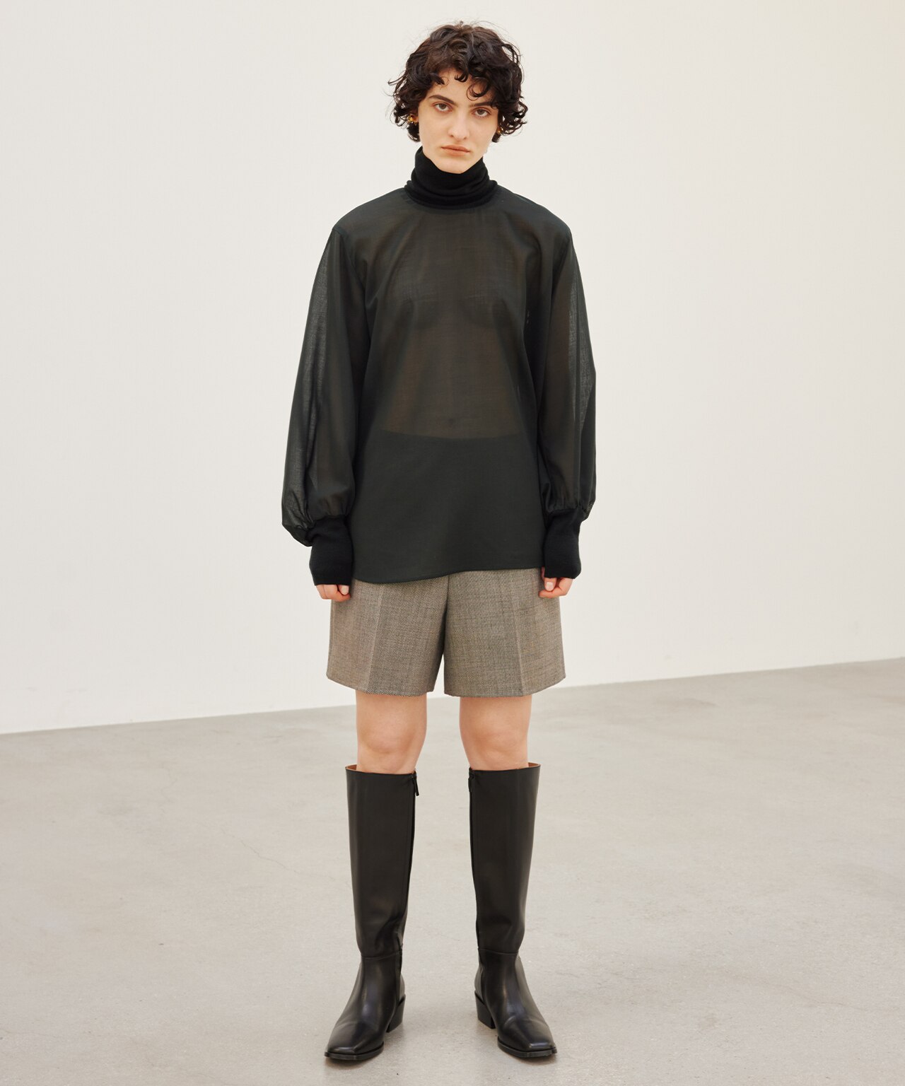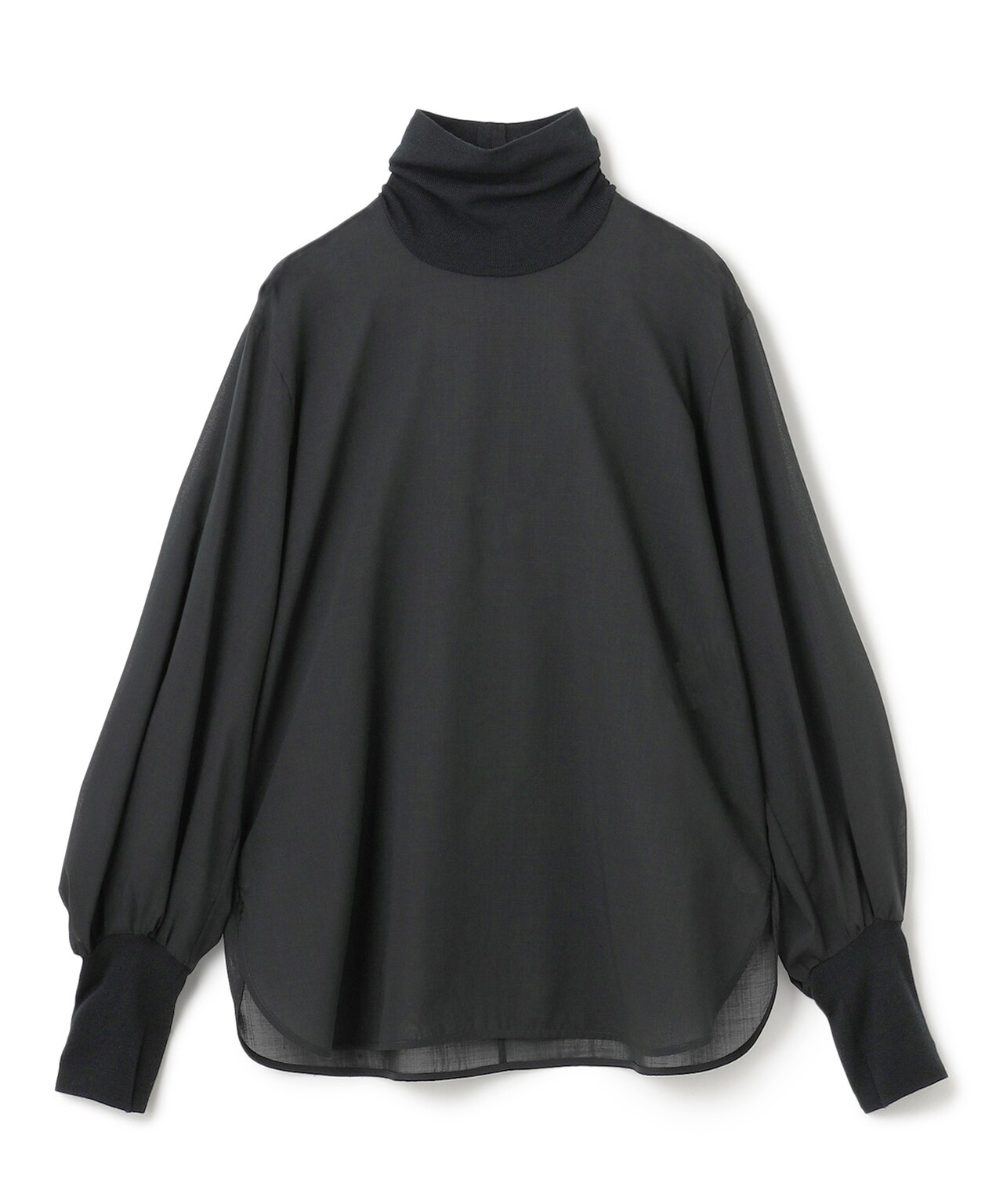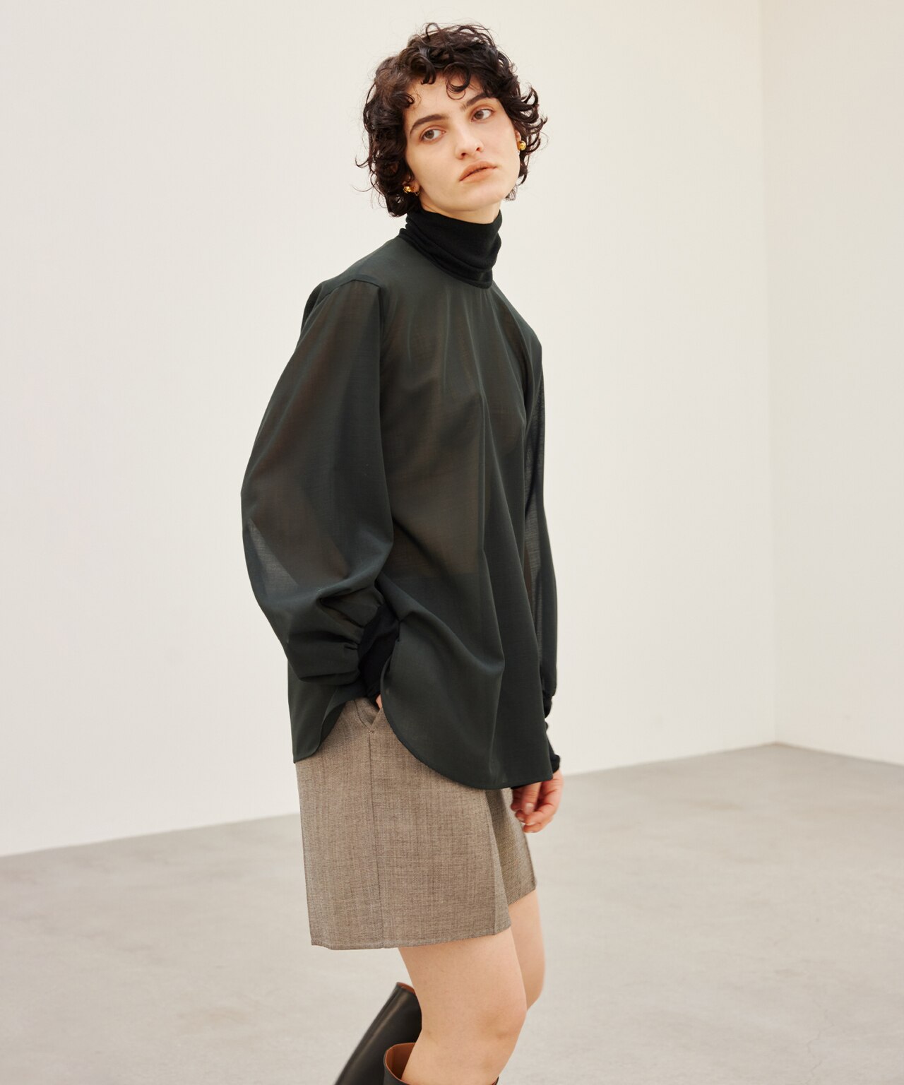 ハリのある素材にゆったりとしたサイズが余裕感じるオーバーブラウス。袖口にはたっぷりとギャザーとタックを入れることでエレガントさがあり、同素材のスカート合わせはもちろん、リブ使いがカジュアルな雰囲気を加え、幅広いスタイリングに合わせやすいシルエット。