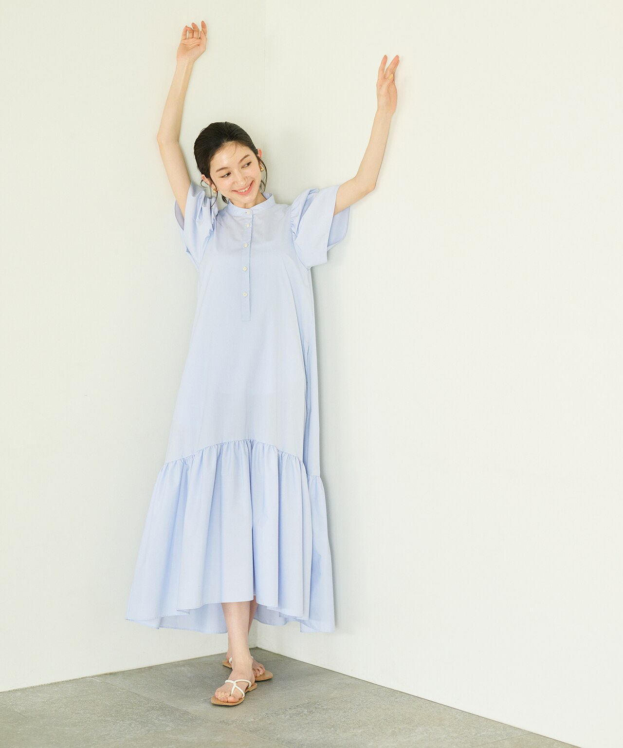 ・裾に施した太幅な大胆フリルがドラマティックな一枚。