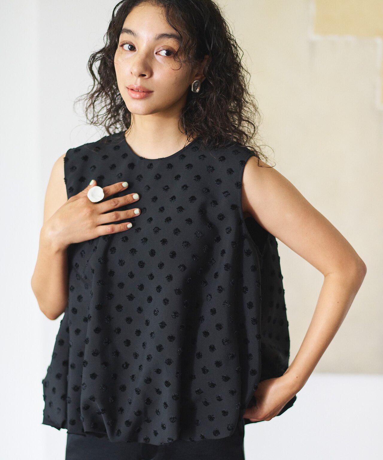 ・同色ドットの上品な素材がブラウスに特別感を与えます。