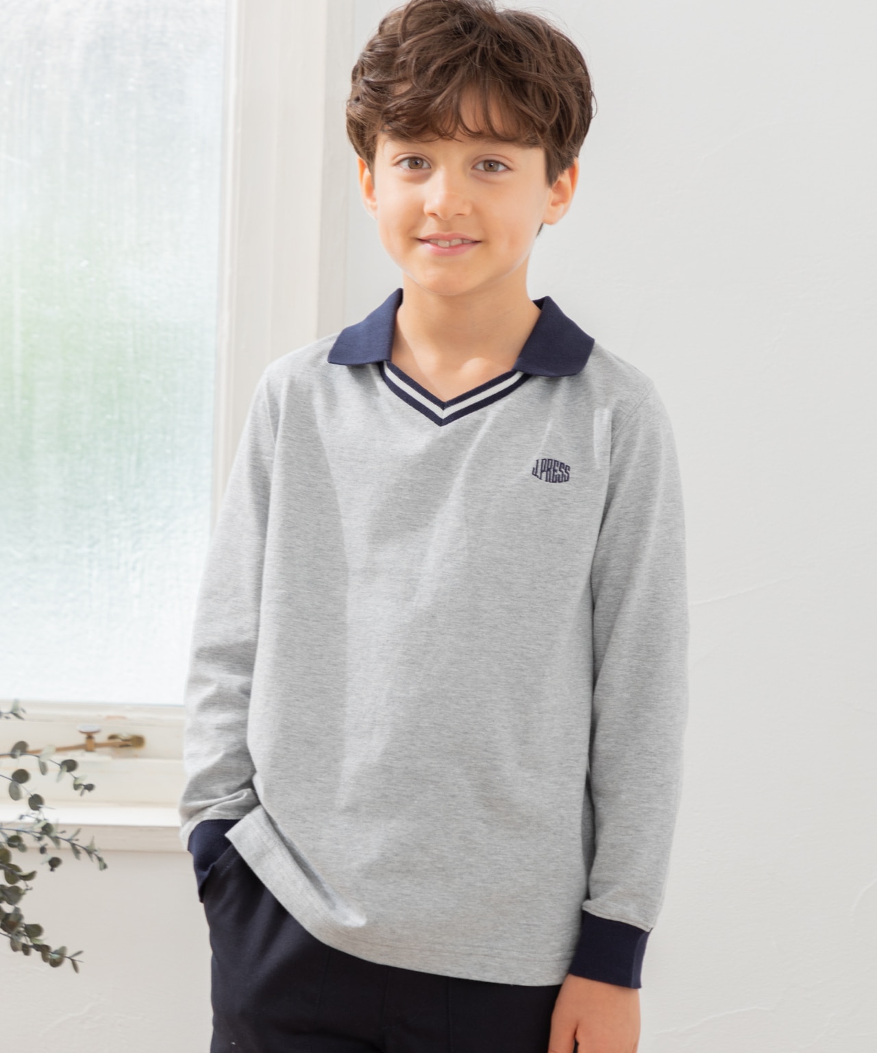 【110-130cm】40/2天竺襟付き Vネック ポロシャツ