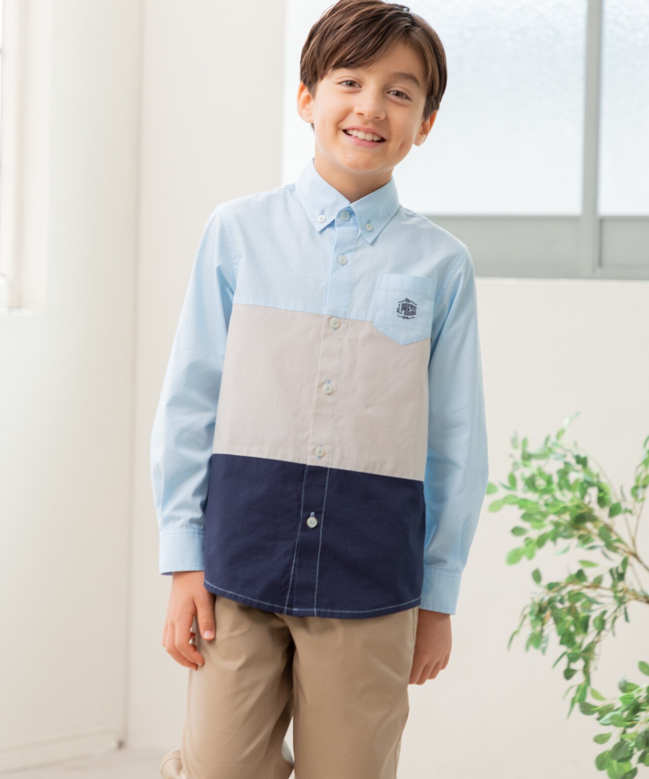 大胆なカラー配色が目を引く、こなれ感を演出するブロッキングシャツ