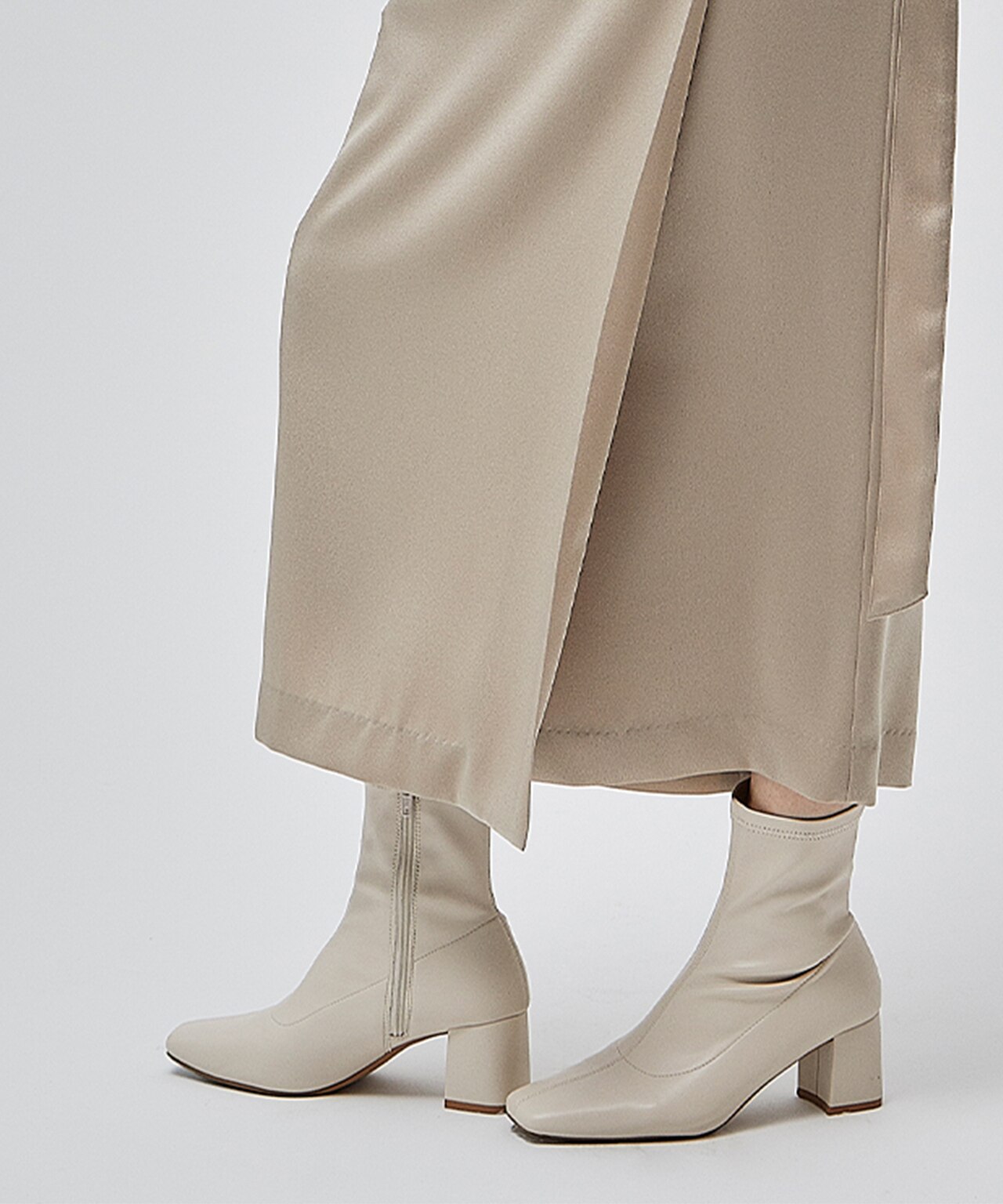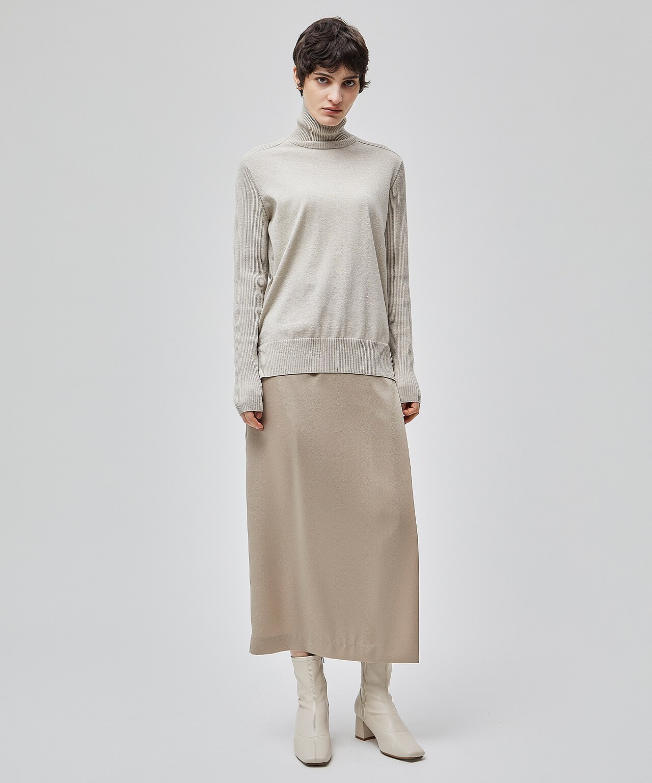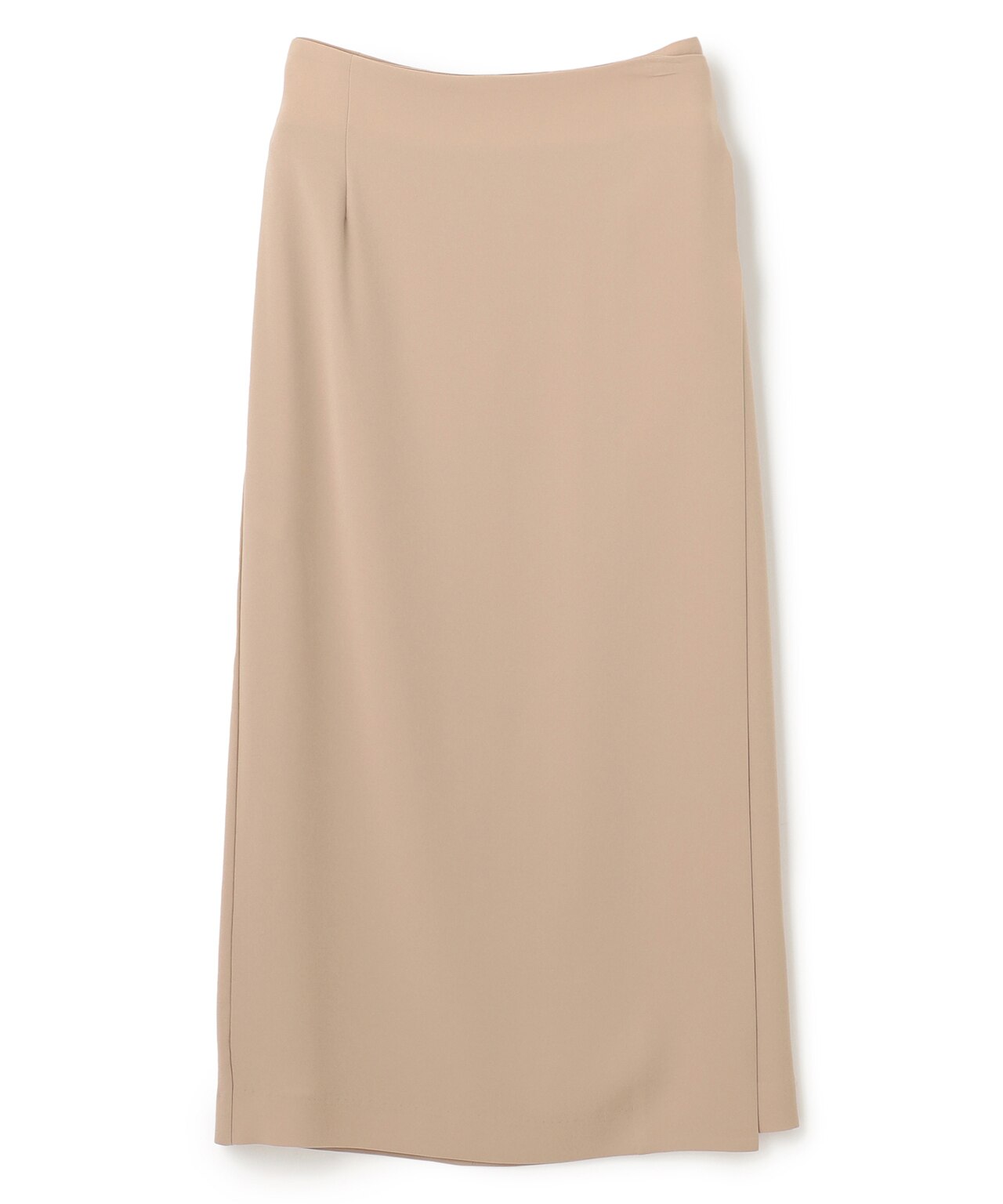 着るだけで、ニュアンスのある表情を与えるラップスカート。同素材のブラウスを合わせてワンピース風な着こなしや、シンプルなトップスと合わせてロングタイがバックスタイルのワンポイントに。