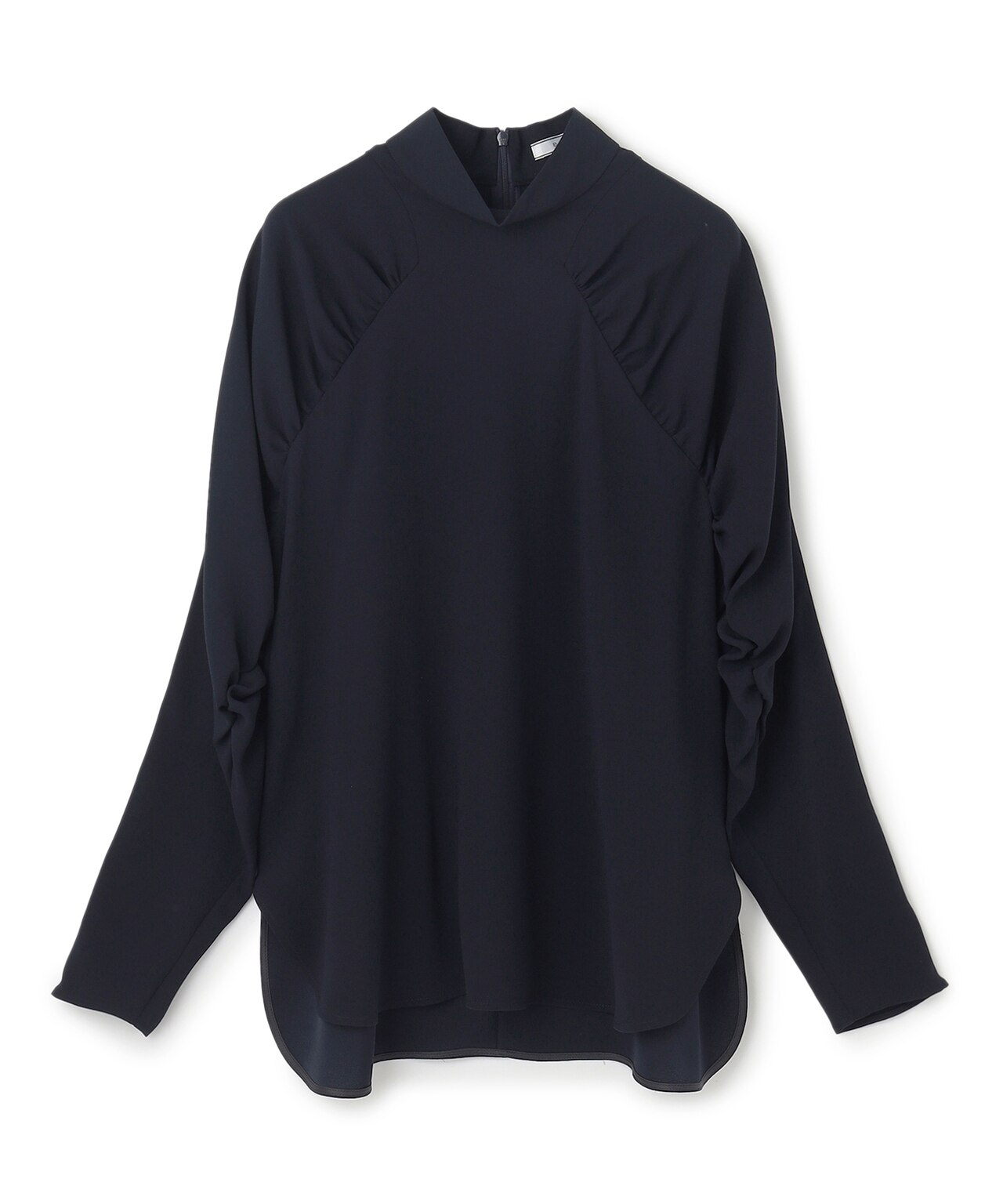 ギャザーで作る丸いフォルムとモックネックのメリハリのあるシルエット。身頃は程よいゆとりと柔らかな素材で着心地は楽に、キレイめに着こなせるブラウスです。