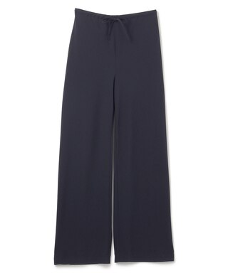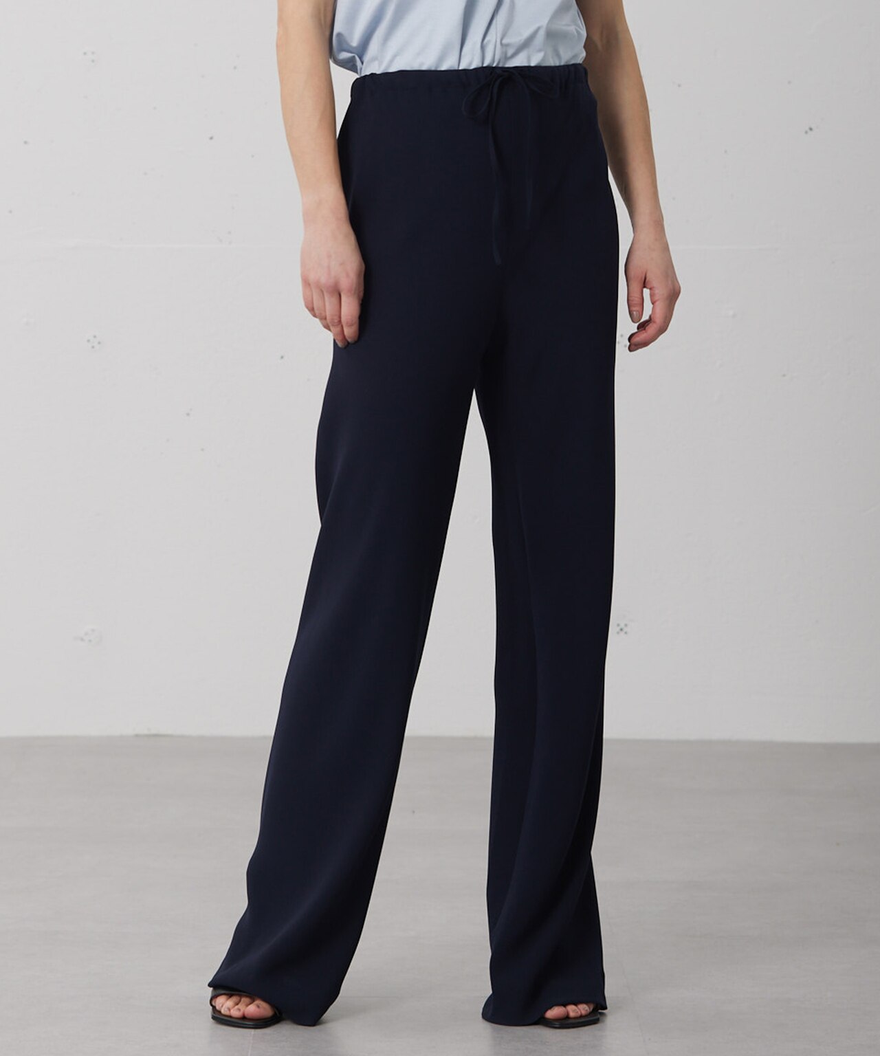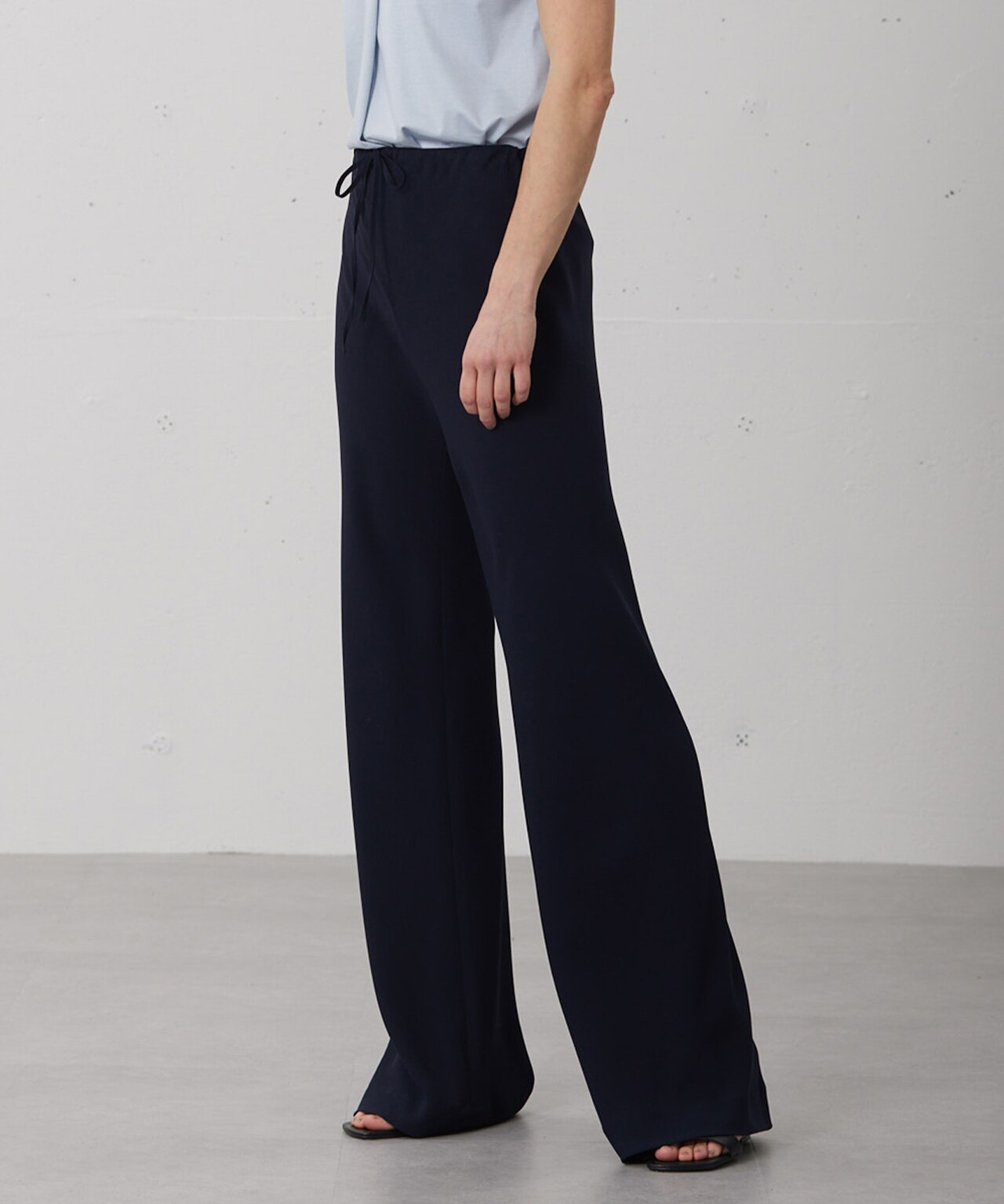 ウエストゴムとストリングでイージーに着こなせるワイドパンツ。独特な落ち感が、すっきりと美しいシルエット。