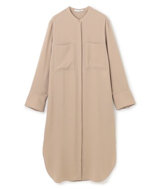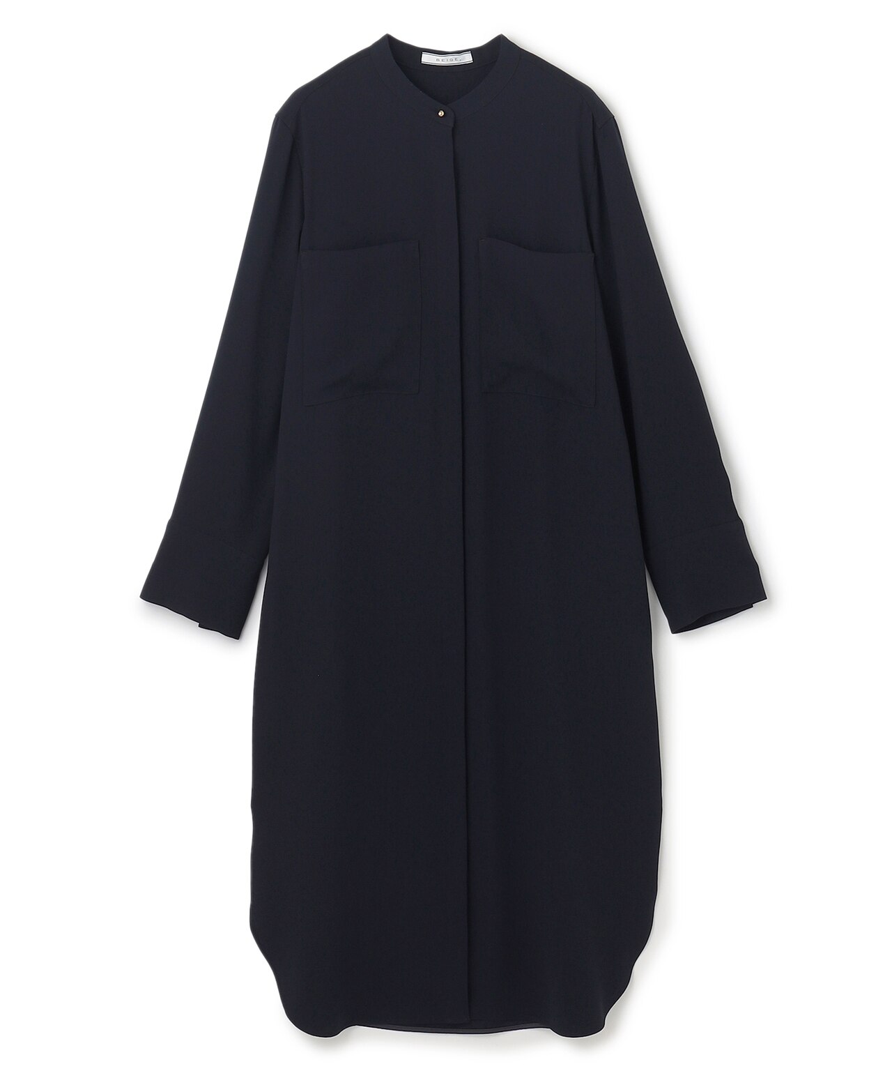 大きなポケットが目を惹くシャツドレス。襟元と袖元のゴールドボタンがキラリと光り、華やかで上品な雰囲気に。一枚はもちろんハイネックのインナーを重ねたり、アレンジもしやすいデザイン。