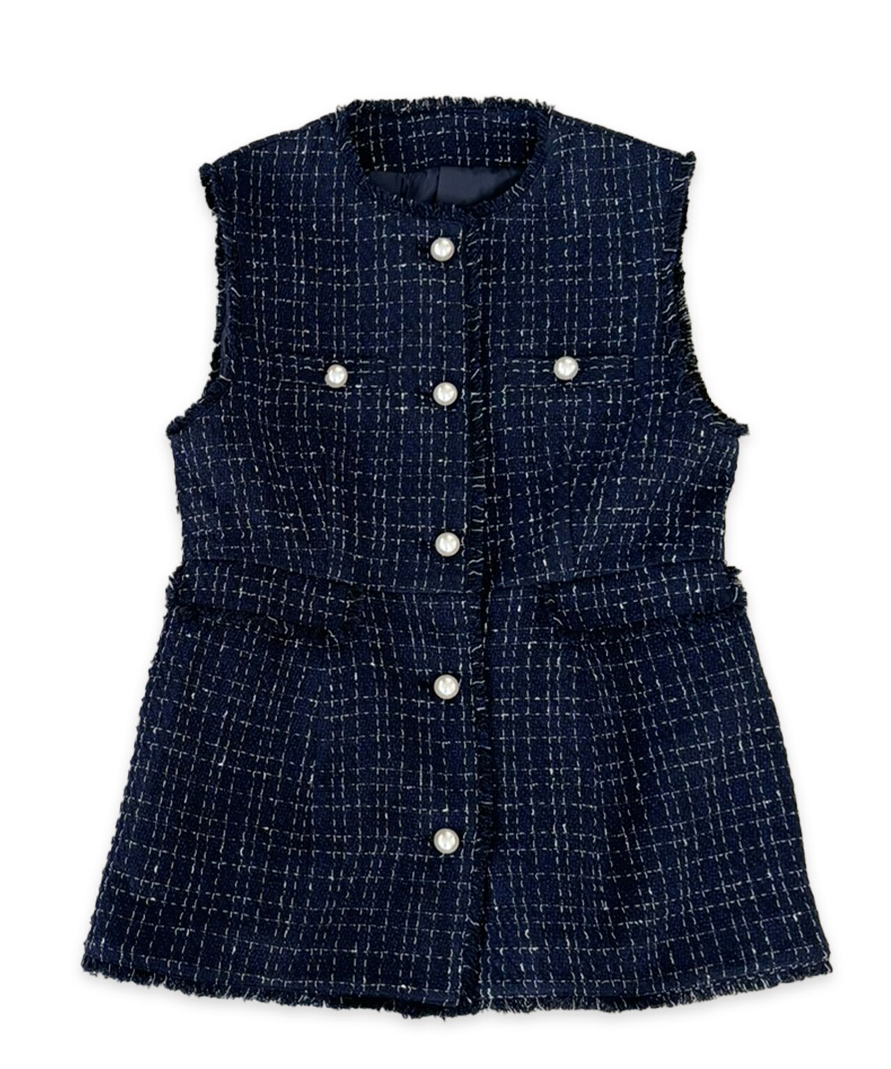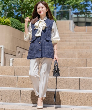 Ferouxで大好評だったジレのパンツスタイル。ボトムスを選ばない絶妙な丈感で美シルエットに。