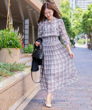 秋に纏いたくなるチェック柄ワンピース。軽やかな質感でドラマティックな動きを演出。